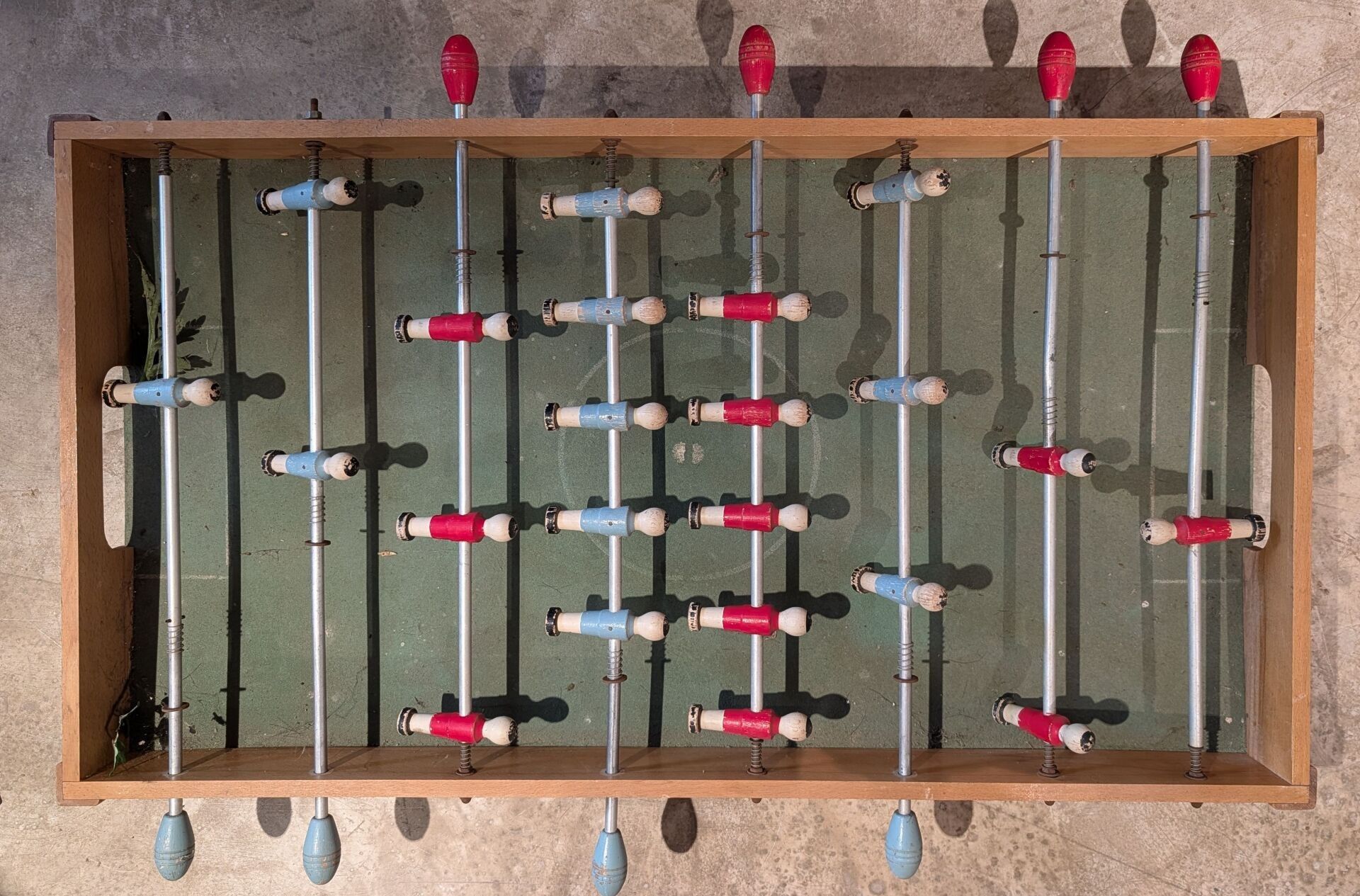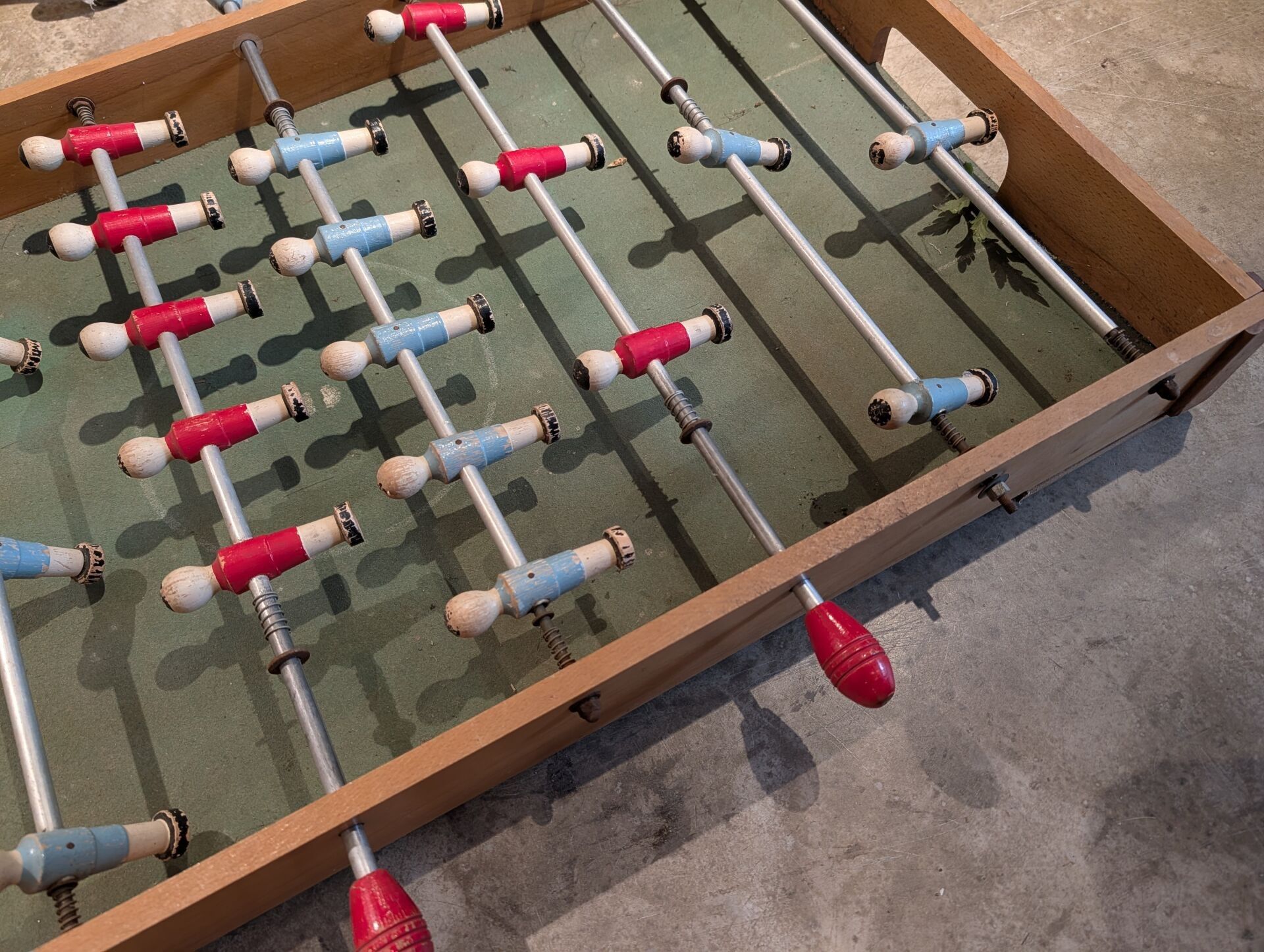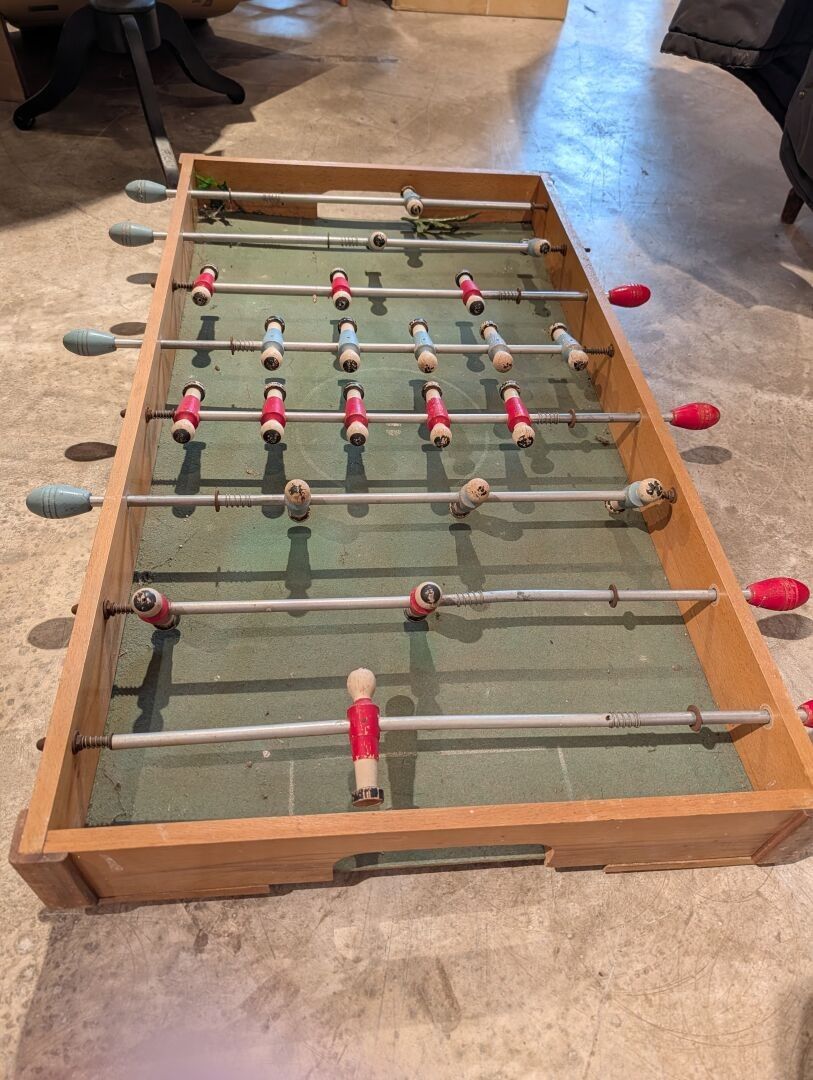 Wooden football table W.: 101 cm; D. (without handles): 55 cm (Feet missing)