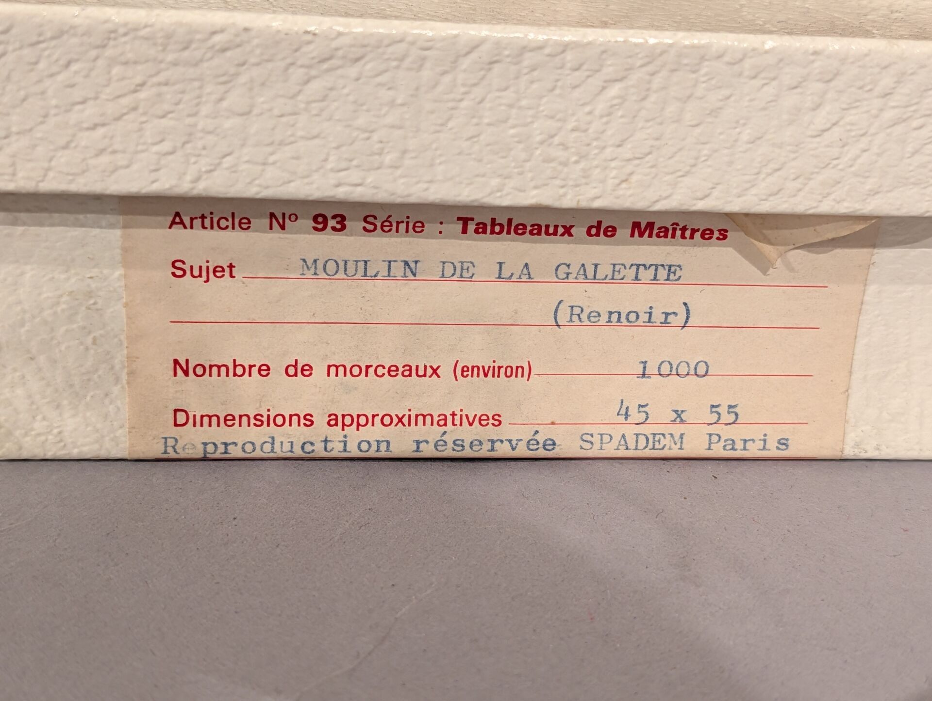 - JEUX ARTISTIQUES, "Moulin de la galette, renoir, 1000 pieces