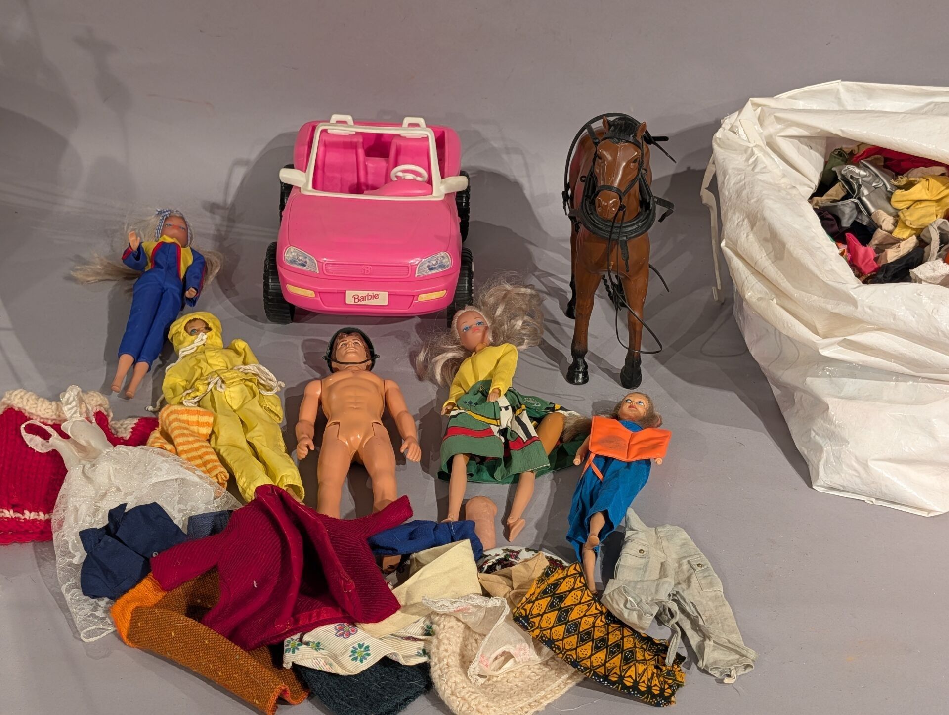 Set of four dolls and a ken