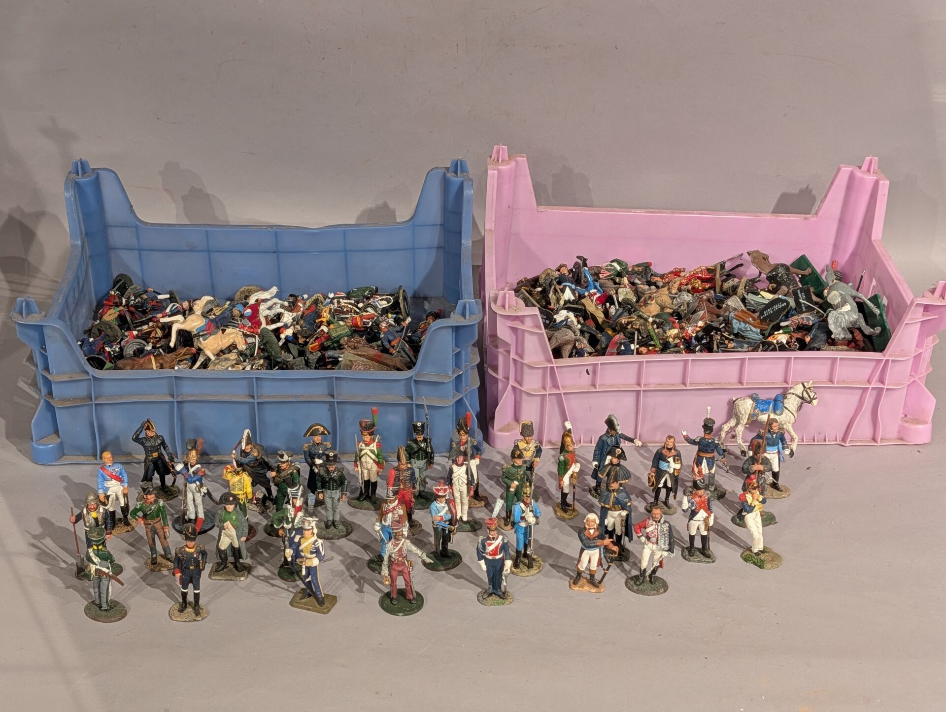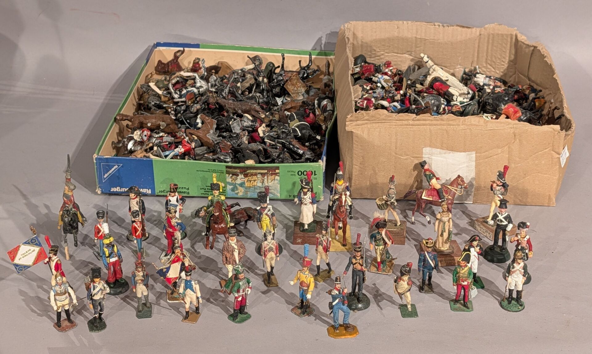 Important set of polychrome lead soldiers on foot or on horseback, Napoleonic campaign