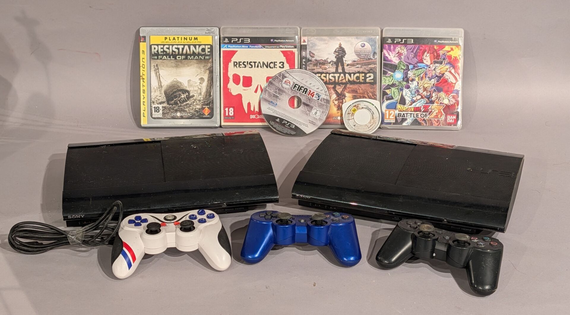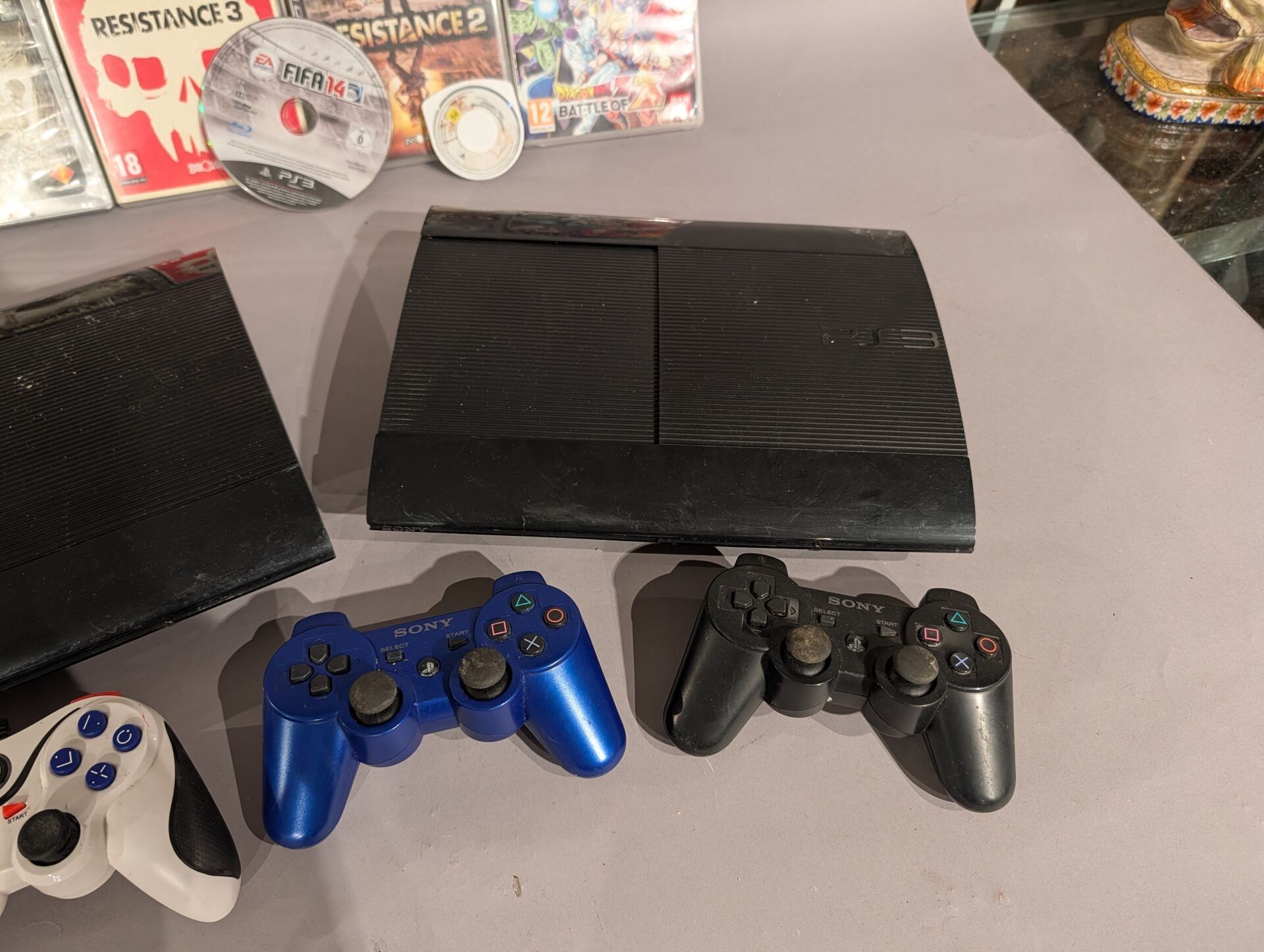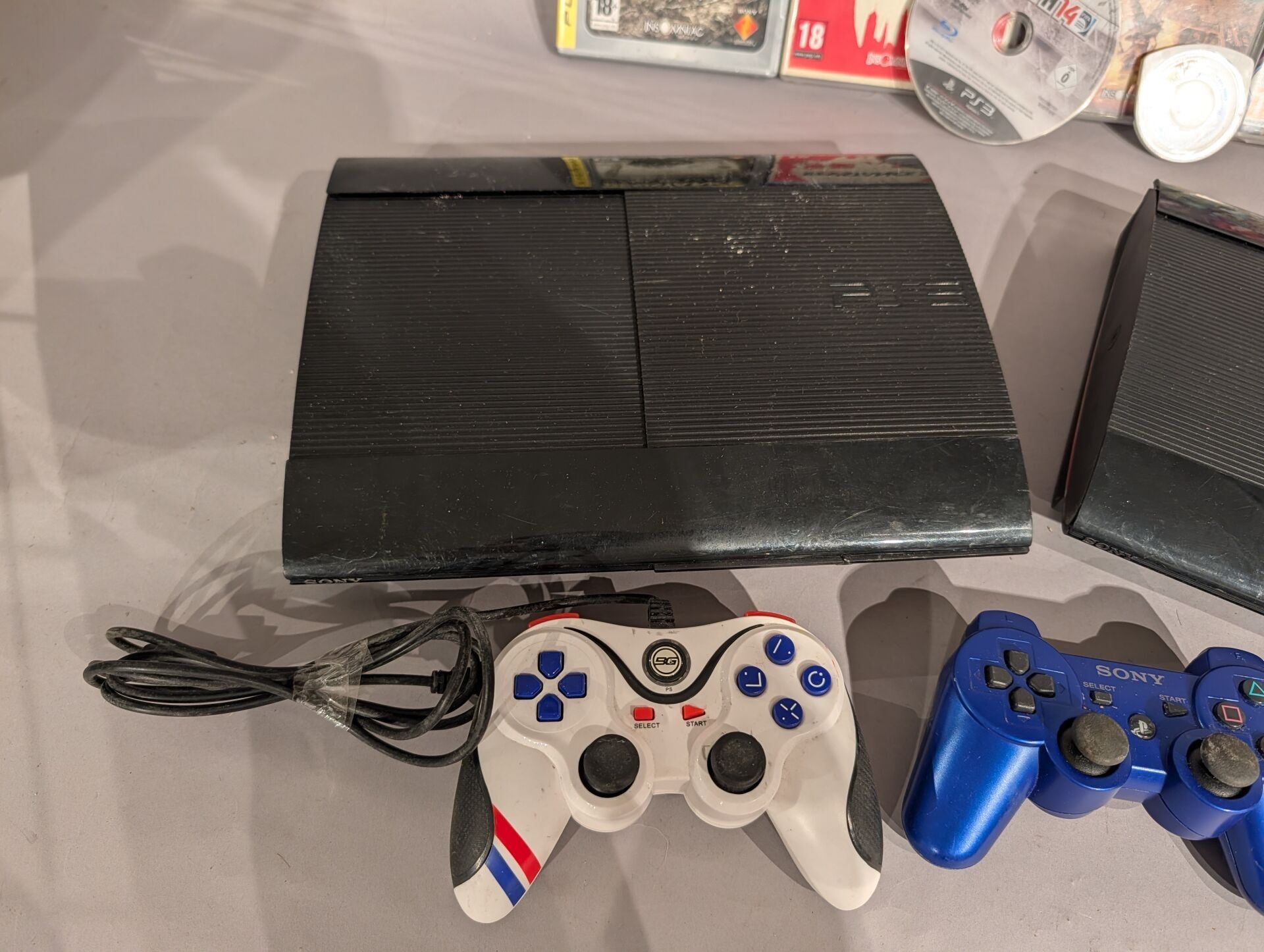 Set of two SONY home consoles - Playstation 3 Ultra Slim - Without power cord with three controllers