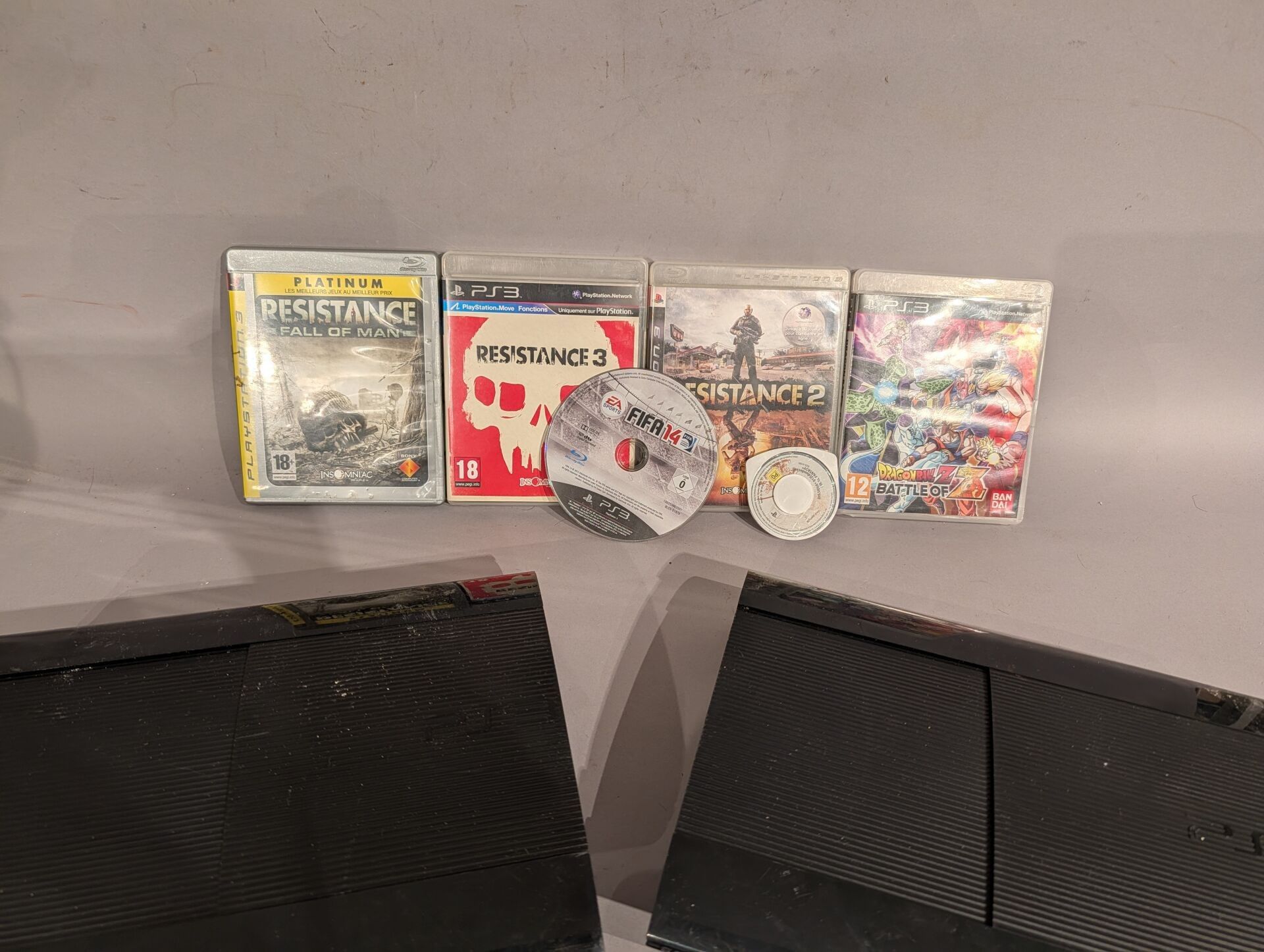 Includes five games: Fifa 14, dragon ball Z Battle of Z, resistance 2, resistance 3, resistance all for menj