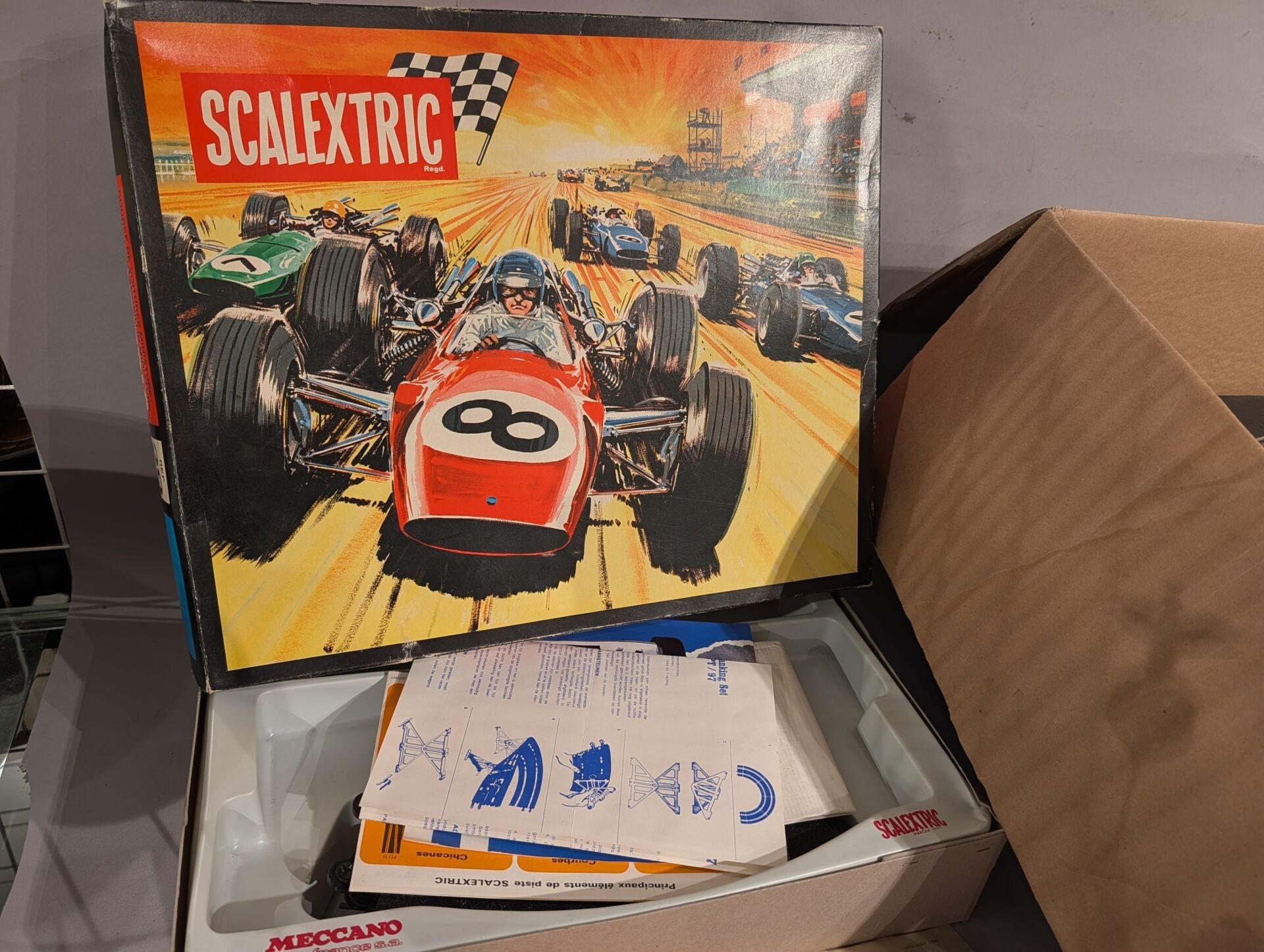 SCALEXTRIC Car circuit comprising a ref 29 box, two boxes of…