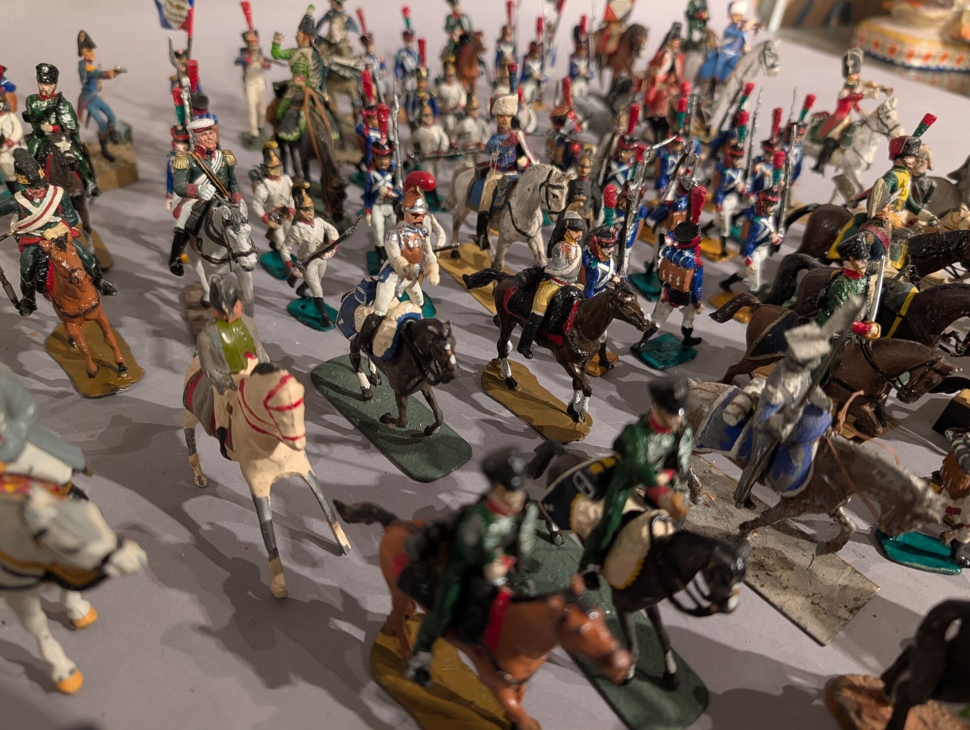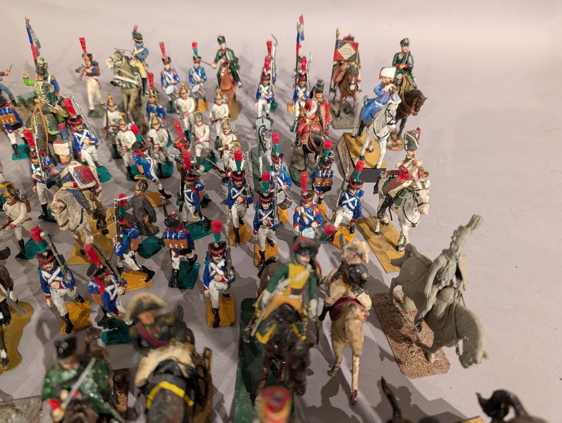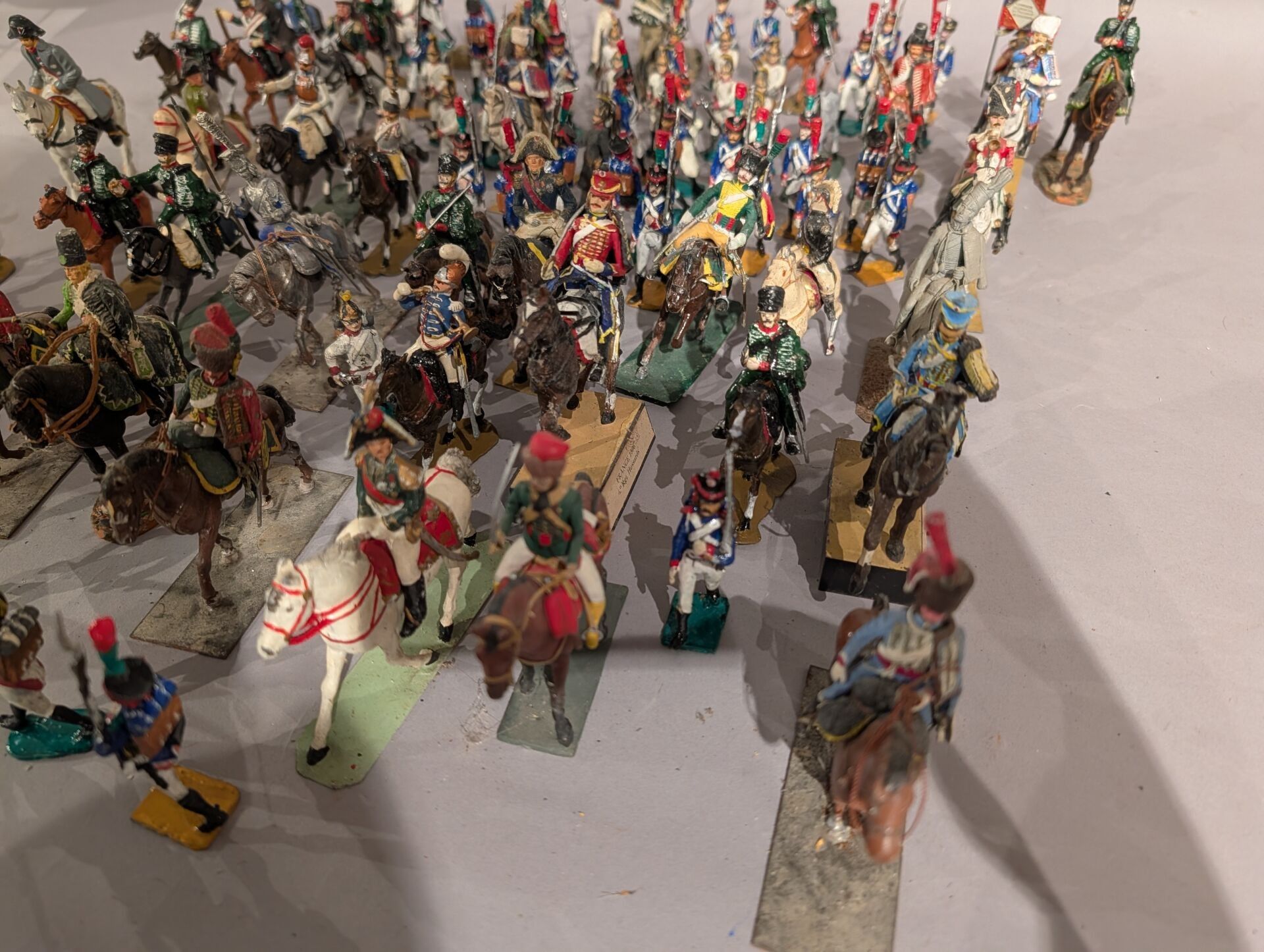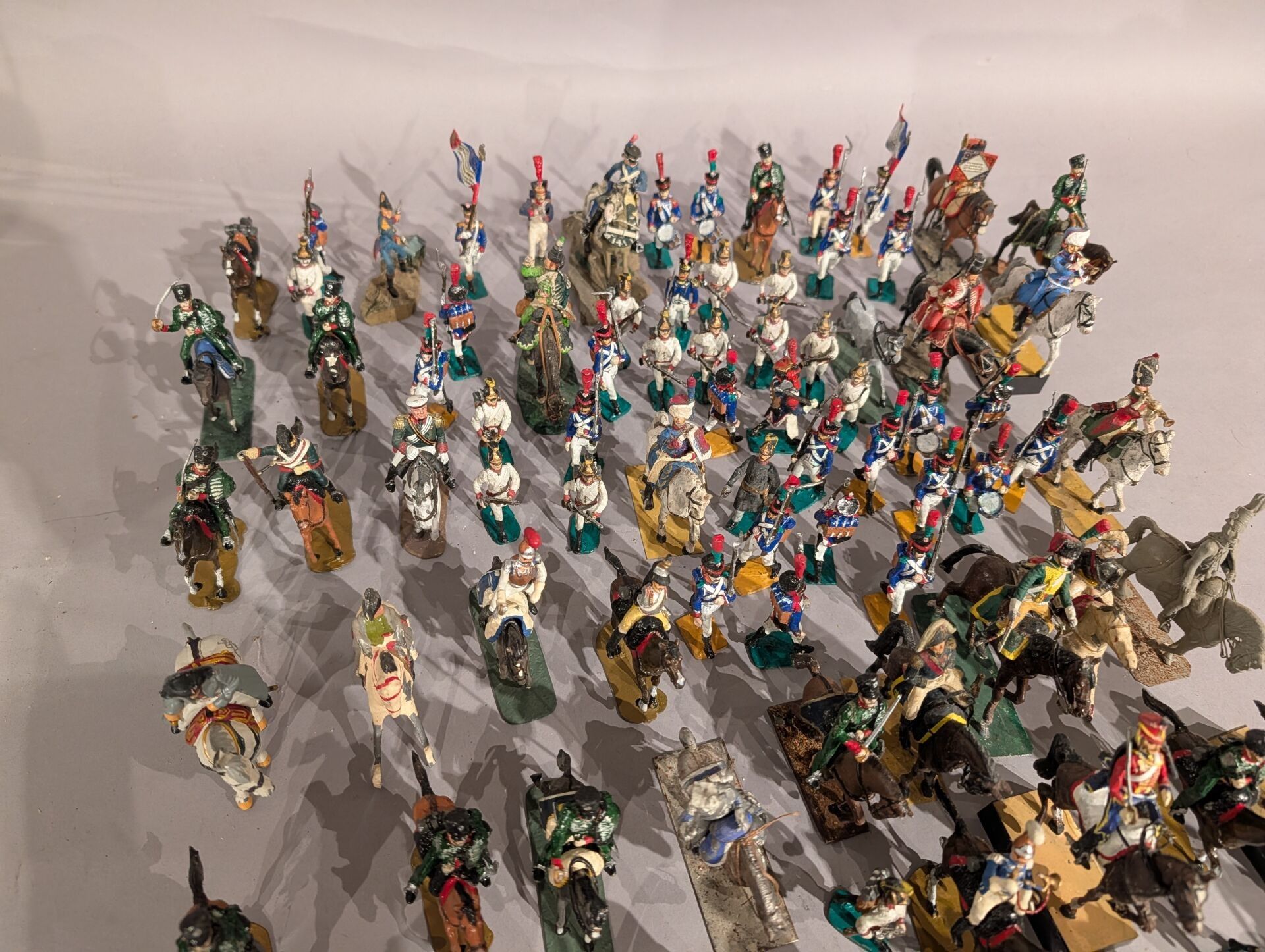 Set of eighty polychrome lead soldiers on horseback and on foot illustrating the campaigns of Napoleon I including 2 figurines of Napoleon I