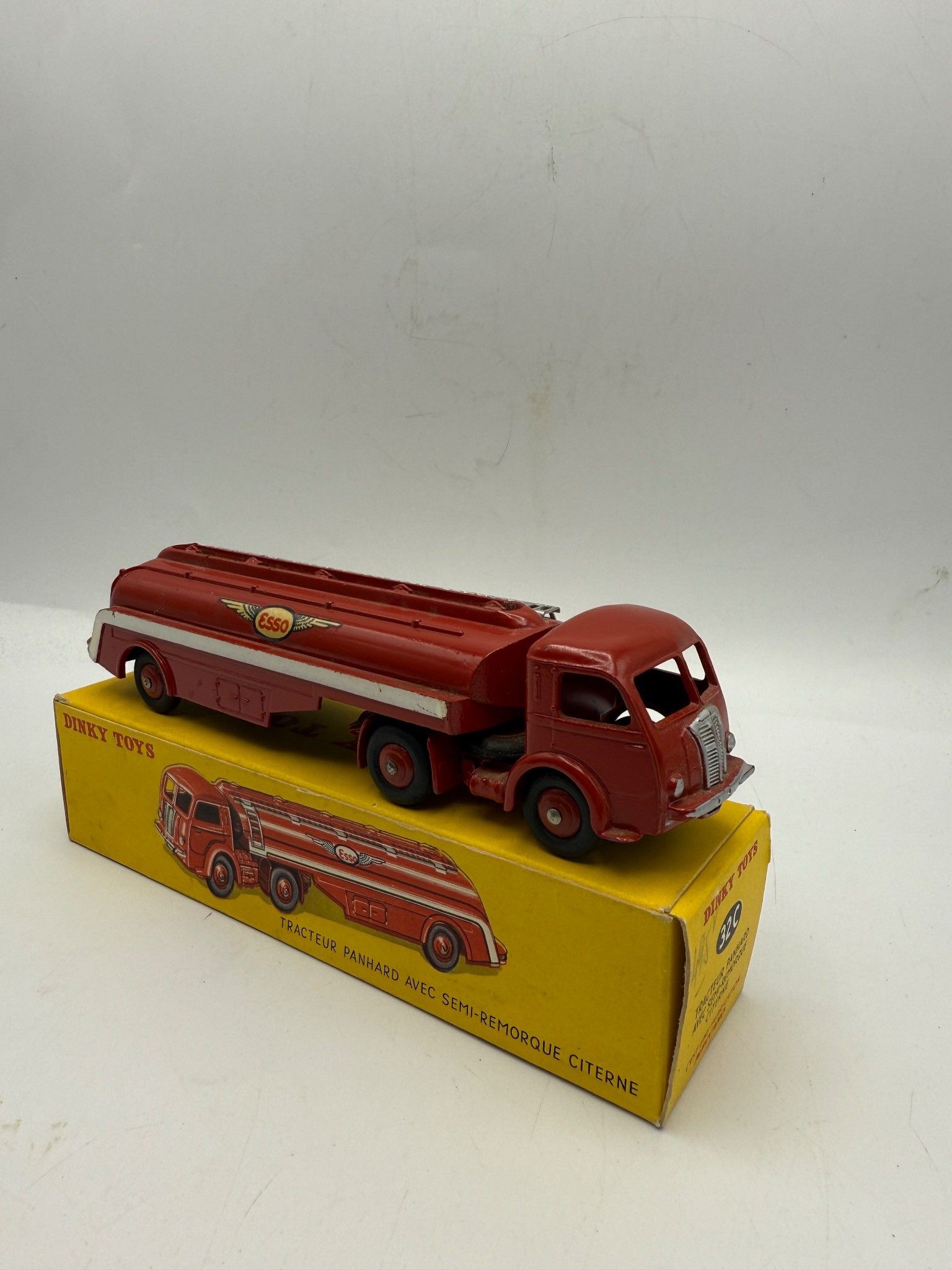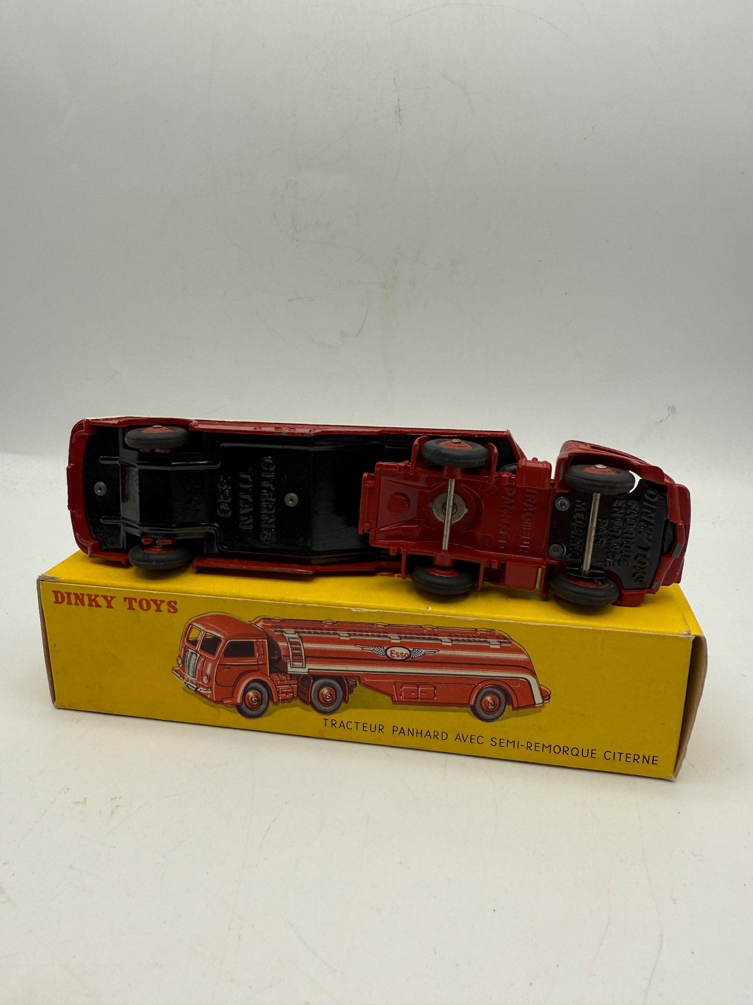 DINKY TOYS France, réf. 32C, Panhard tractor with titan tanker semi-trailer, red, Esso, variant decal blue medium wings.