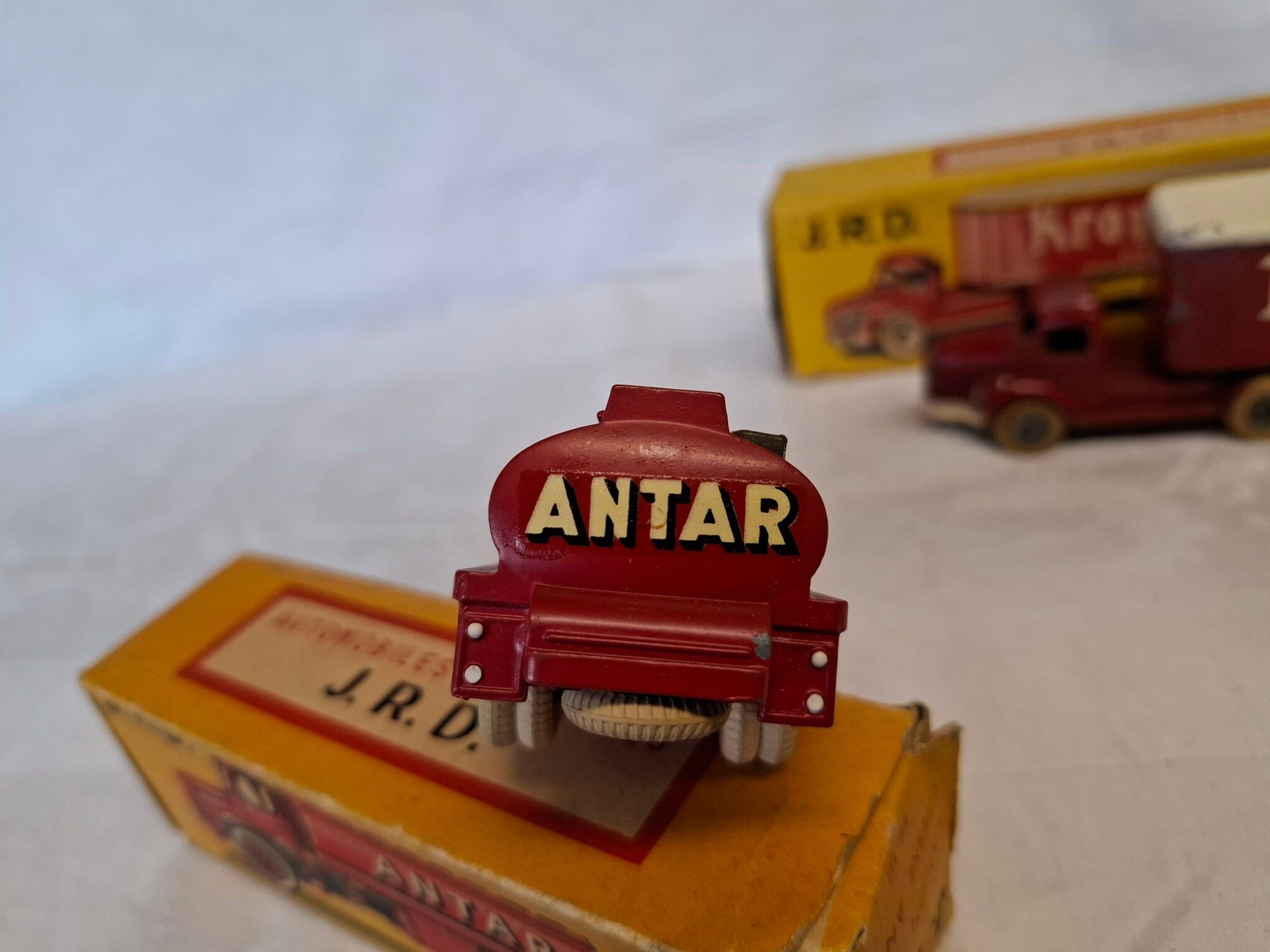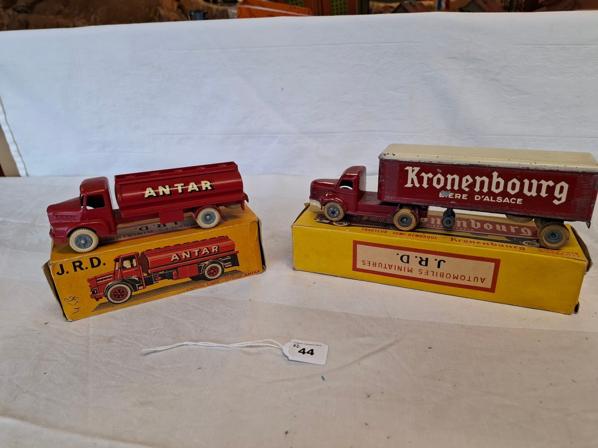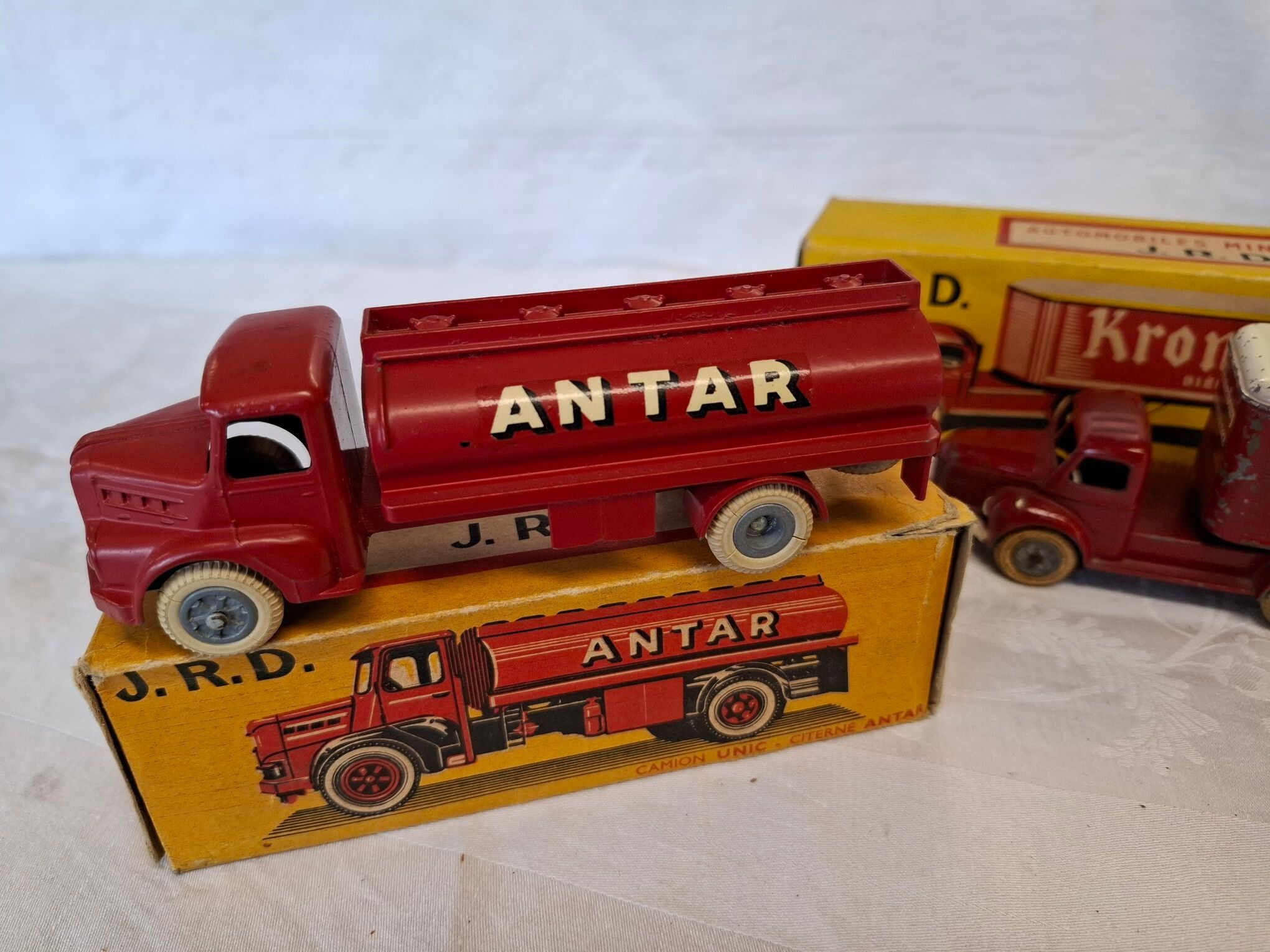 Jrd - 2 vehicles - Unic tanker "Antar" (a chip at the rear) and a Berliet "Kronembourg" (used condition with defects - in box)