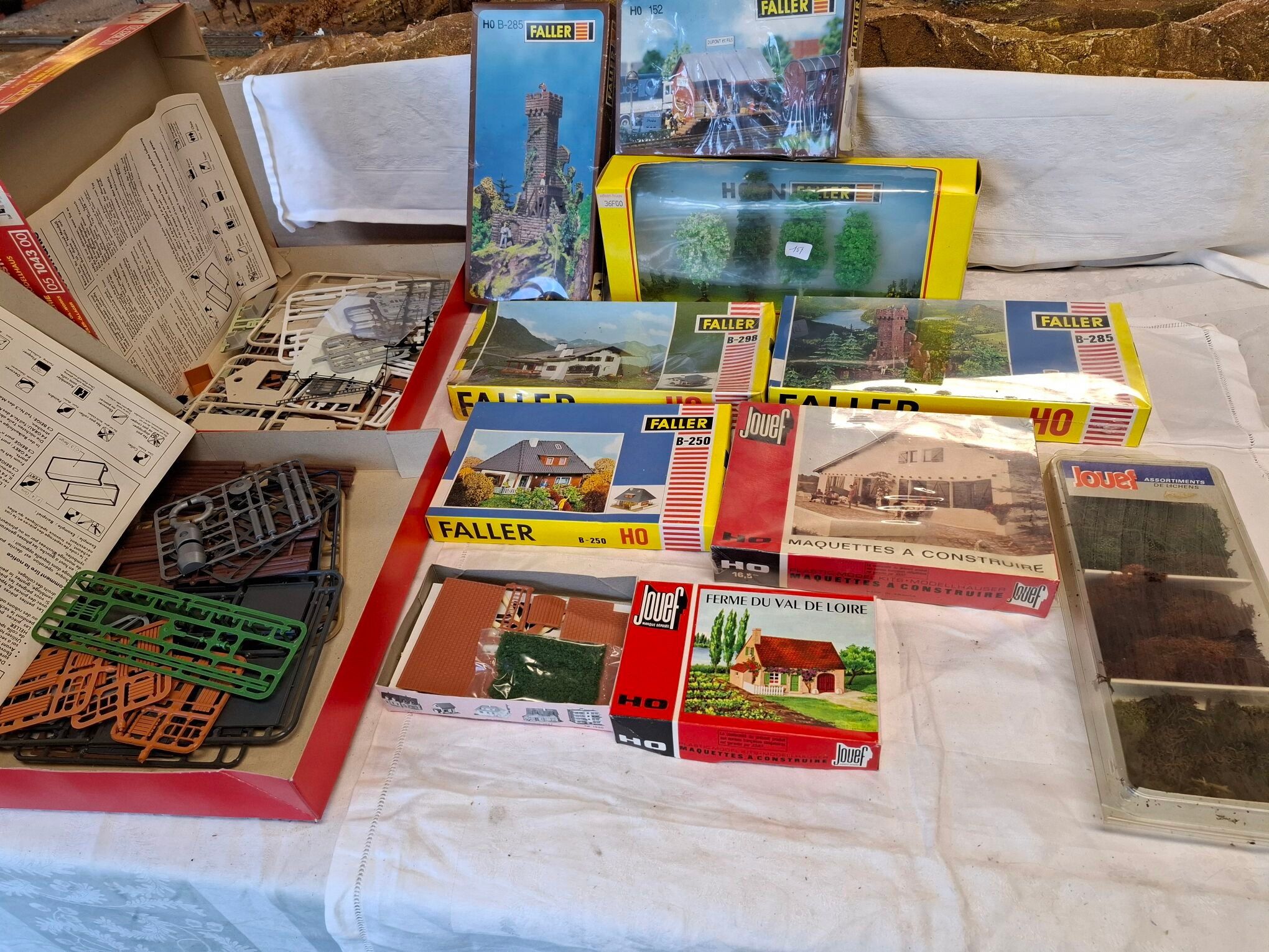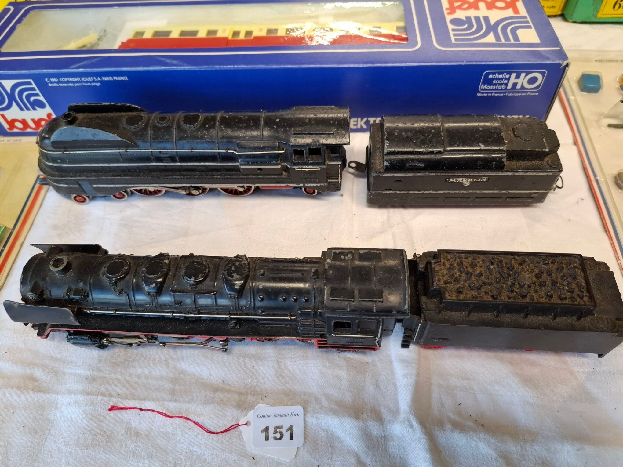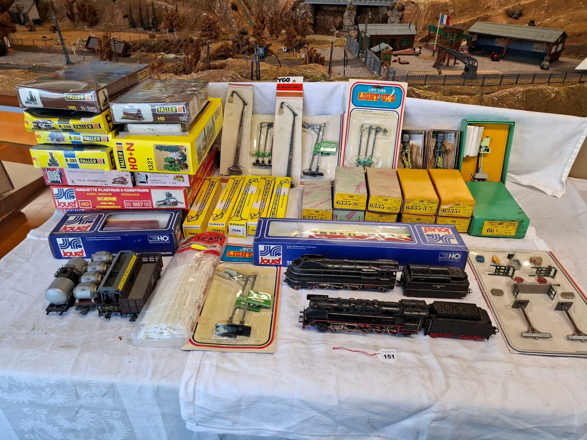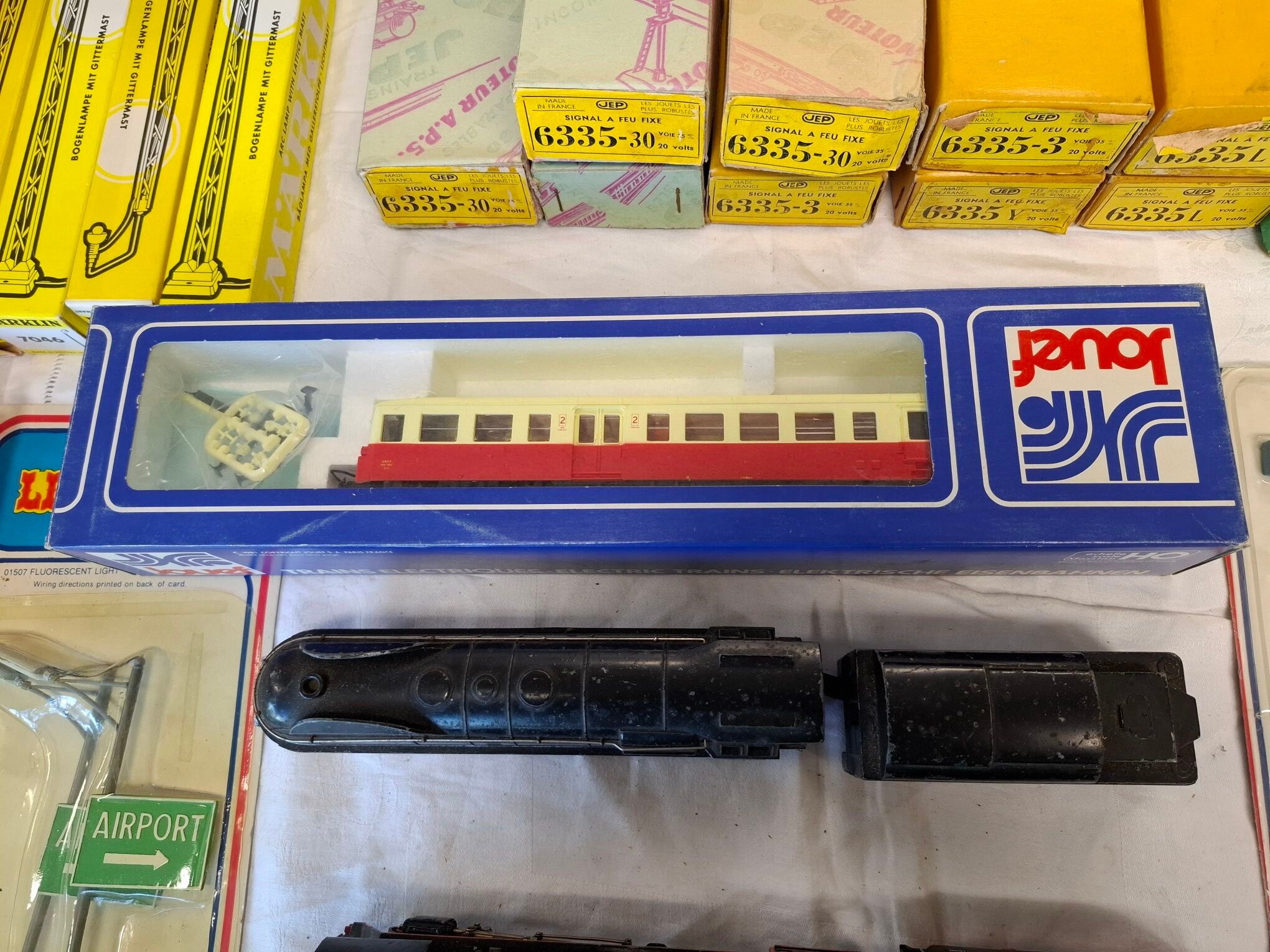 Jouef / Marklin / various HO - Set of HO scale trains - including Jouef "Picasso" railcar - 2 steam locomotives with tender, model to assemble including Jouef, Faller various lights from JEP - various