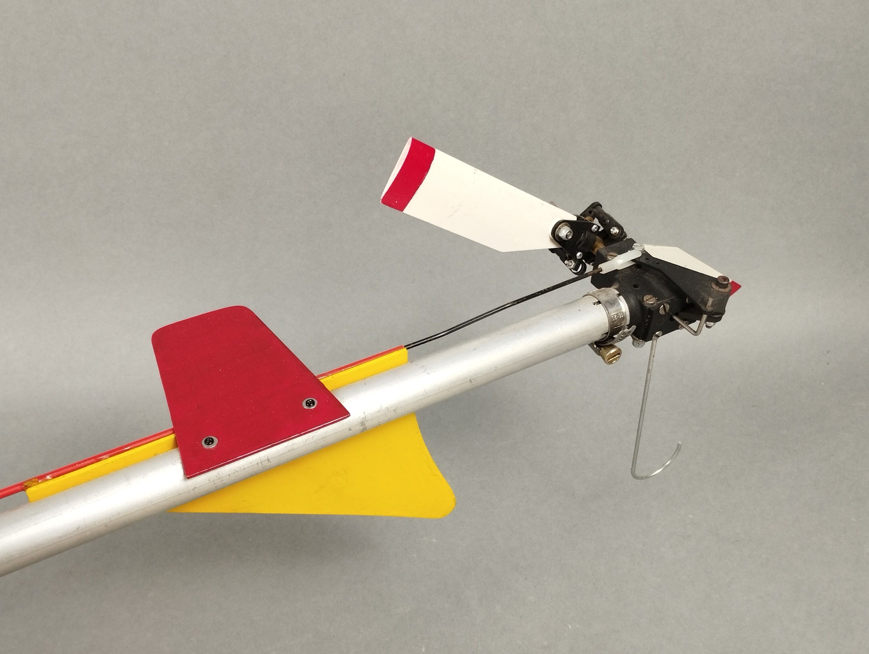 Rare vintage RC helicopter SCHLUTER Mini-boy fully equipped, with its original box (average condition for the box). Brand new OS max AX 46 engine, has only been run on a bench. Helicopter fitted with servo tanks etc, never flown. Wingspan: 100 cm; L = 92 cm.