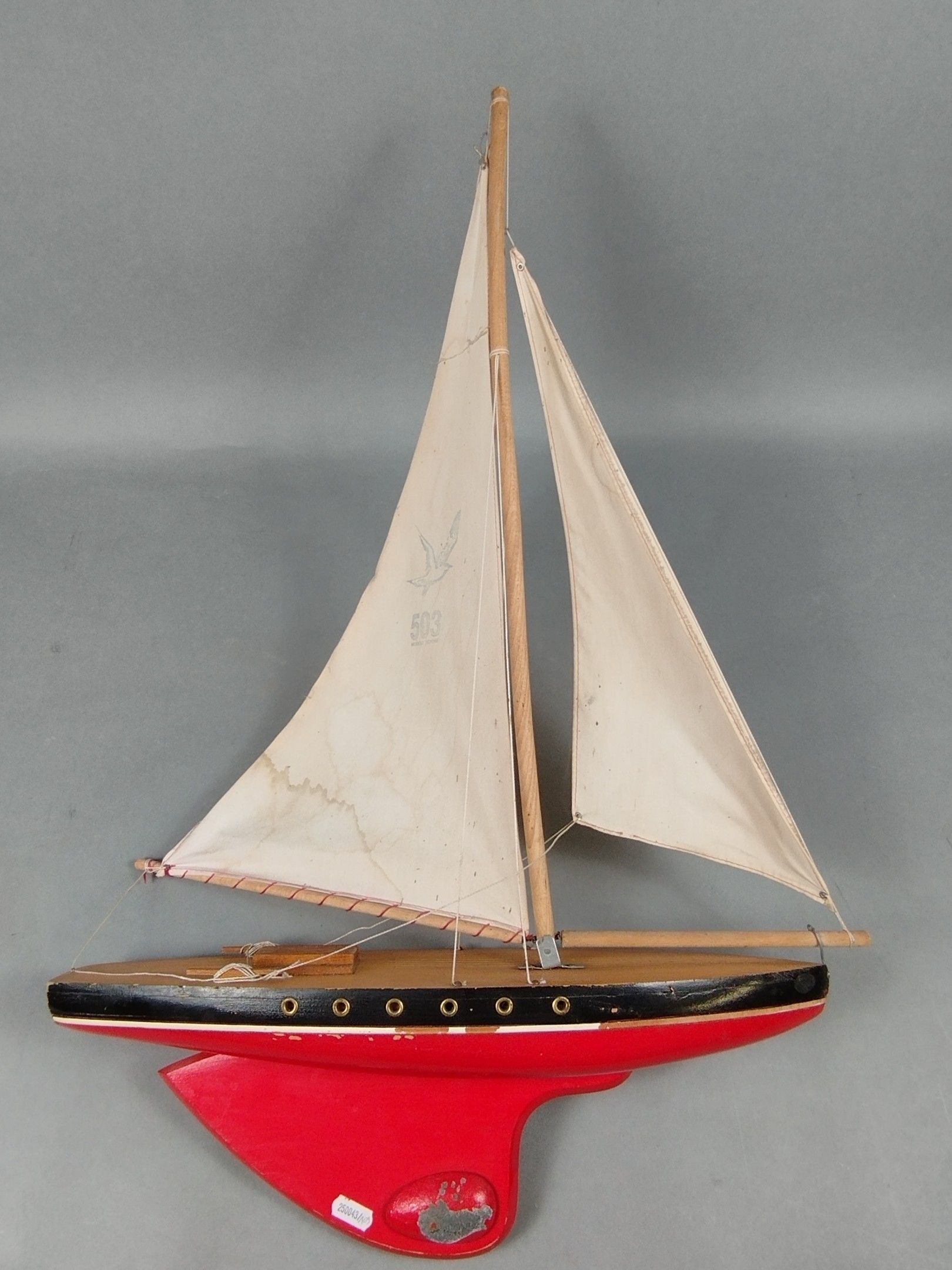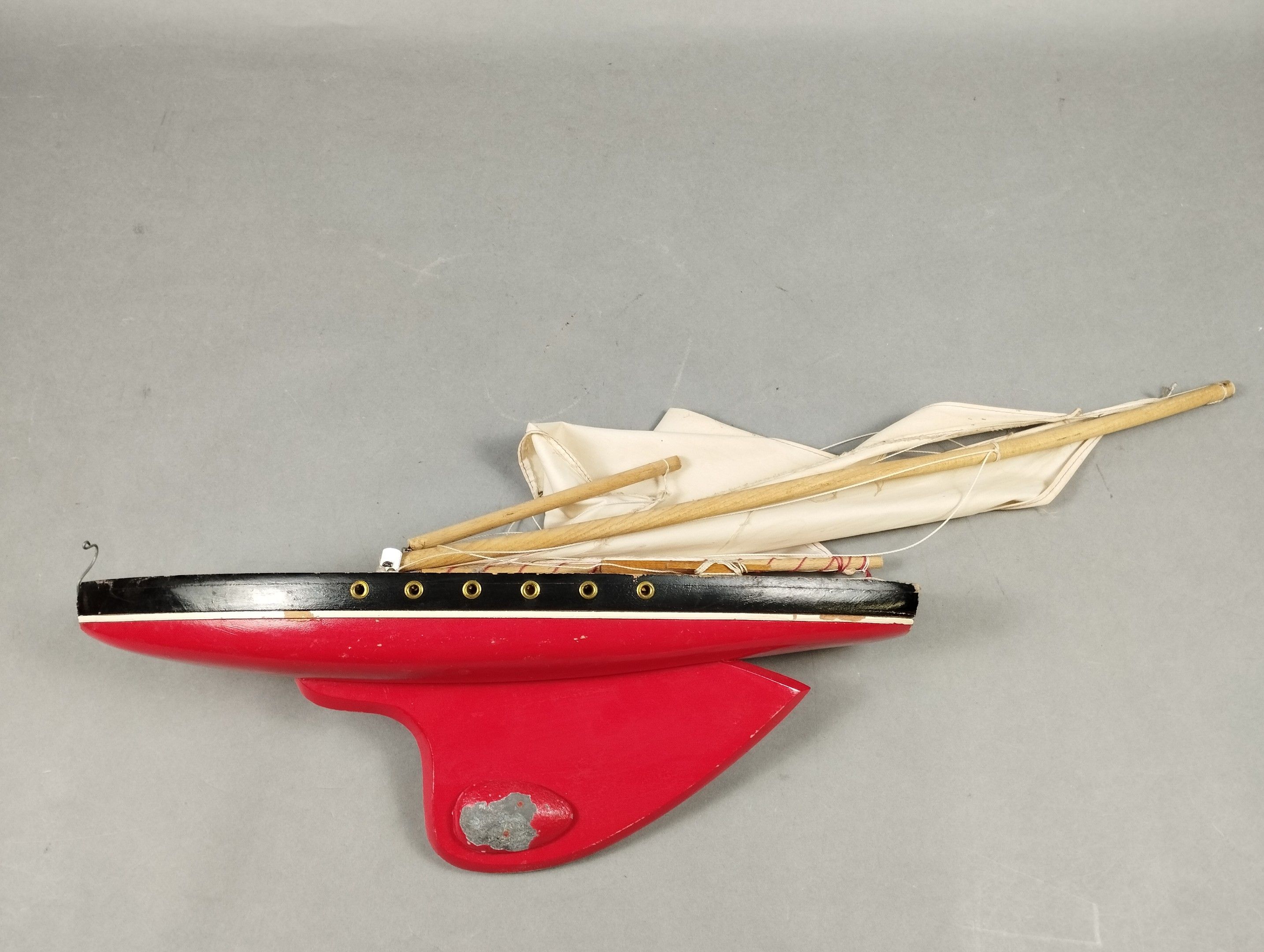TIROT pond sailboat ref. 503. L. = 54 cm. Chipped paint on lead counterweight.