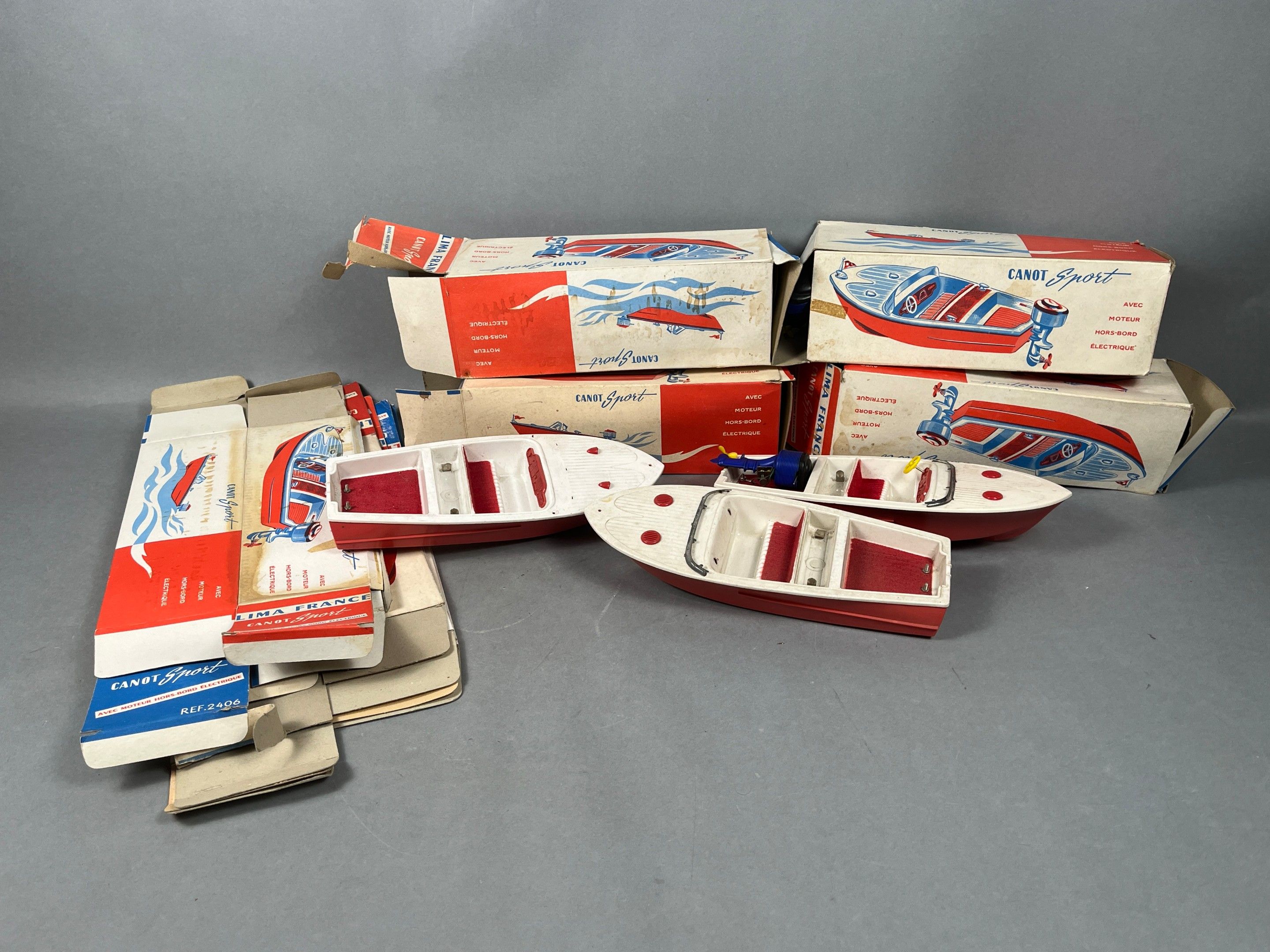 LIMA, France. Reunion of 6 "sport canoes with electric outboard motor", ref. 2406. 2 canoes without their motor. With 10 boxes. Worn and missing.