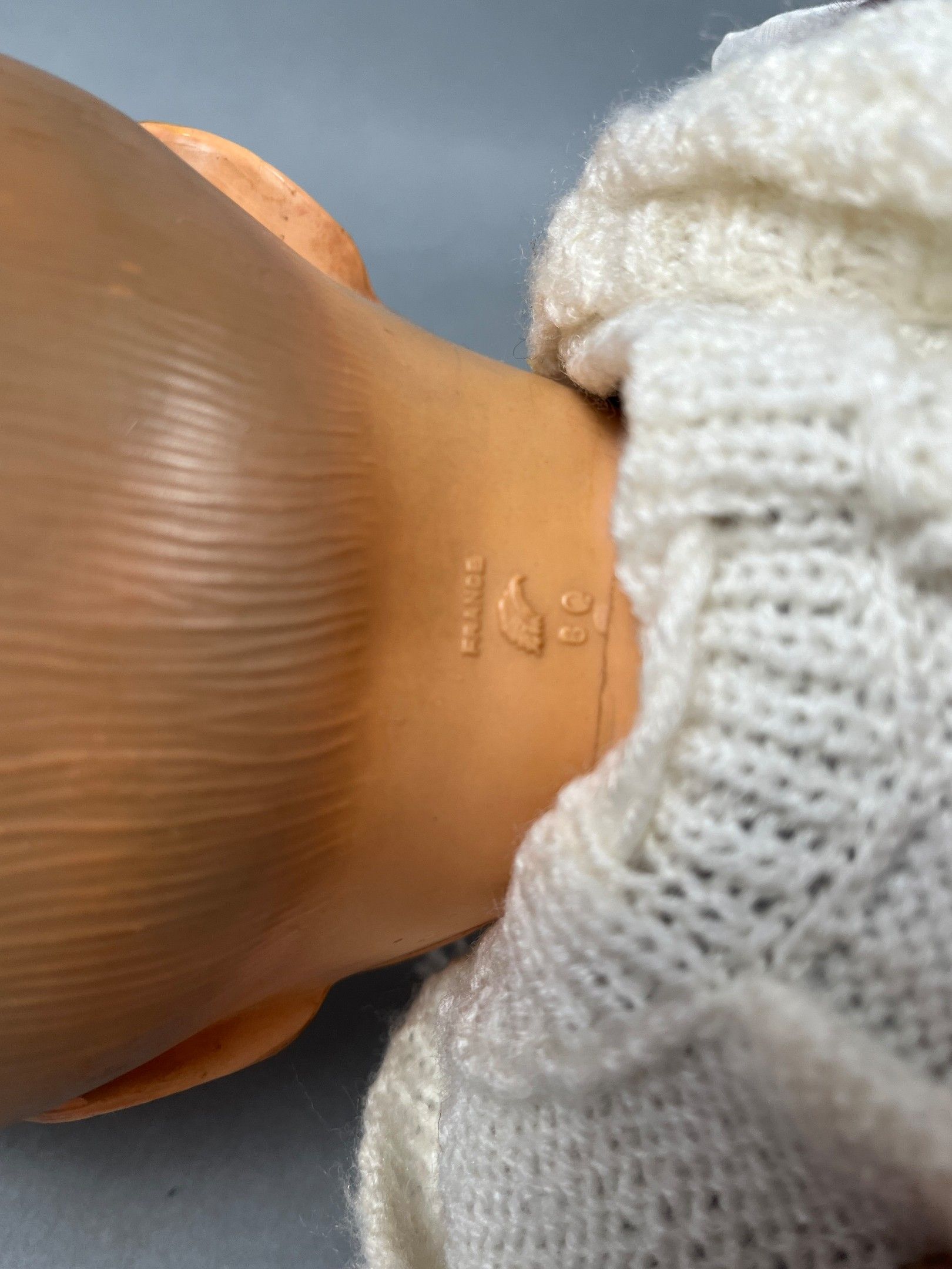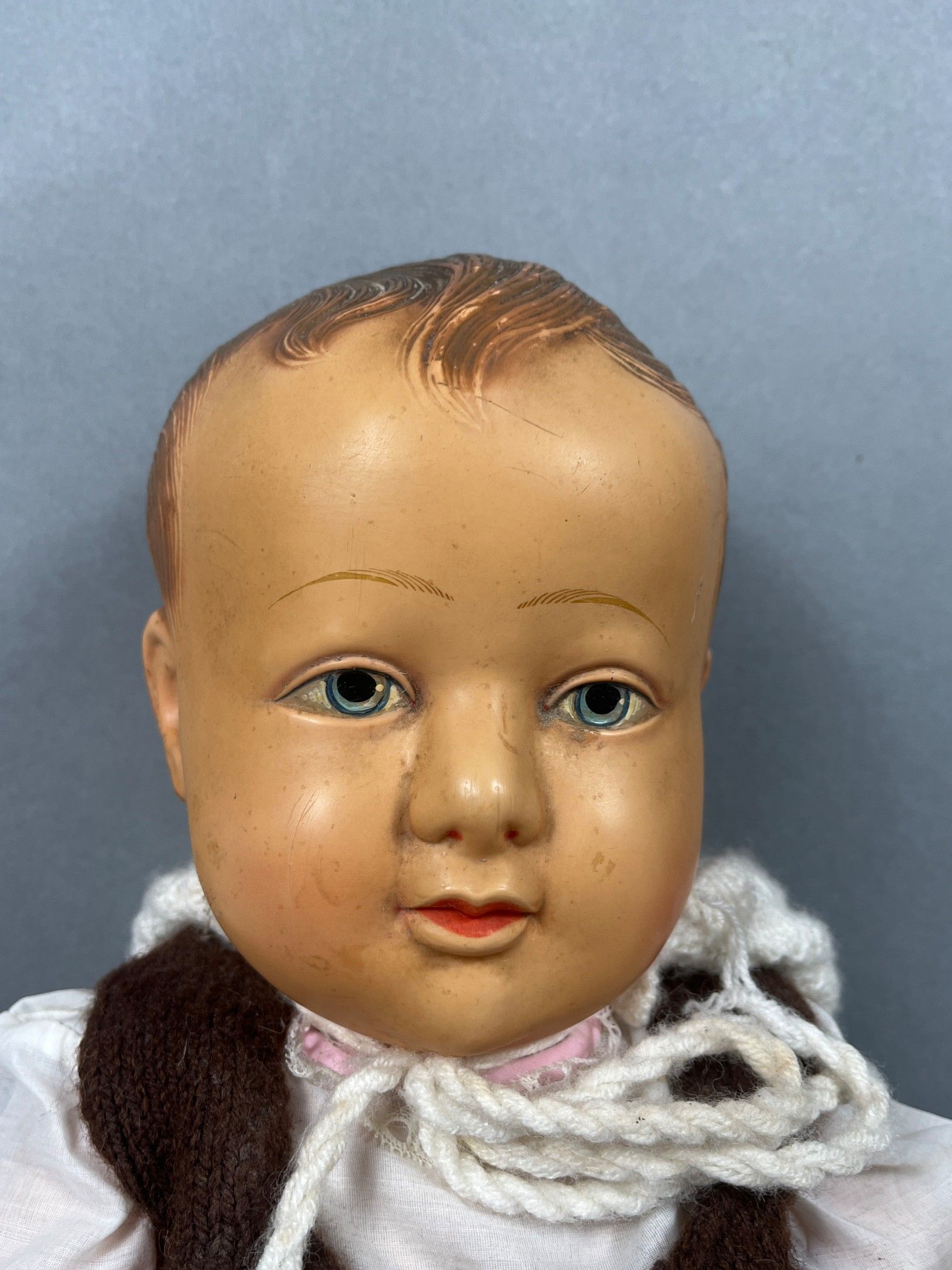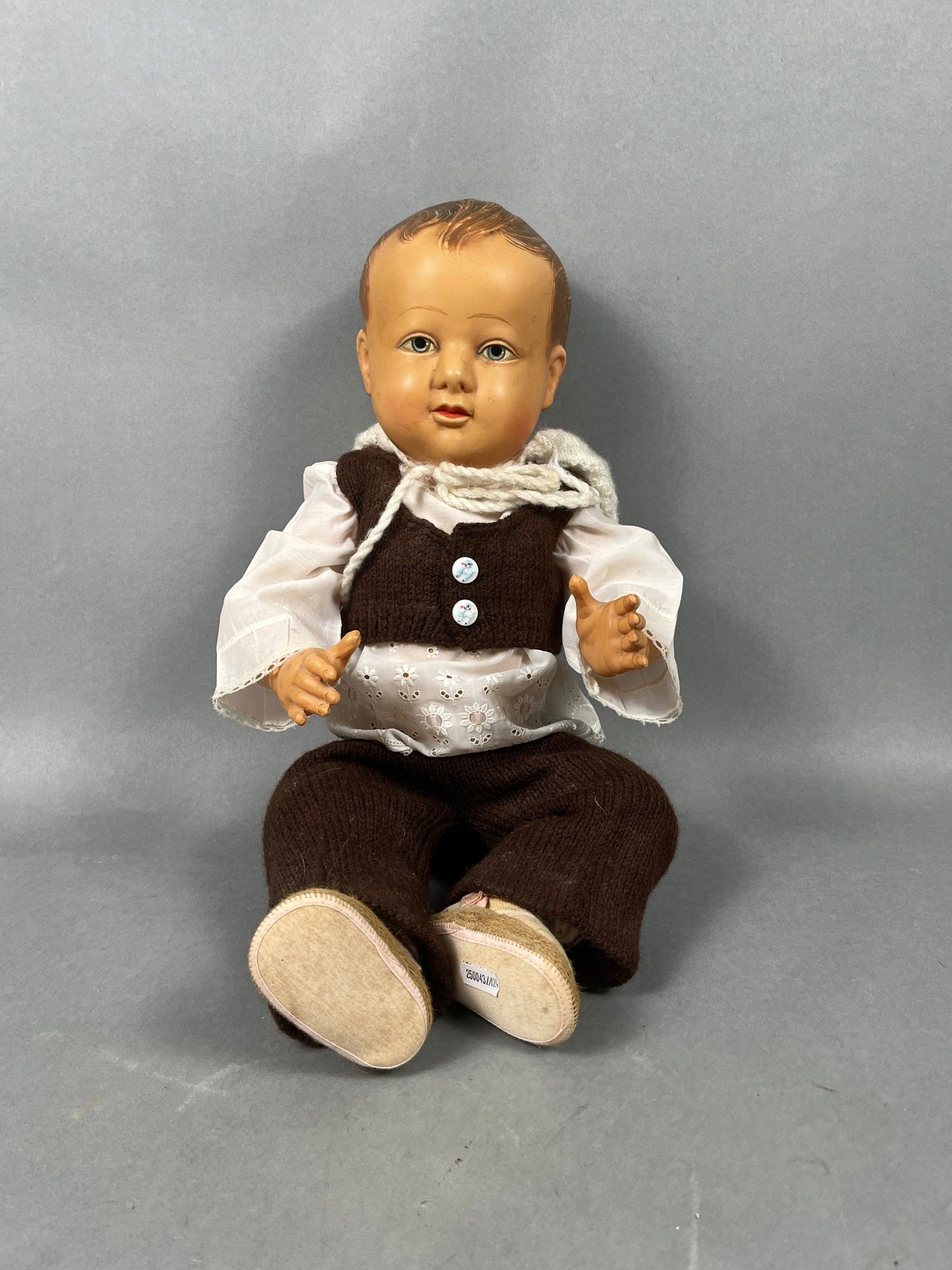 PETITCOLLIN, France. Old bather doll, dressed. Eagle head mark on reverse. Height = 60 cm.