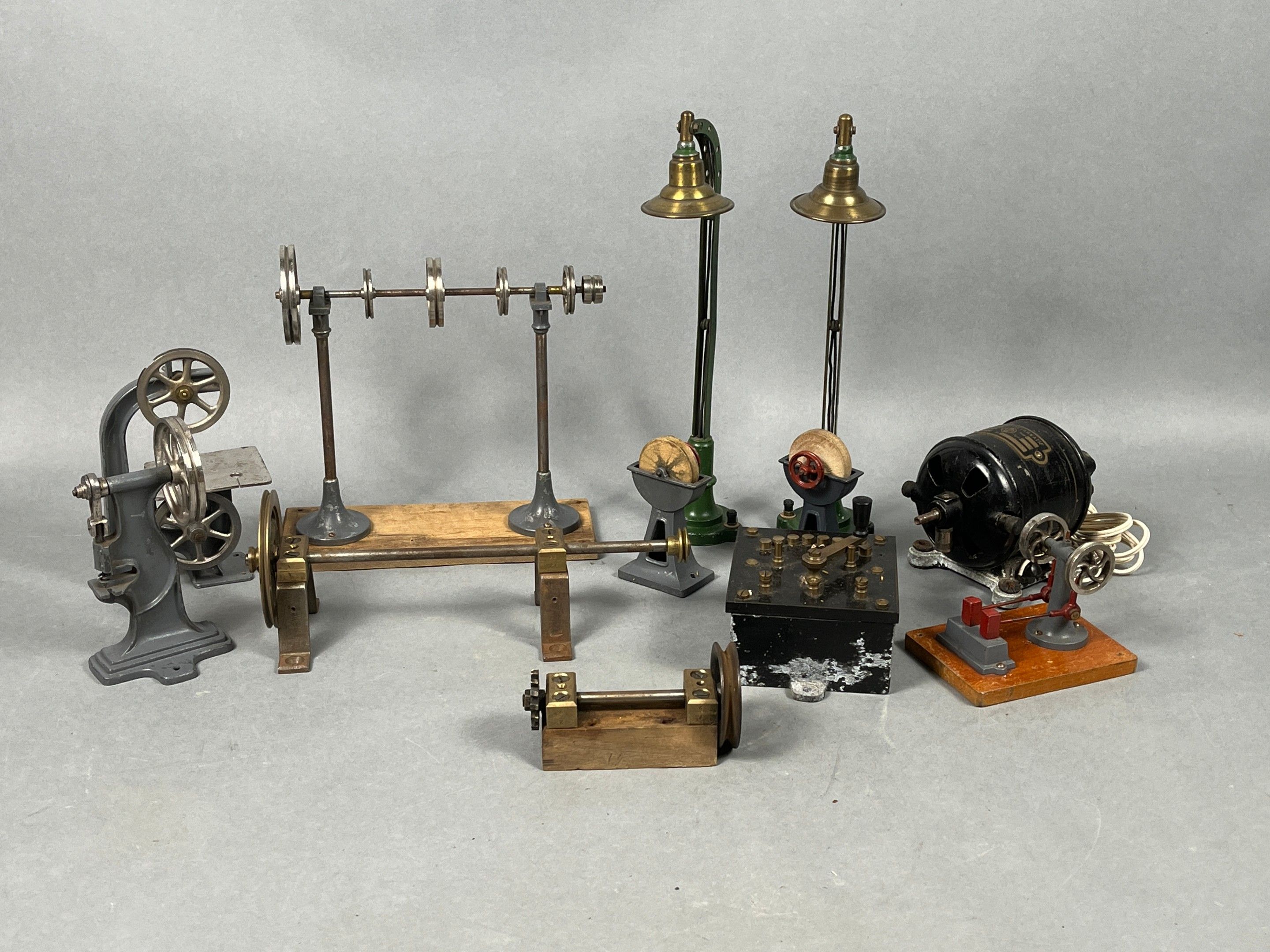 Gustave PERICAUD, France. Electric factory with machine tools and accessories. Circa 1900. Height of lamps: 32.5 cm. As is.