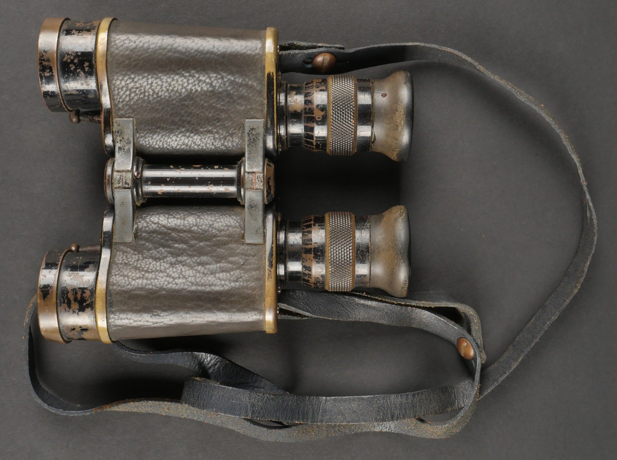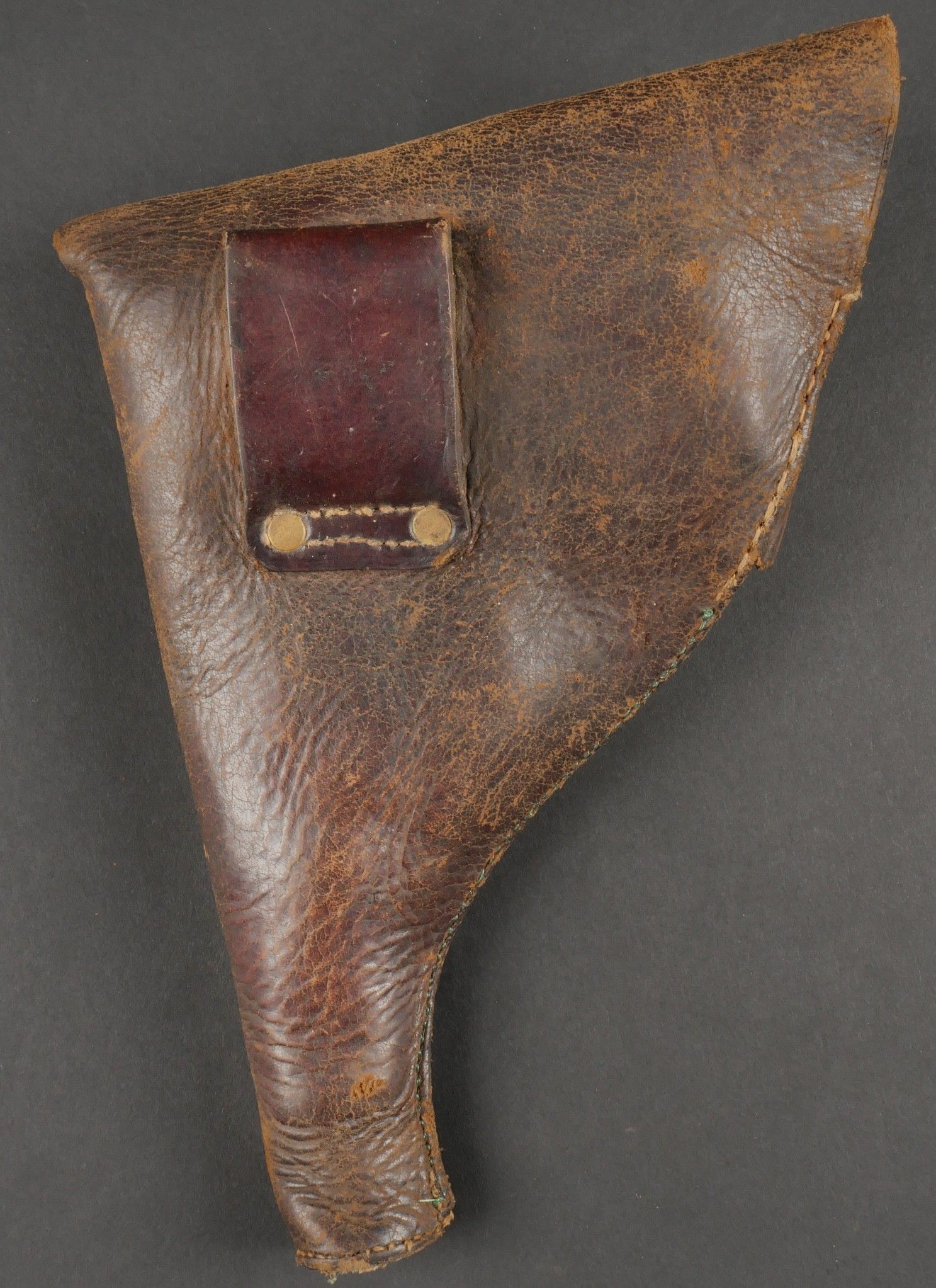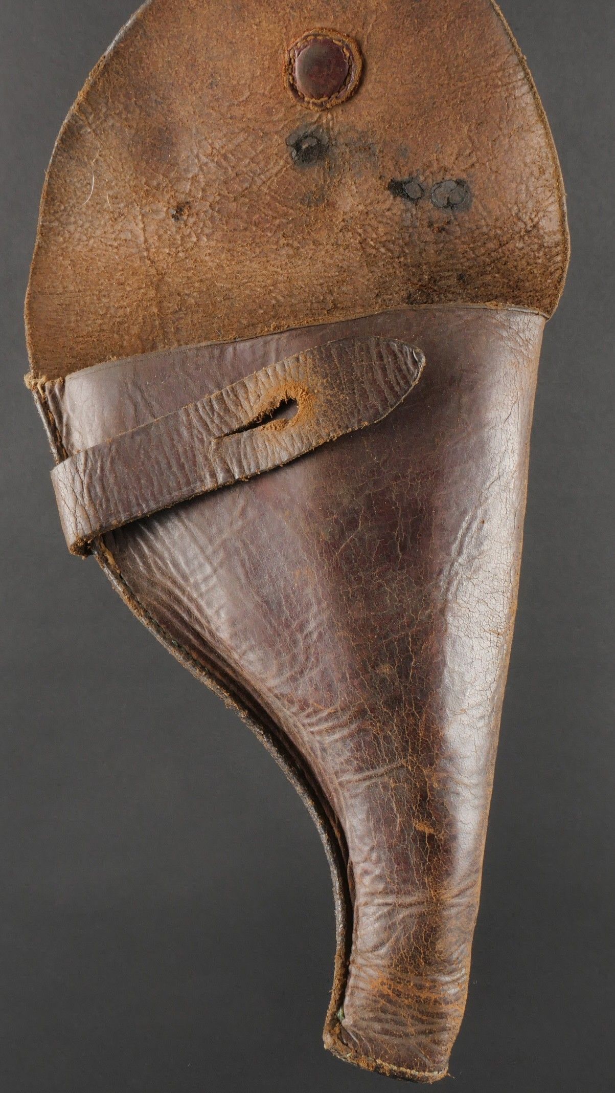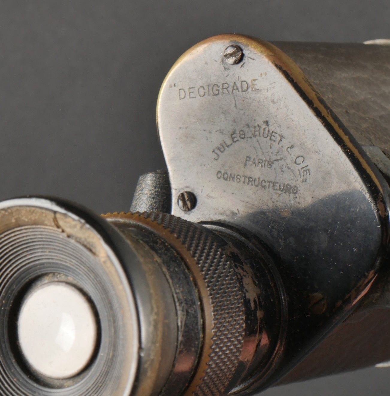 Lot of France 40 equipment comprising a 1935 model rucksack dated 1938, straps present with counter straps, name A.Pellerin. A model 1935 musette bag, illegible receipt stamp, illegible name on back, canvas strap present. A pair of Huet Decigrade binoculars, bakelite cups slightly damaged, optics blurred, with tan leather case and strap. A handmade tan leather revolver holster. A 1935 model canteen, khaki cloth cover, 1934 model strap. A khaki cotton chèche. Lot of France 40 equipment. Including a 1935 model backpack dated 1938 with straps and counter straps, named A. Pellerin. A 1935 model haversack with illegible acceptance stamp and name, strap present. A pair of binoculars by Huet Décigrade with slightly damaged bakelite eyecups, cloudy optics, housed in a fawn leather case with strap. A handcrafted fawn leather revolver holster. A 1935 model canteen with khaki cloth cover and 1934 model strap. A khaki cotton scarf.