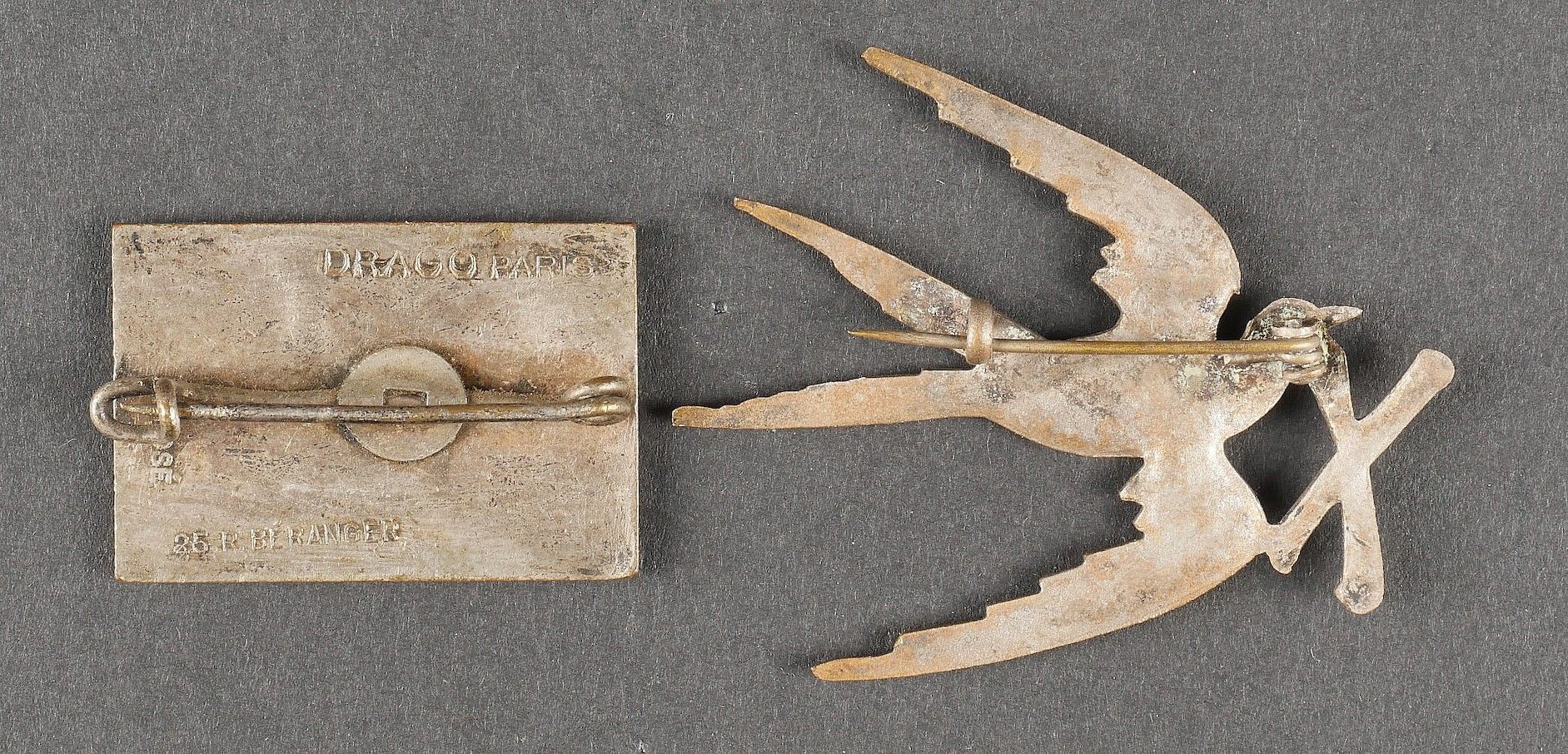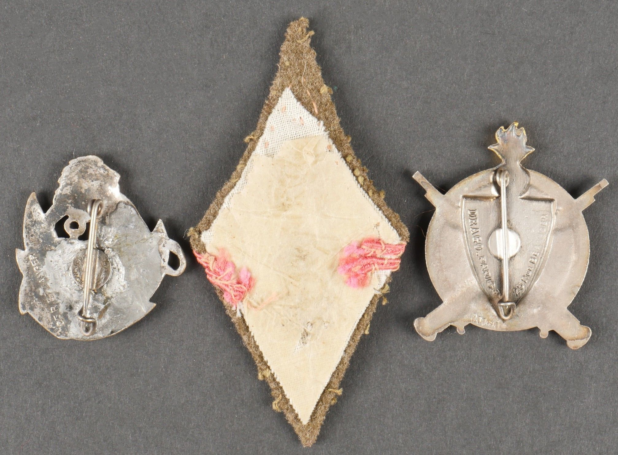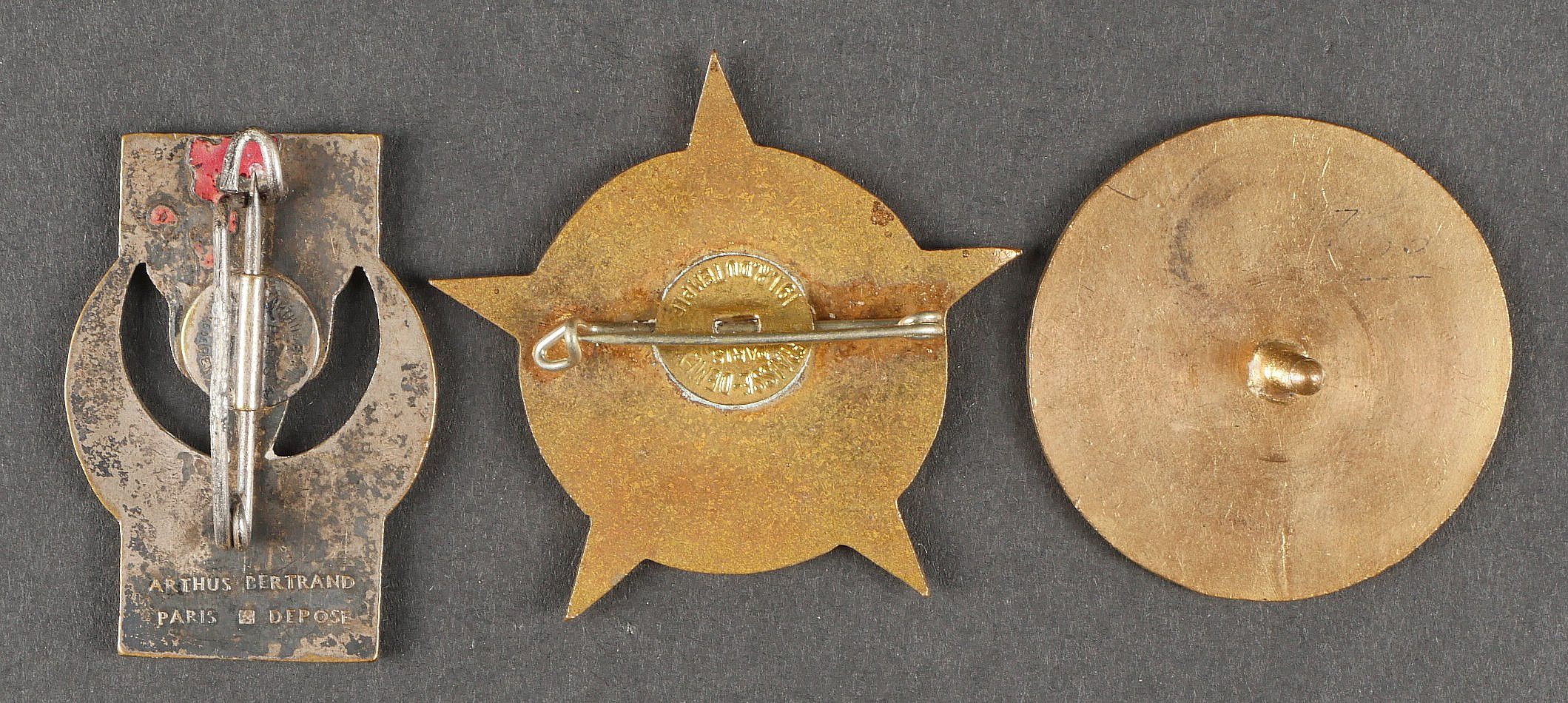 Lot of African Troops badges. Comprising a stamped brass badge of the 1st RTA. A Divisional Artillery Park 80 1st DIM badge, red crescent, screw fastening. A 4th RTS badge of Drago Béranger manufacture, screw fastening. A badge of the 11th Zouave made by Arthus Bertrand. A badge of the divisional sanitary group 80 1st DIM made by Fraisse Demey. A 9th Machine Gun Battalion badge made by Drago Béranger. A Drago Béranger 10th Machine Gun Battalion badge. A colonial infantry officer's collar. Lot of African troops insignia Including a 1st RTA badge in pressed brass, a divisional artillery park 80 1st DIM badge with red crescent and screw fastener, a 4th RTS badge by Drago Béranger with repaired attachment, an 11th Zouaves badge by Arthus Bertrand, a 80 1st DIM divisional medical group badge by Fraisse Demey, a 9th machinegun battalion badge by Drago Béranger, a 10th machinegun battalion badge by Drago Béranger, and a colonial infantry officer's collar patch.