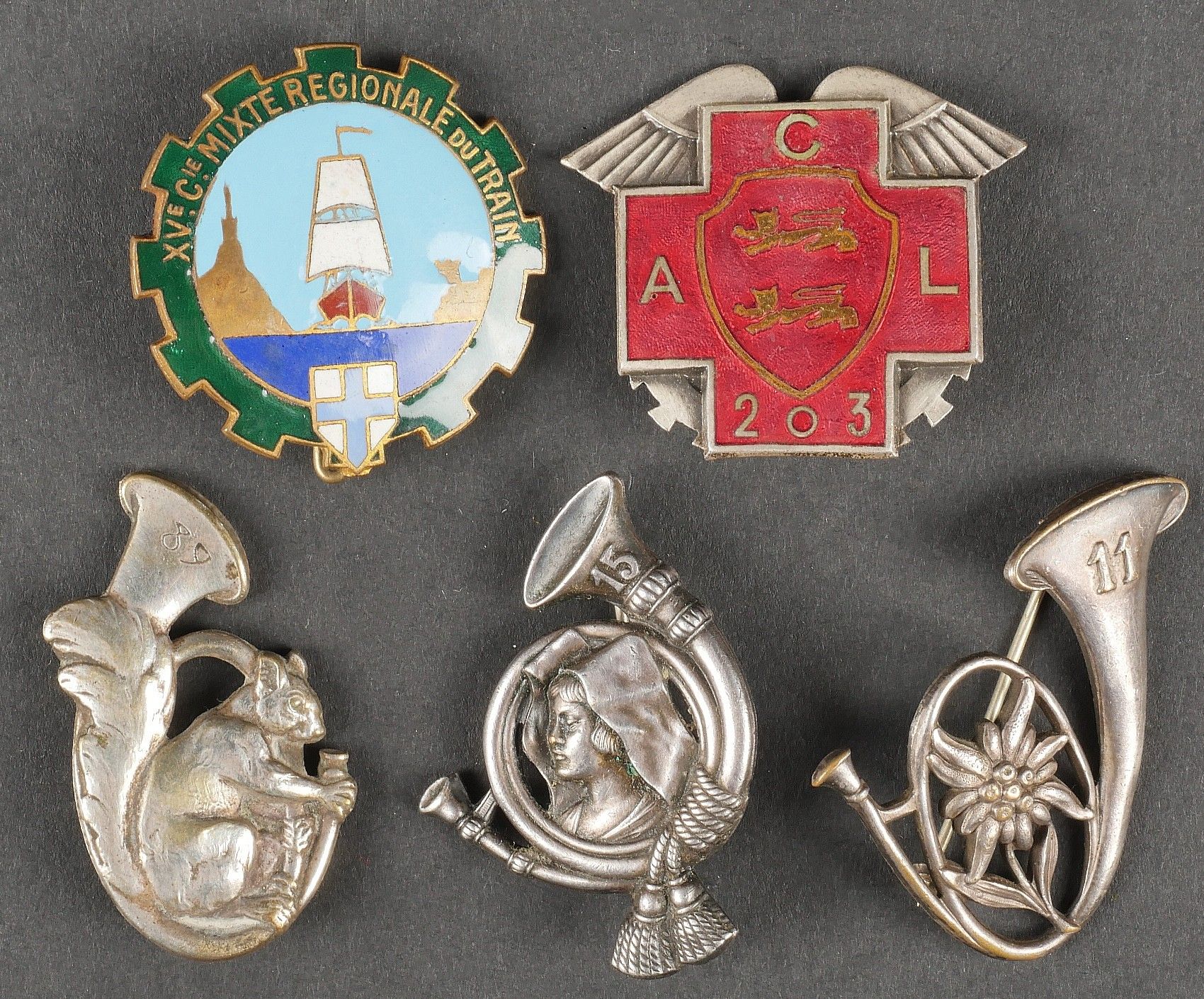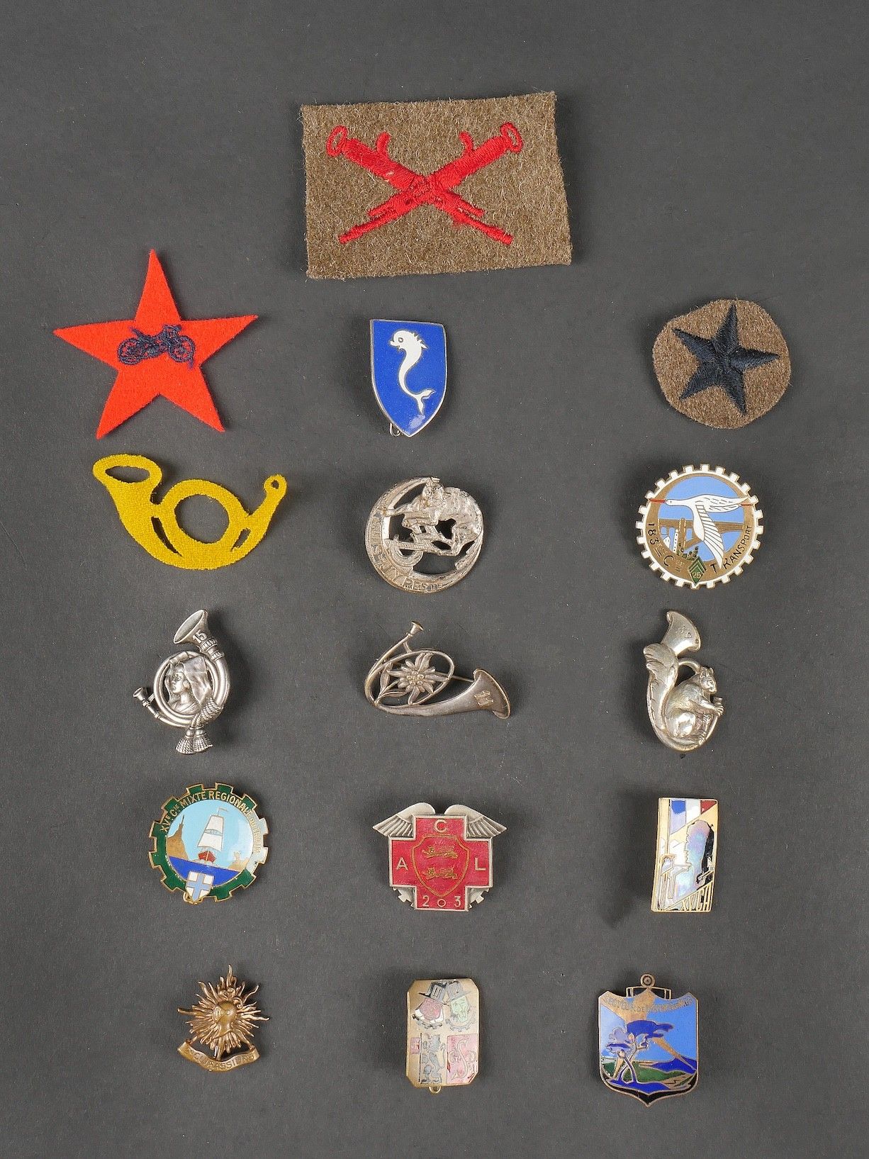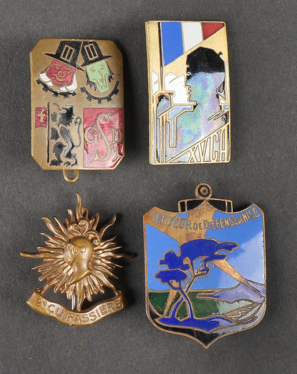 Lot of various badges. Comprising a Nice defence sector badge of Drago Béranger manufacture. An unmarked badge of the 11th BCA. A 15th BCA badge of Arthus Bertrand manufacture. A 15th Corps badge, made by Drago Béranger. A 203 Fraisse Demey heavy surgical ambulance badge on a bolero. A 15th CMRT badge made by Drago Béranger. A Mirou GSD1 badge and various speciality badges. Lot of various insignia Including a Nice Defense Sector badge by Drago Béranger an unmarked 11th BCA badge a 15th BCA badge by Arthus Bertrand a 15th Army Corps badge by Drago Béranger a heavy surgical ambulance 203 badge by Fraisse Demey on back plate a 15th CMRT badge by Drago Béranger a GSD1 badge by Mirou and various specialist badges
