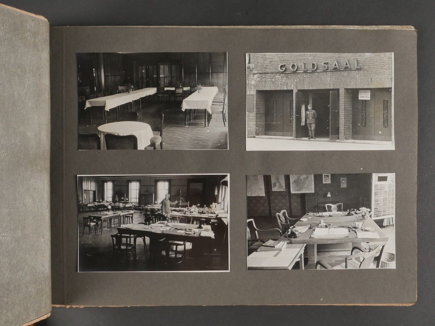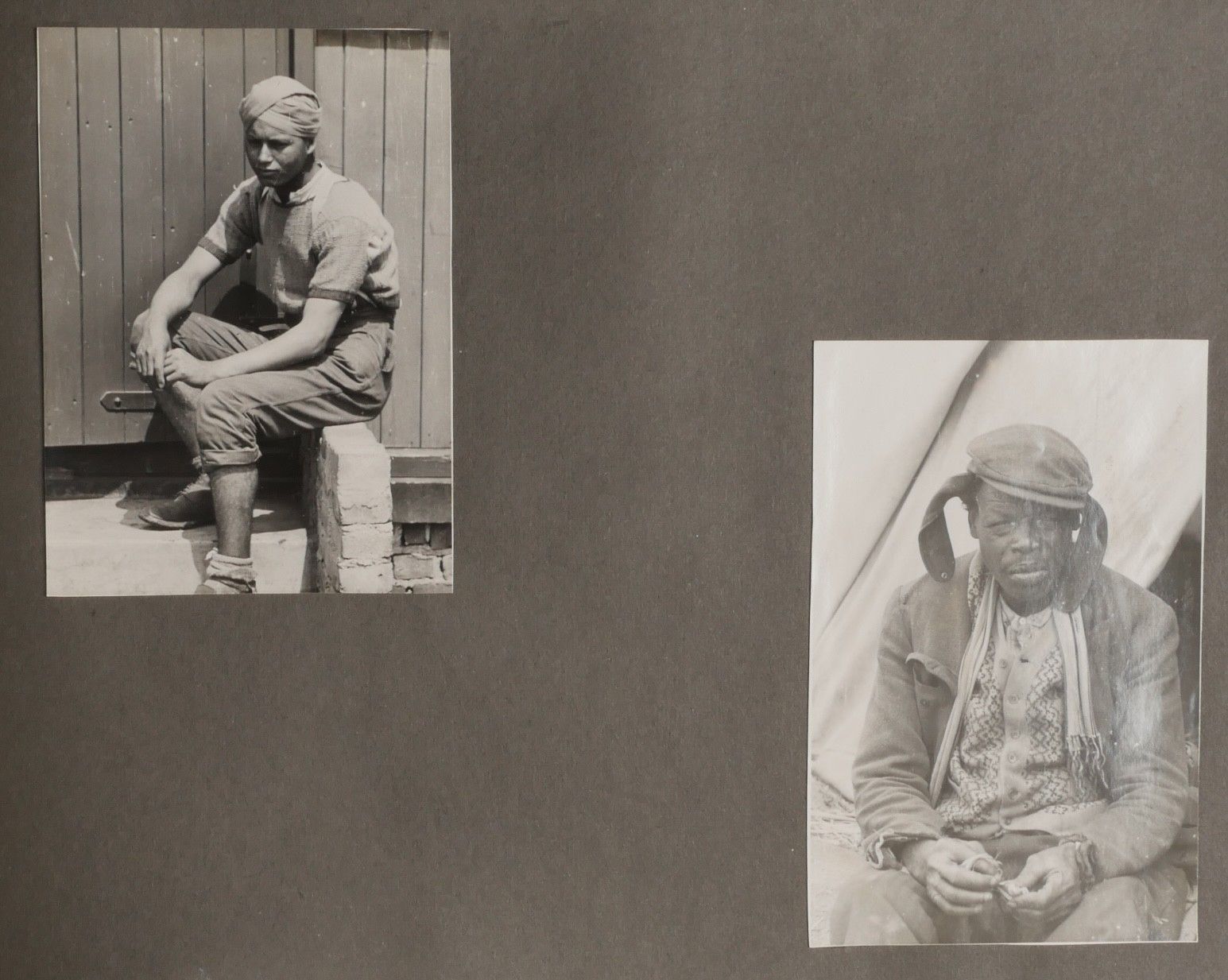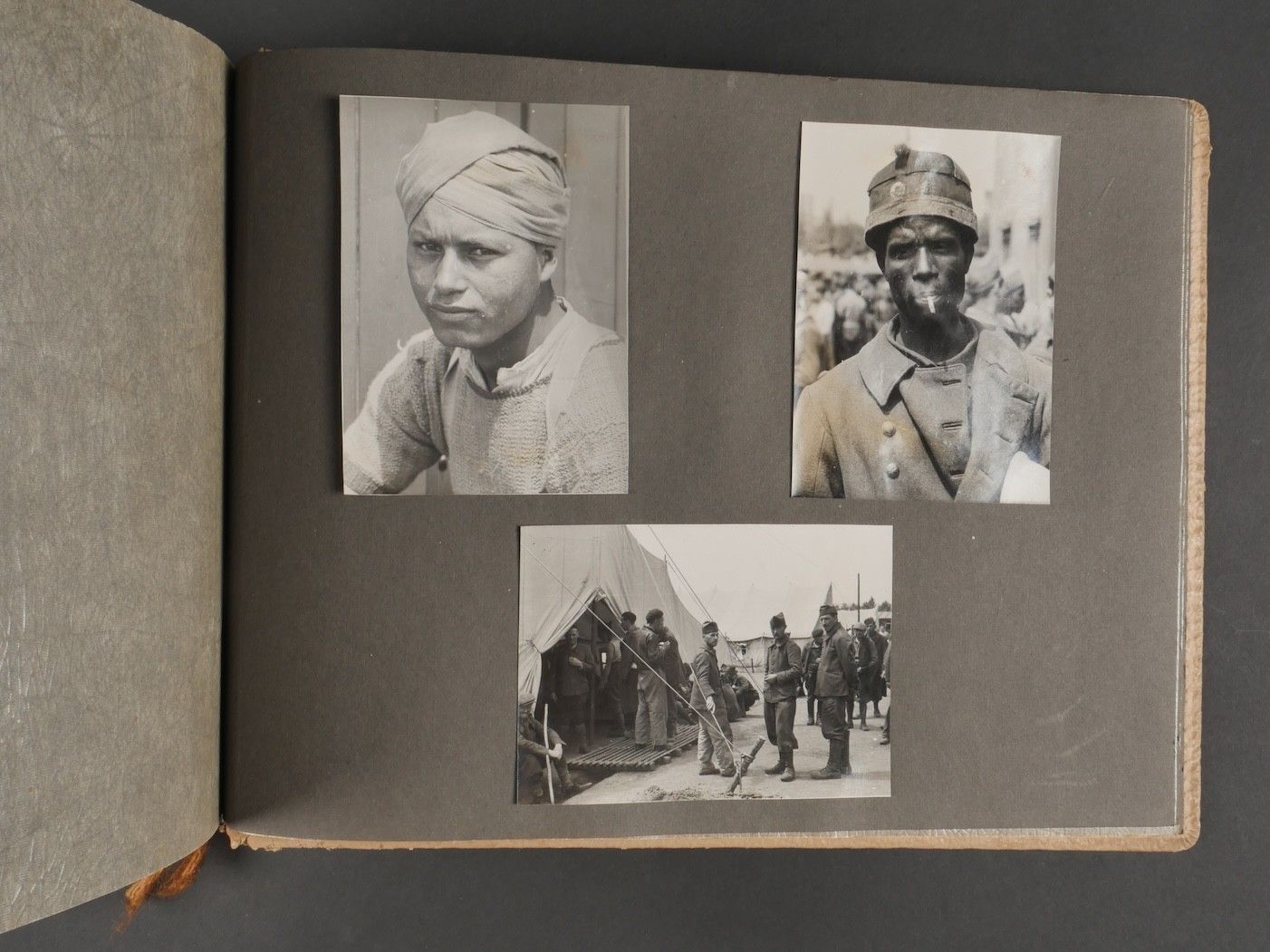 Prisoner of war photo album. Beautiful album containing 68 original photos taken by a prisoner in Germany during his detention. It shows the first prisoners' barracks at the Goldsaal in Dortmund, and the life of a prisoner in the camp, with all its chores. We see French, Belgian and British soldiers, as well as Senegalese riflemen and various soldiers from the colonial troops. The photos are crisp and of high quality. POW photo album Fine album containing 68 original photographs taken by a prisoner in Germany during detention. Shows early prisoner barracks inside the Goldsaal in Dortmund daily camp life with work details French Belgian British and Senegalese soldiers and other colonial troops. Clear and wellpreserved photographs.