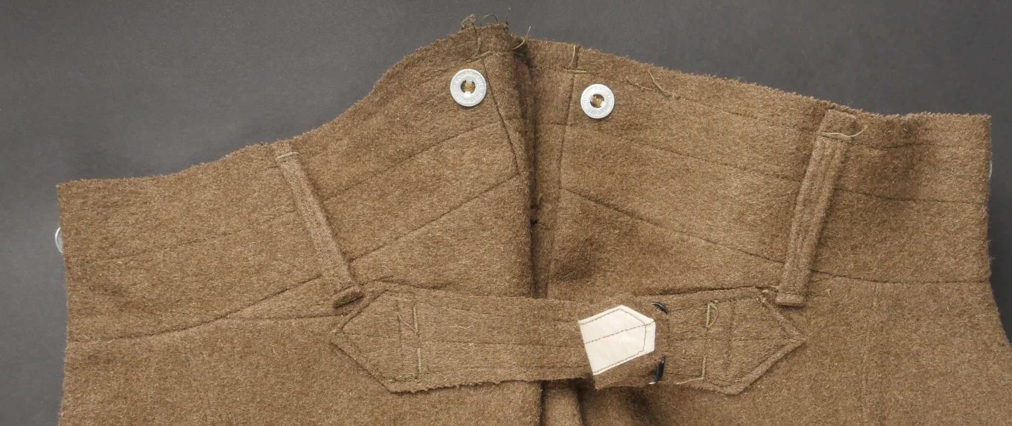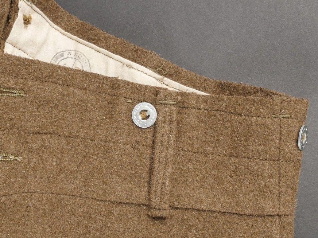 1922 breeches. Khaki cloth, unbleached cotton cuffs, five bu…