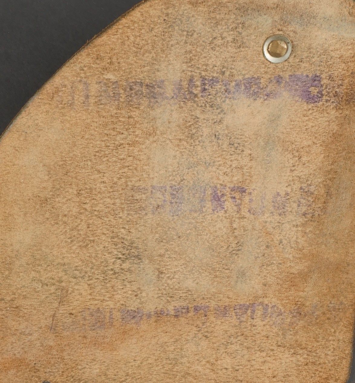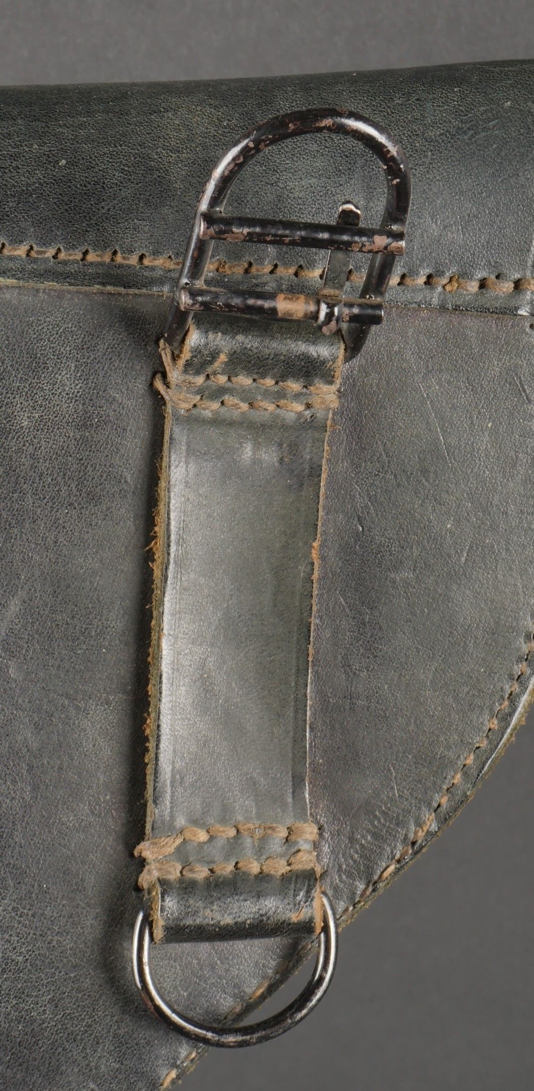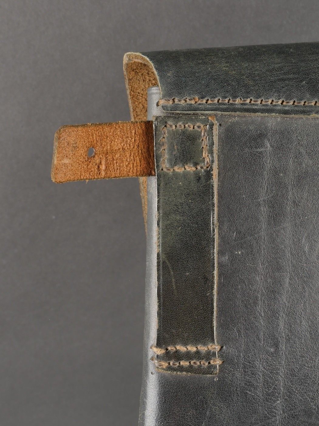 Nice case for a French PA 35 made in blackened leather, intended for Air Force units or the Gendarmerie. Under the flap are several commissariat stamps in ink. Model without internal strap, 2 compartments for magazines. Original sewn back loops. Small leather tab still present. Leather in good condition and supple. Fine PA 35 French holster Made of blackened leather intended for Air Force or Gendarmerie units under the flap are several inkstamped ordnance marks model without internal strap two compartments for magazines rear loops stitched in place small leather tab intact supple leather in good condition.