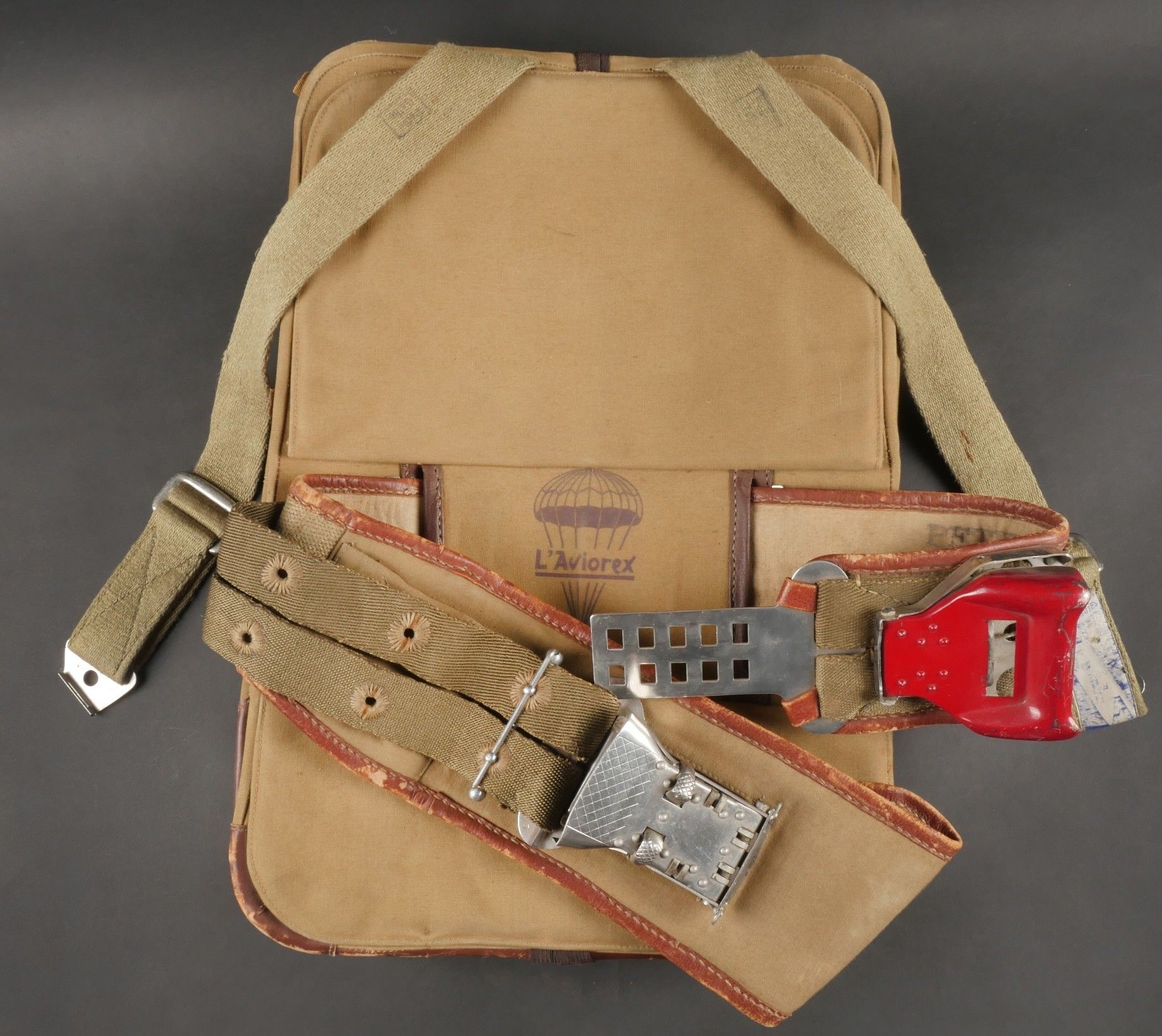 Aviorex 903 parachute. Light khaki canvas cover, for crew or…