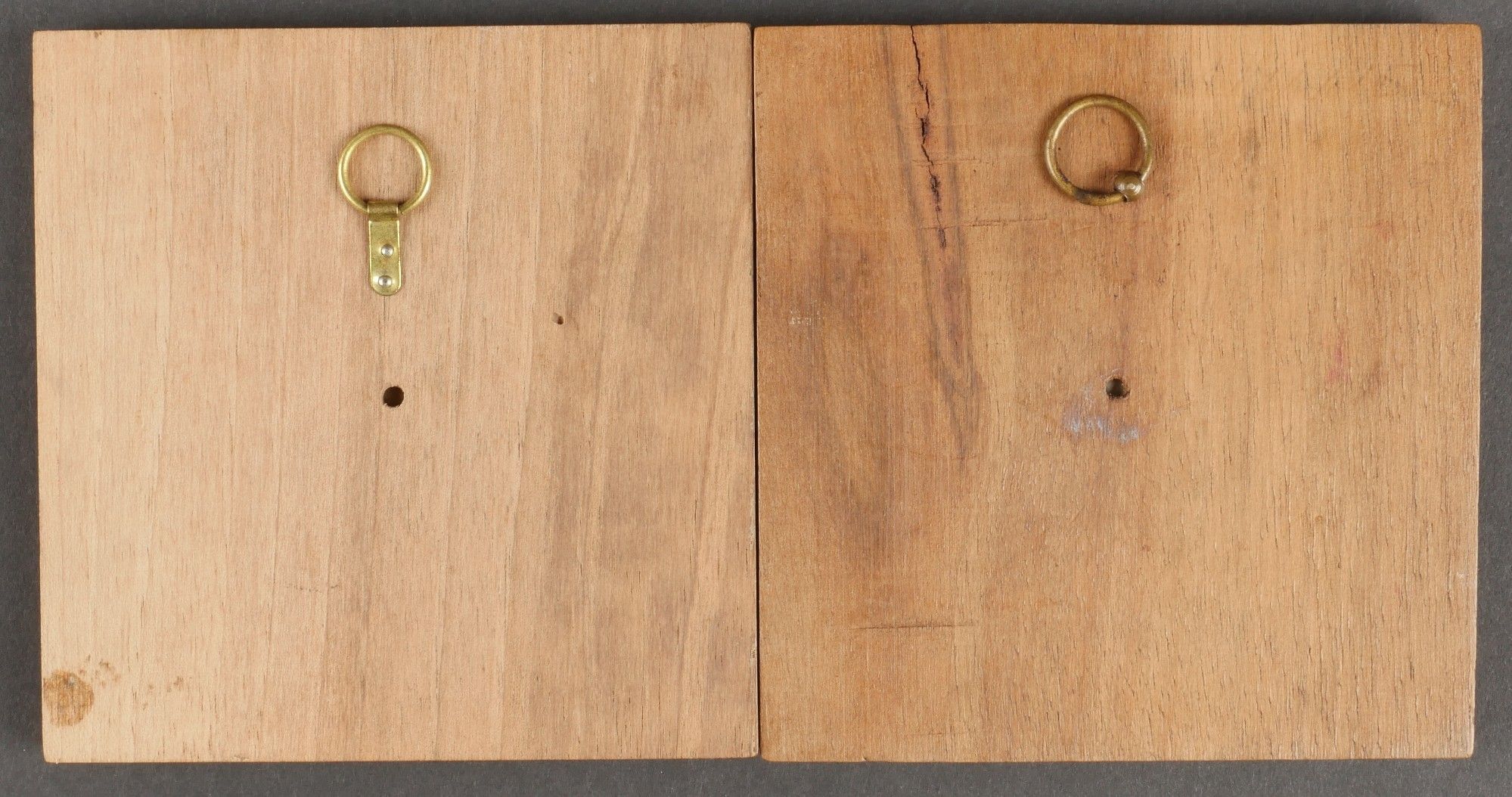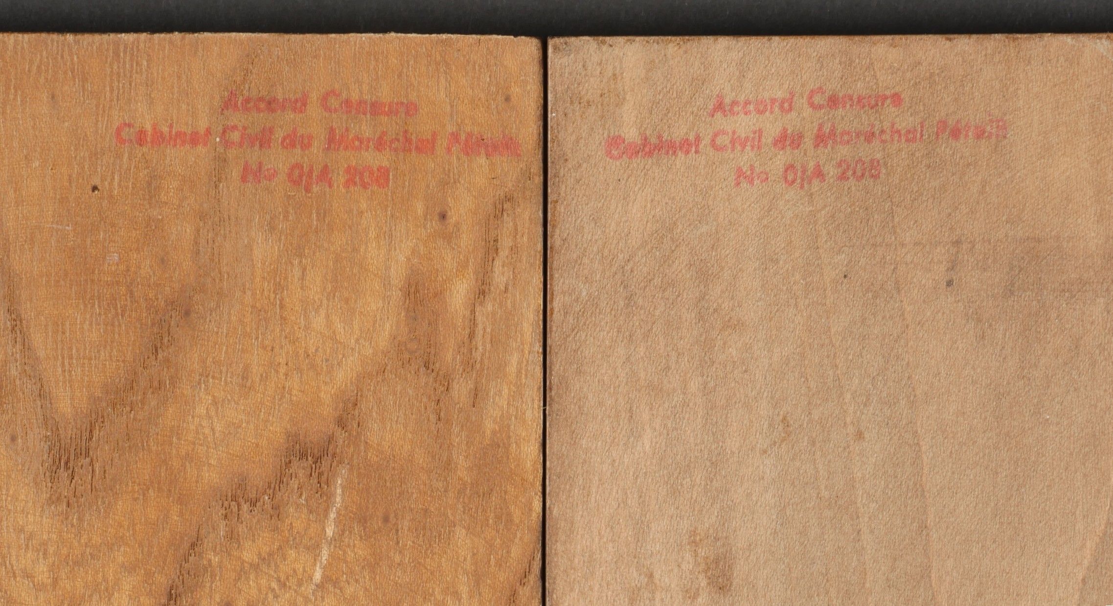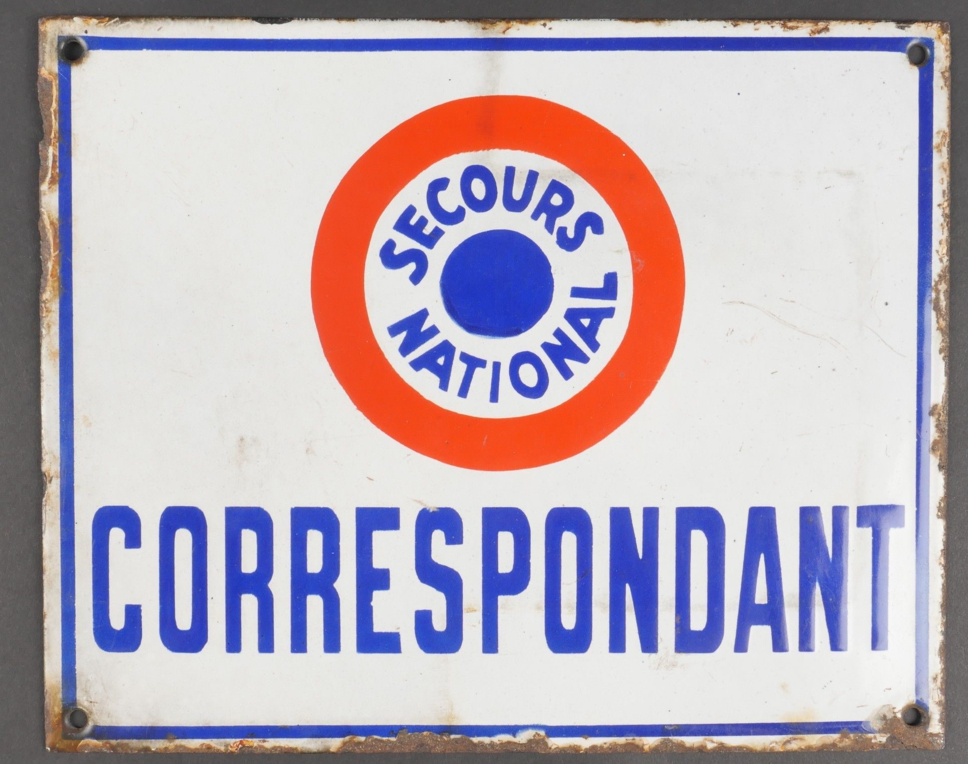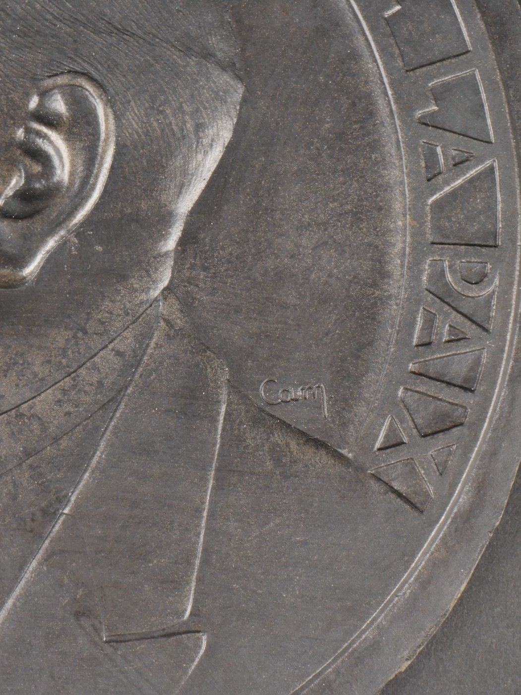 Set of medallions. Comprising two wooden medallions depicting the portrait of the Marshal, size 15x15cm. Two wooden medallions with a portrait of the Marshal bareheaded, marked Maréchal Pétain head of the French State, size 9x9cm. A cast iron wall plaque depicting Edouard Daladier, diameter 20.5cm. An enamelled plaque of the Secours National correspondent is also included, size 25x20cm. Set of medallions. Two wooden medallions with the Marshal's portrait 15×15 cm two with bareheaded portrait marked Maréchal Pétain Chef de l'État Français 9×9 cm a castiron plaque depicting Édouard Daladier diam. 20.5 cm and an enamel plaque of a Secours National correspondent 25×20 cm.