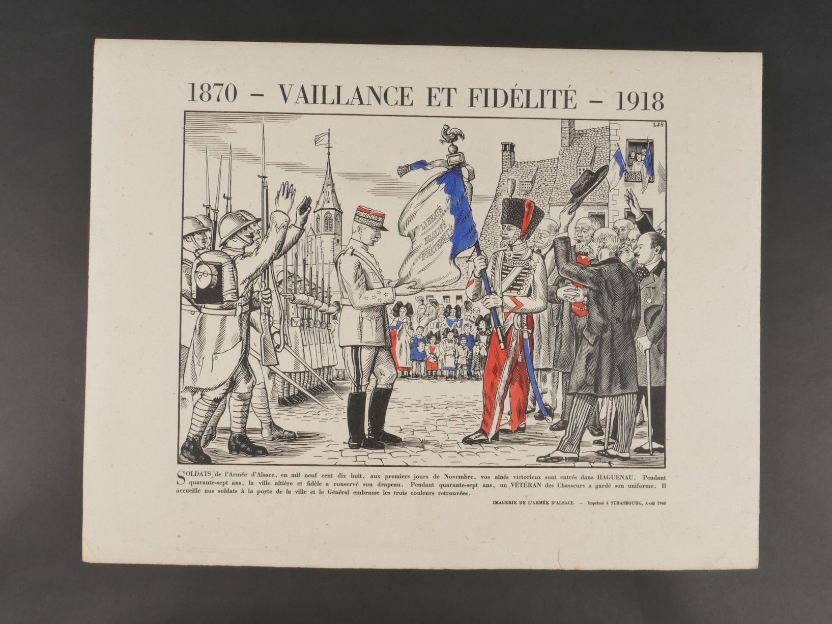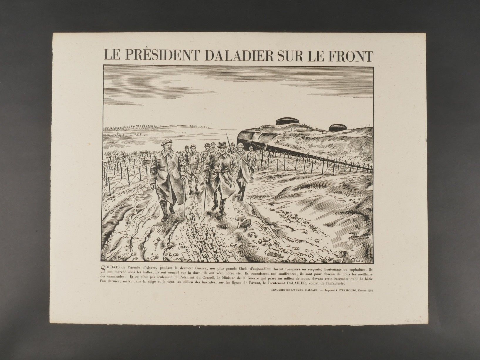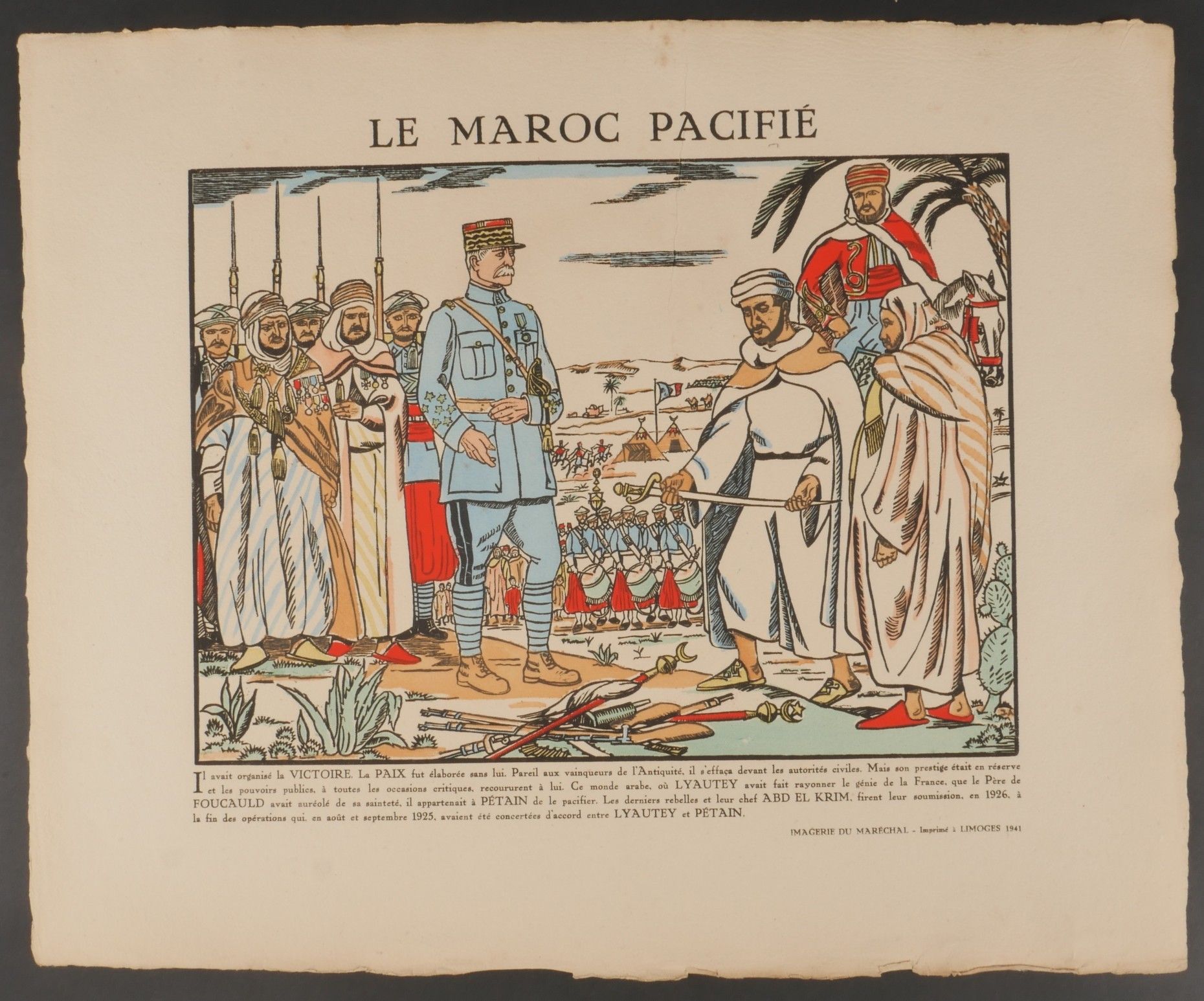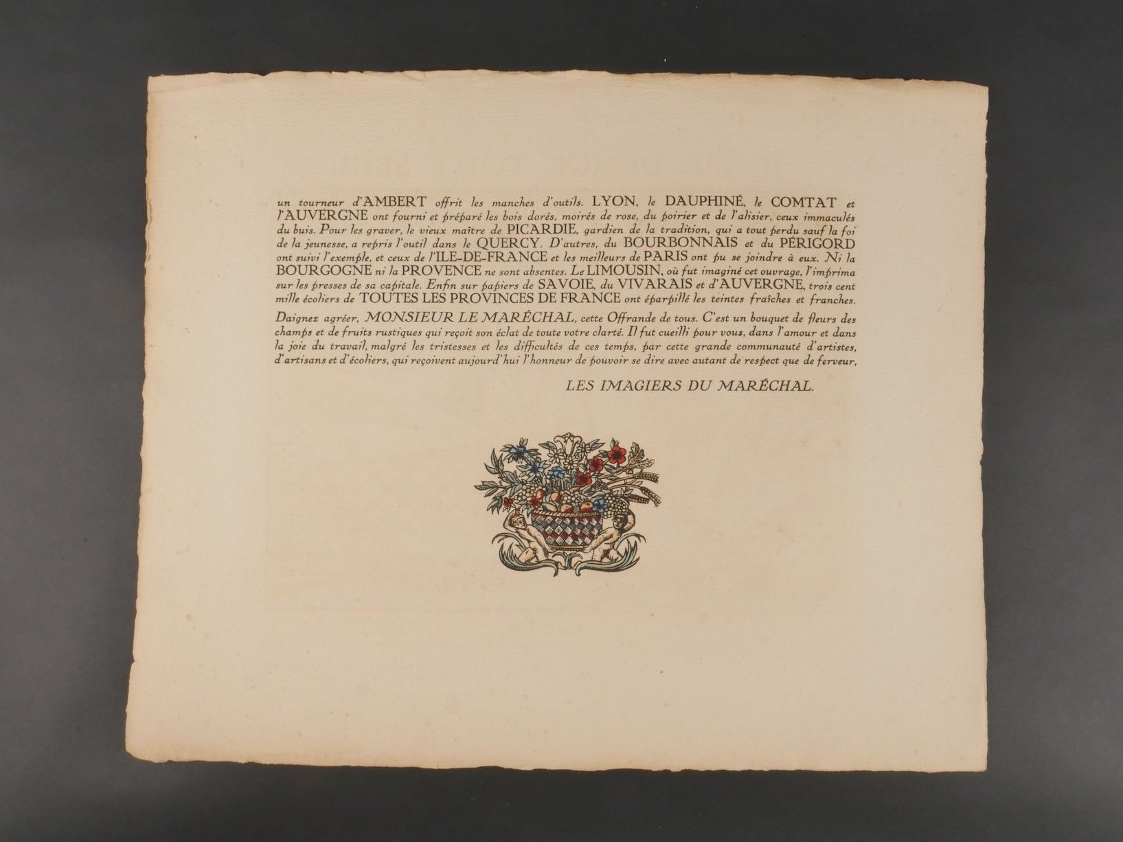 DescriptionImagerie du Maréchal. Hardback cover bearing the effigy of the Marshal, numbered 32, printed in Limoges on 29 May 1941 on the presses of the François workshops. Comprising three trial proofs on paper and its 12 original plates. There are also six black and white plates printed in Strasbourg in February and April 1940, one of which is colourised. Marshal imagery. Cardboard folder printed in Limoges 29 May 1941, Ateliers François numbered 32, containing three proof prints and 12 original plates plus six blackandwhite plates printed in Strasbourg February-April 1940, one handcolored.