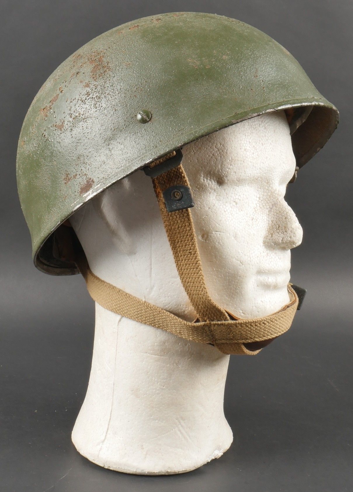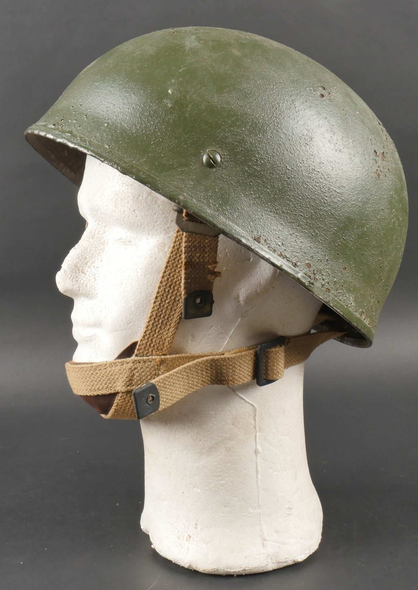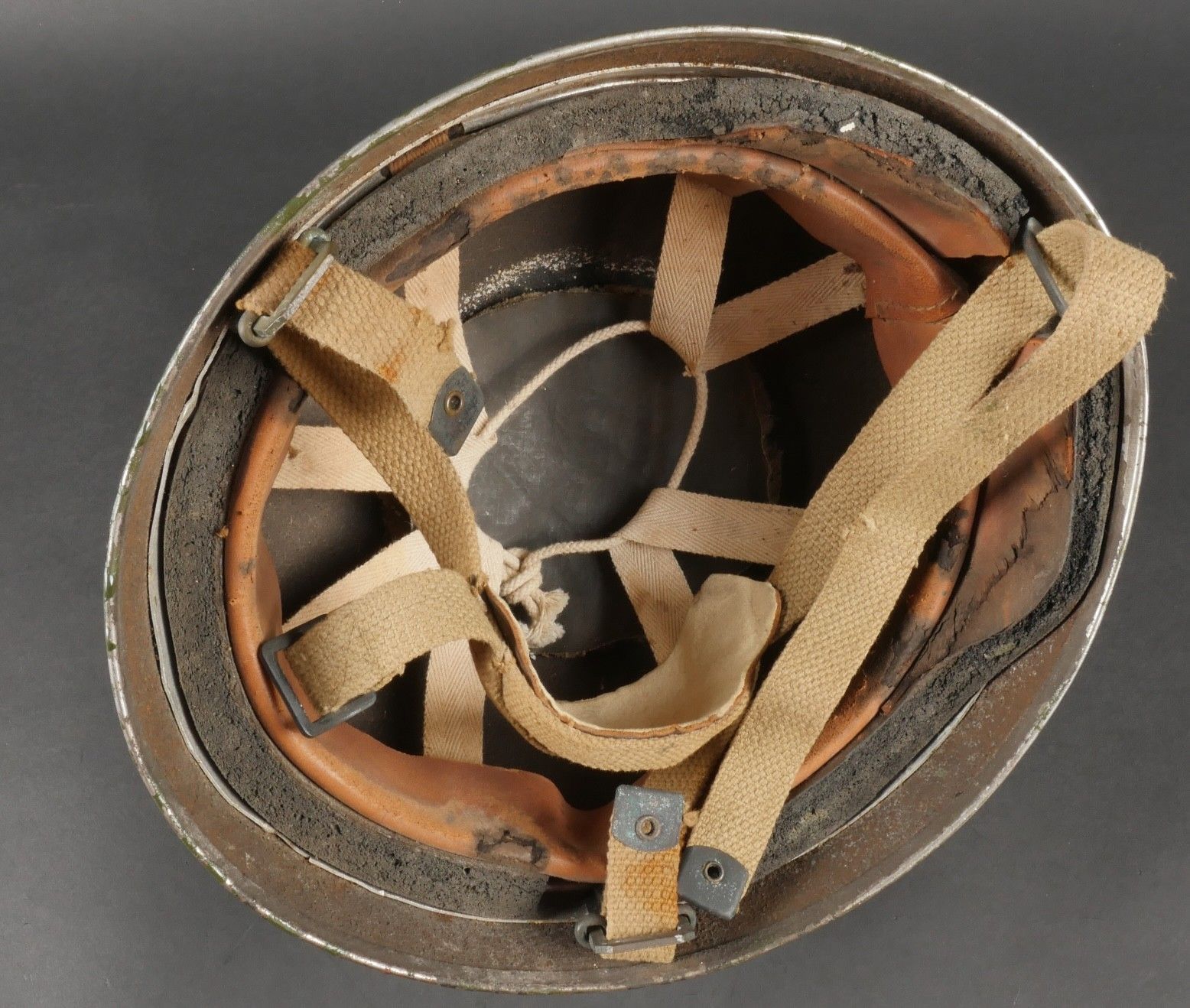 British MKII parachutist helmet. Metal shell with stainless steel snap ring and WWII made canvas chinstrap, chamois leather present. Original interior with leather-covered foam, canvas inner cap with leather headband marked BMB 1944 and size 7 34, shock absorber stamp on bottom of bomb. The exterior of the helmet was later repainted green. This item comes from Petite Raon in the Vosges where the Loyton operation was conducted by the 2nd SAS from mid-August to early October 1944 with the aim of opening up the small passes ahead of the US Patton 3rd Army. 100 SAS, SOE and Jedburgh paratroopers, 6 jeeps, 1000 GMA maquisards and 1RCV took part. The seller's grandfather, an FFI Eaux et Forets then GMA Vosges, took part in this operation, which was the second largest SAS operation in occupied France, after SAMWEST in June 1944 in Brittany. He was captured by the Germans at the end of September and deported to Dachau, where he died in April 1945. When his grandmother died, the vendor recovered items hidden or abandoned on the family farm and in neighbouring houses, all linked to the maquis in the valley. It was only much later that he learned the details of Operation LOYTON. British parachutist helmet MKII. Steel shell with stainless rim and wartime web chinstrap, chamois present. Original interior with foam covered in leather and cloth liner with leather band marked maker BMB 1944 and size 7 34, shock pad present at the crown. Exterior later repainted green. This piece comes from Petite Raon in the Vosges where Operation Loyton by 2nd SAS took place from mid August to early October 1944 with the objective of opening small passes ahead of the US Third Army Patton. One hundred SAS SOE Jedburgh six jeeps one thousand GMA maquisards and 1 RCV took part. The seller's grandfather FFI Eaux et Forêts then GMA Vosges took part in this operation which was the second largest SAS operation in occupied France after SAMWEST in June 1944 in Brittany. He was captured by the Germans in late September and deported to Dachau where he died in April 1945. On his grandmother's death the seller recovered hidden or left items in the family farm and neighboring houses all linked to the valley Maquis and only later learned details of Operation Loyton.