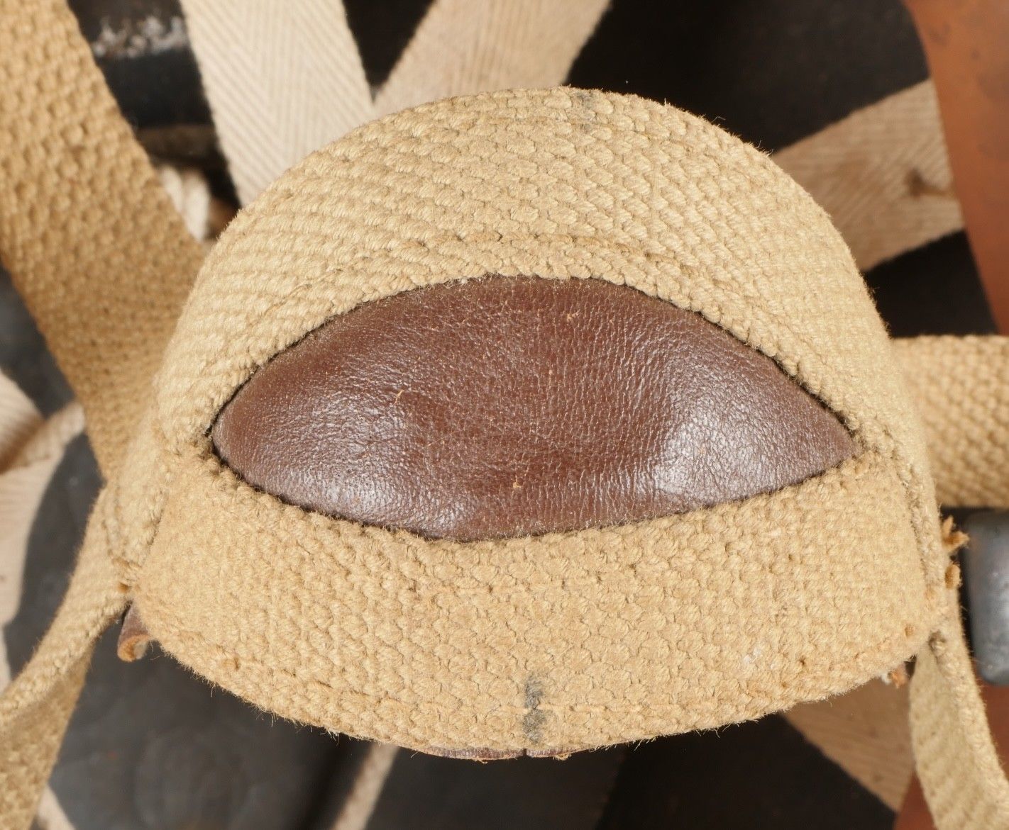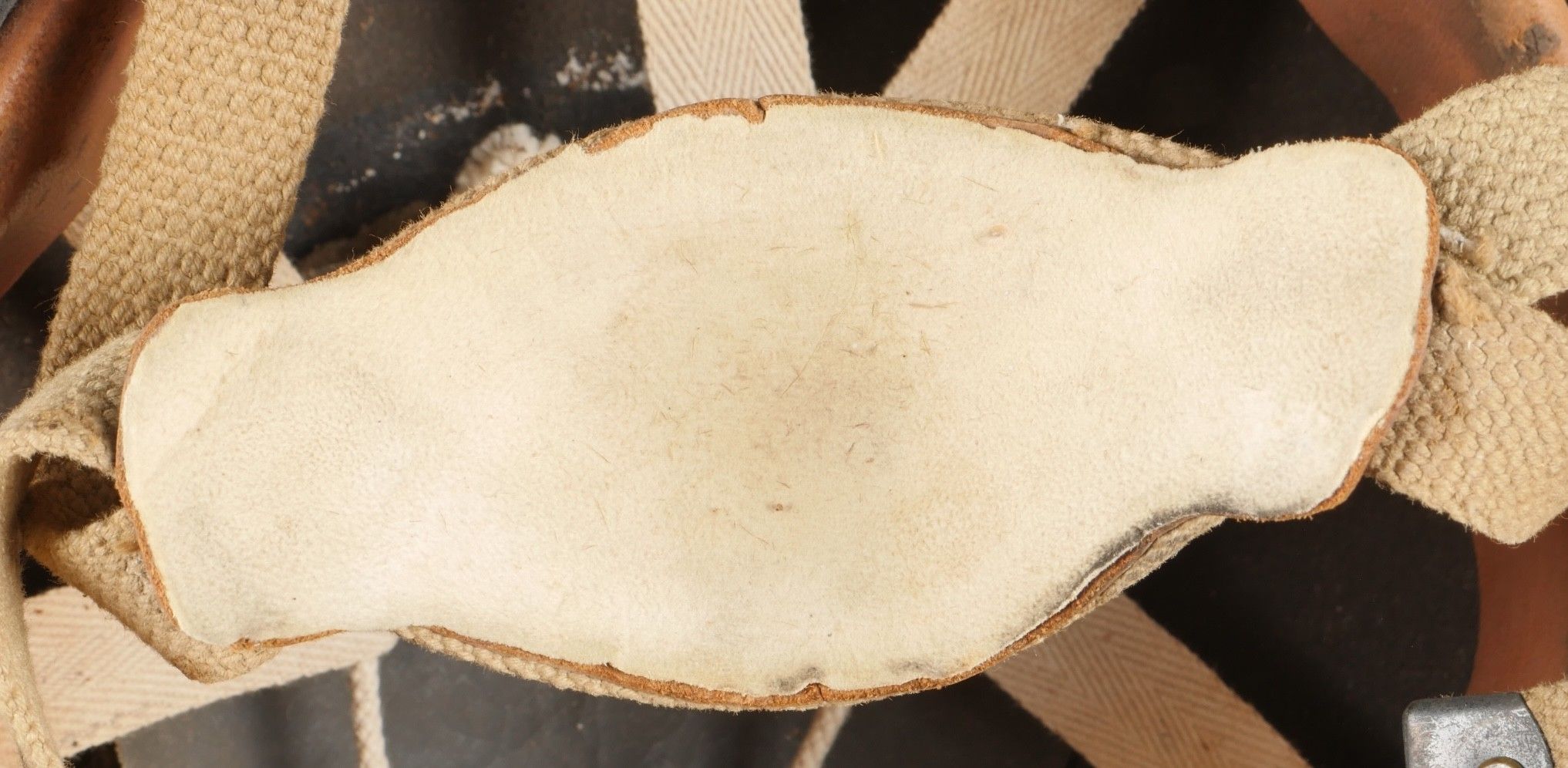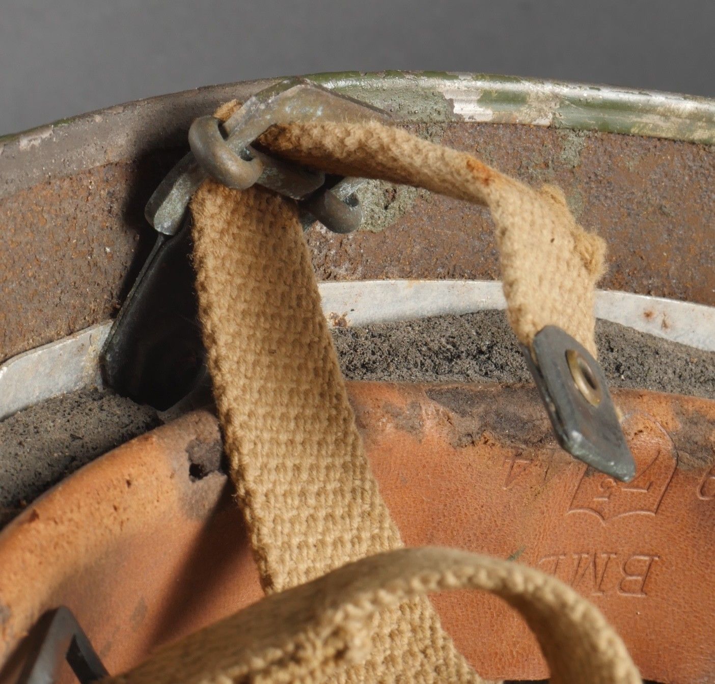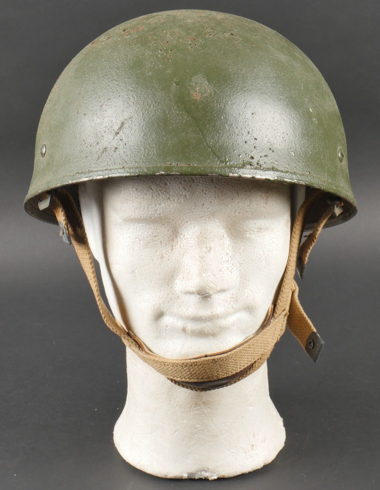 British MKII parachutist helmet. Metal shell with stainless steel snap ring and WWII made canvas chinstrap, chamois leather present. Original interior with leather-covered foam, canvas inner cap with leather headband marked BMB 1944 and size 7 34, shock absorber stamp on bottom of bomb. The exterior of the helmet was later repainted green. This item comes from Petite Raon in the Vosges where the Loyton operation was conducted by the 2nd SAS from mid-August to early October 1944 with the aim of opening up the small passes ahead of the US Patton 3rd Army. 100 SAS, SOE and Jedburgh paratroopers, 6 jeeps, 1000 GMA maquisards and 1RCV took part. The seller's grandfather, an FFI Eaux et Forets then GMA Vosges, took part in this operation, which was the second largest SAS operation in occupied France, after SAMWEST in June 1944 in Brittany. He was captured by the Germans at the end of September and deported to Dachau, where he died in April 1945. When his grandmother died, the vendor recovered items hidden or abandoned on the family farm and in neighbouring houses, all linked to the maquis in the valley. It was only much later that he learned the details of Operation LOYTON. British parachutist helmet MKII. Steel shell with stainless rim and wartime web chinstrap, chamois present. Original interior with foam covered in leather and cloth liner with leather band marked maker BMB 1944 and size 7 34, shock pad present at the crown. Exterior later repainted green. This piece comes from Petite Raon in the Vosges where Operation Loyton by 2nd SAS took place from mid August to early October 1944 with the objective of opening small passes ahead of the US Third Army Patton. One hundred SAS SOE Jedburgh six jeeps one thousand GMA maquisards and 1 RCV took part. The seller's grandfather FFI Eaux et Forêts then GMA Vosges took part in this operation which was the second largest SAS operation in occupied France after SAMWEST in June 1944 in Brittany. He was captured by the Germans in late September and deported to Dachau where he died in April 1945. On his grandmother's death the seller recovered hidden or left items in the family farm and neighboring houses all linked to the valley Maquis and only later learned details of Operation Loyton.