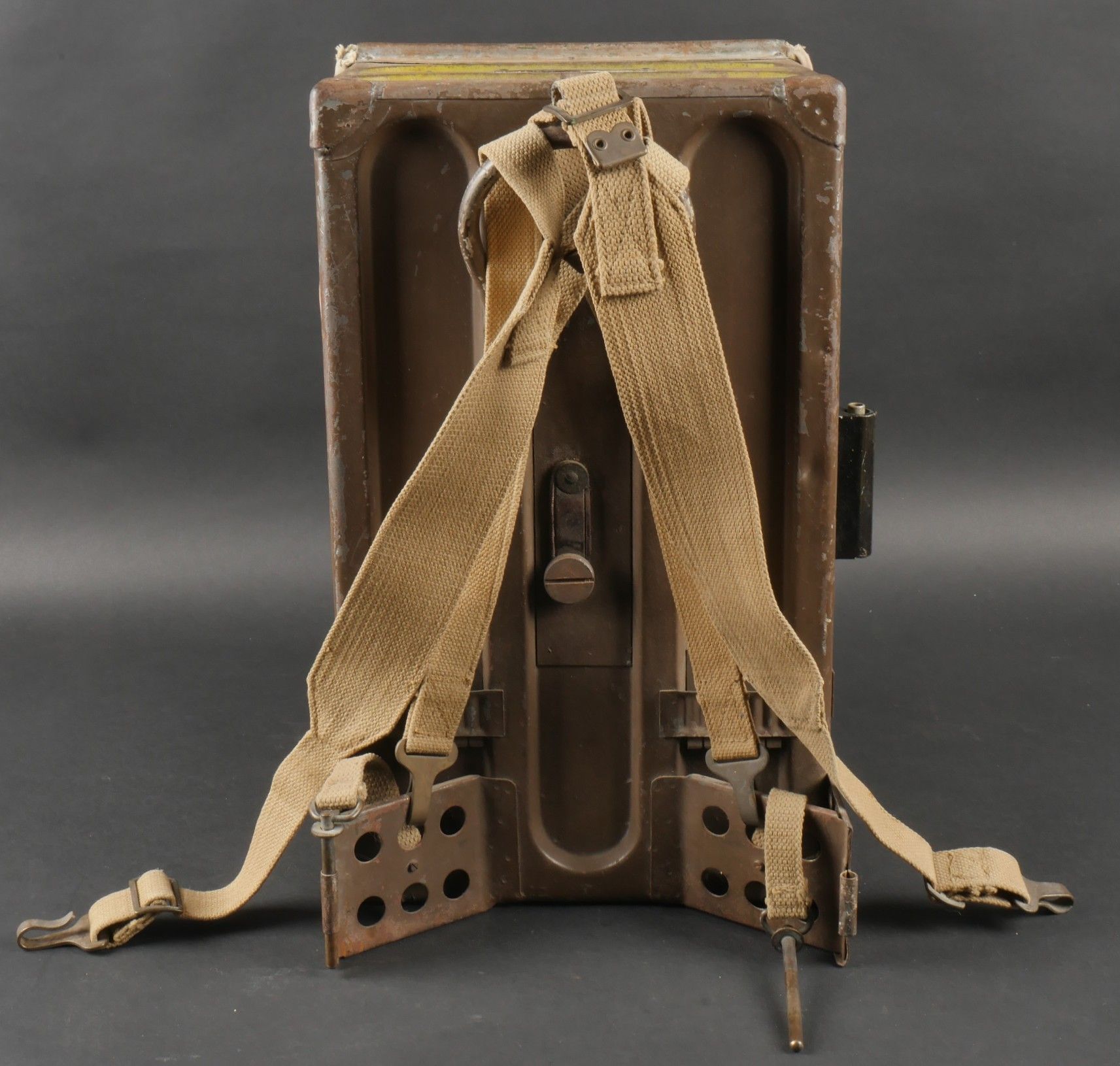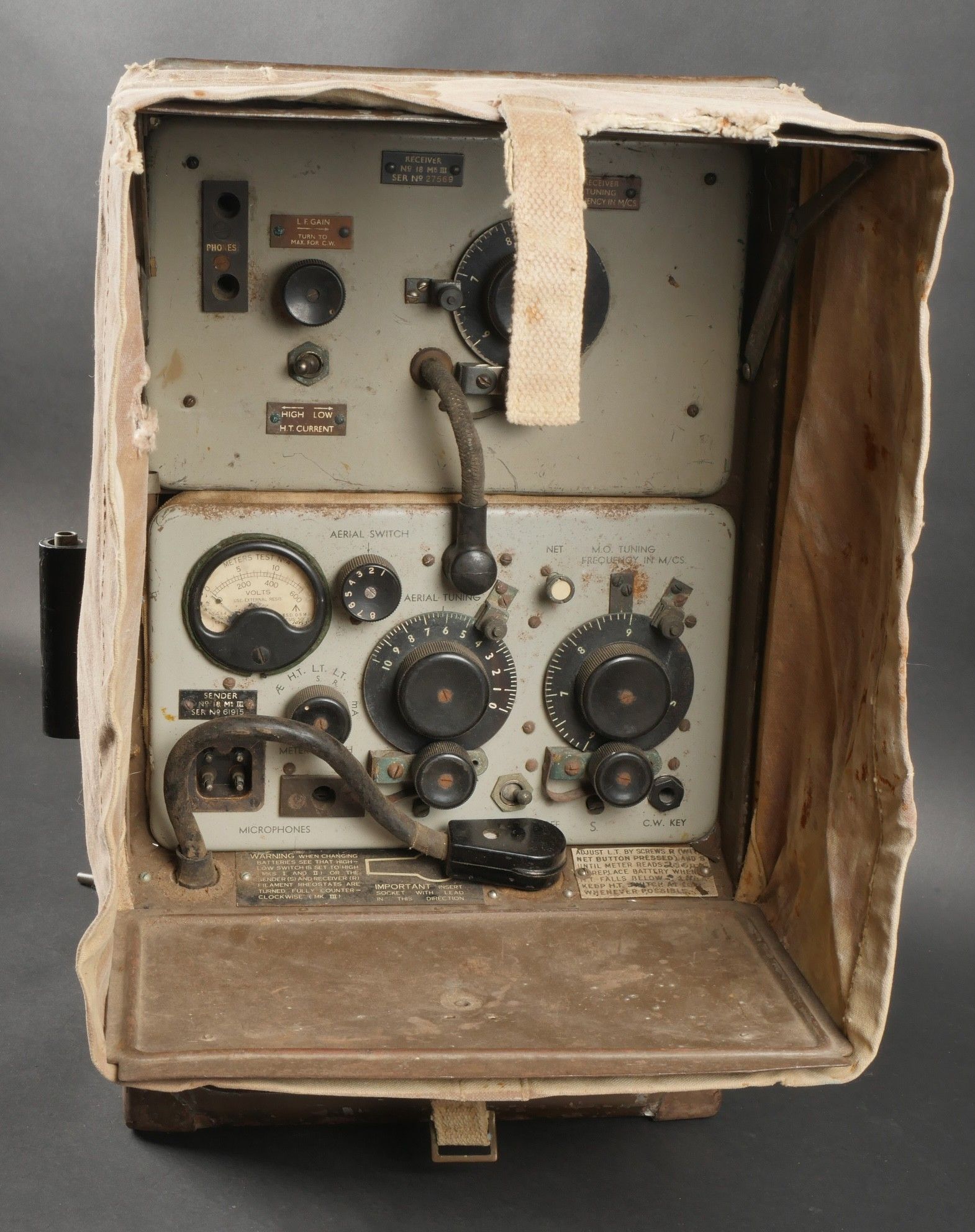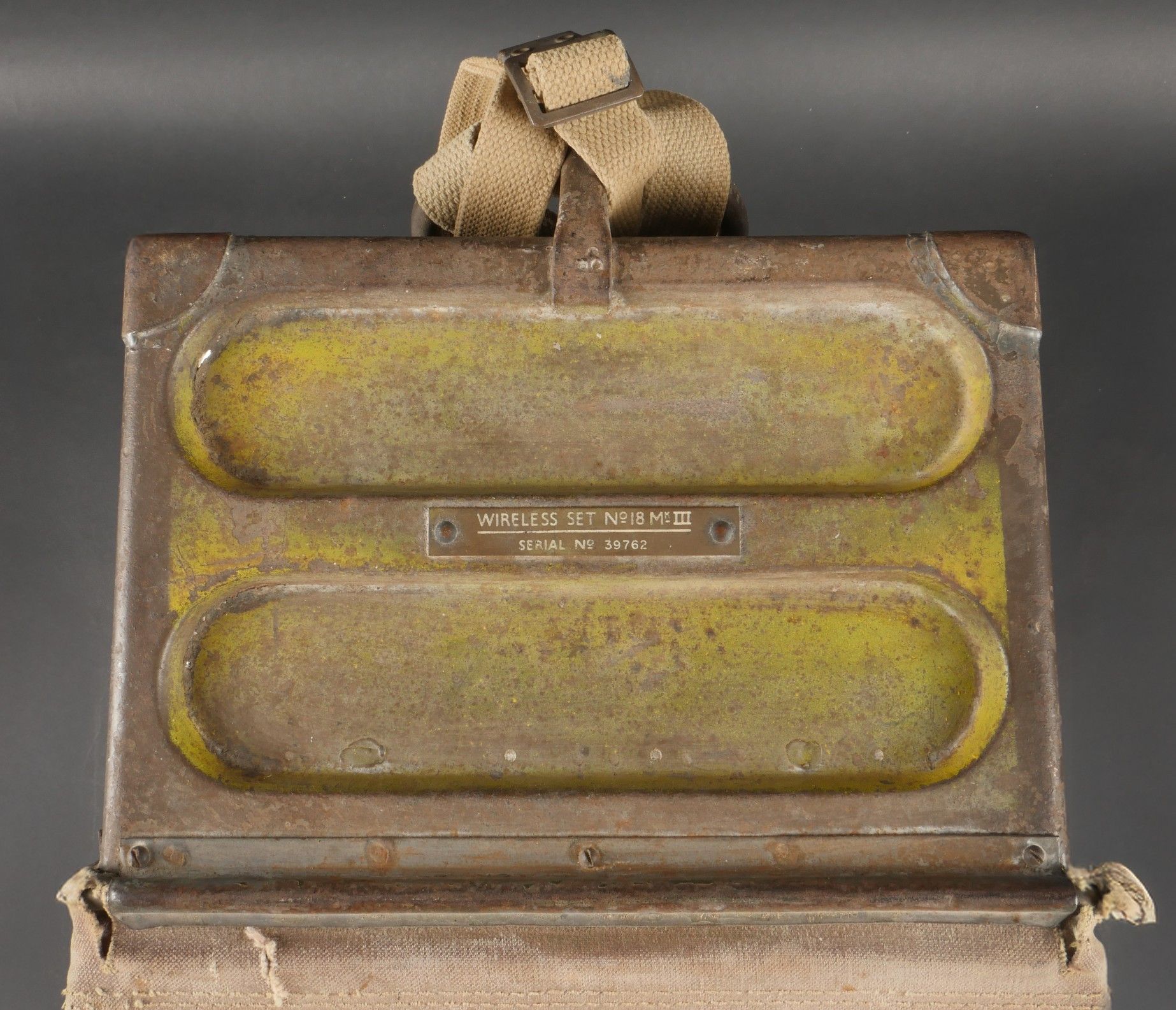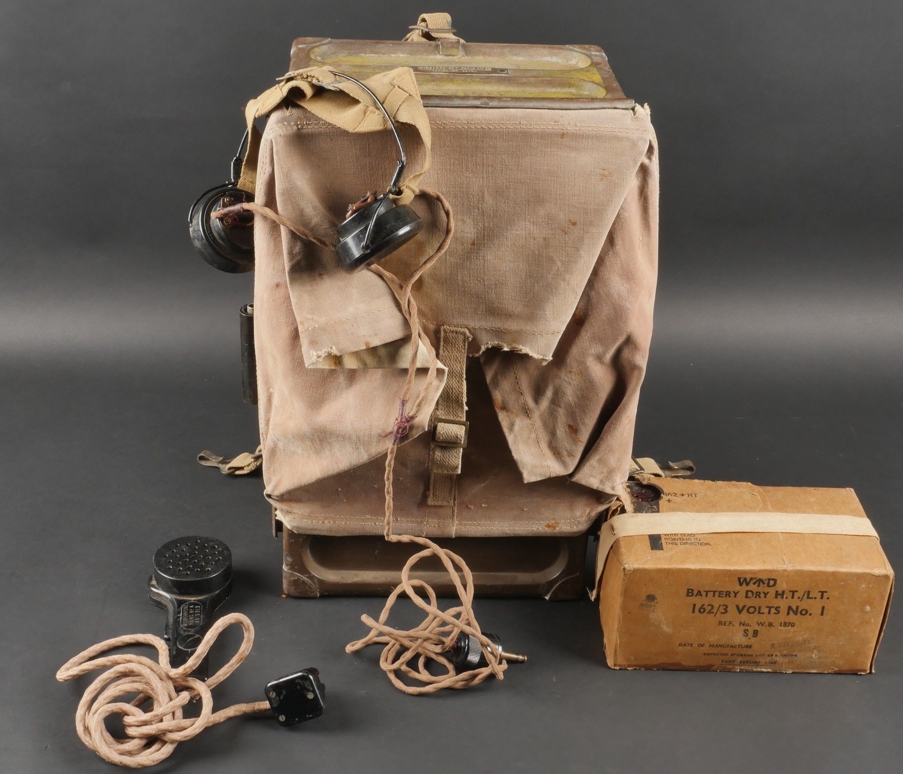 N18 MkIII transceiver. Portable wireless N18 MKIII commando transceiver, a complete set with the receiver set with all its buttons and plugs and the transmitter set with all its buttons, plugs and dial inside its metal case. The canvas cover protecting the two covers is marked MEC ZN 2192, with a functional web buckle. On the top of the case is a brass Wireless set N18 MKIII plate, serial number 39762. On the left-hand side is the antenna mounting system, consisting of five strands. Canvas carrying case, dated MEC 1943 and 1942 ZN 2170, with two original retaining pins. With its original bakelite microphone marked Microphone end N4 ZA5313, plug and cord present. DLR N5 headset, canvas part marked JFB. With battery in original box, strap damaged, box dated 21 February 1944. This item comes from Petite Raon in the Vosges where the Loyton operation was conducted by the 2nd SAS from mid-August to early October 1944 with the objective of opening the small passes ahead of the US Patton 3rd Army. 100 SAS, SOE and Jedburgh paratroopers, 6 jeeps, 1000 GMA maquisards and 1RCV took part. The seller's grandfather, an FFI Eaux et Forets then GMA Vosges, took part in this operation, which was the second largest SAS operation in occupied France, after SAMWEST in June 1944 in Brittany. He was captured by the Germans at the end of September and deported to Dachau, where he died in April 1945. When his grandmother died, the vendor recovered objects hidden or abandoned in the family farm and neighbouring houses, all linked to the maquis in the valley. It was only much later that he learned the details of Operation LOYTON. N18 MkIII transceiver. Portable wireless transceiver N18 MKIII known as commando complete set in its metal chest with the receiver inside with all knobs and plugs and the transmitter with all knobs plugs and dial. The canvas cover protecting both lids marked MEC ZN 2192 with working web buckle. On the top of the chest a brass plate Wireless set N18 MKIII serial 39762. On the left side the antenna fixing system present with five sections. Canvas carrying harness present dated MEC 1943 and 1942 ZN 2170. The two retaining pins are factory fitted. With original bakelite microphone marked Microphone end N4 ZA5313 with plug and cord. Headphones present DLR N5 with cloth parts marked JFB. With its battery in its original carton strap damaged carton dated 21 February 1944. This piece comes from Petite Raon in the Vosges where Operation Loyton by 2nd SAS took place from mid August to early October 1944 with the objective of opening small passes ahead of the US Third Army Patton. One hundred SAS SOE Jedburgh six jeeps one thousand GMA maquisards and 1 RCV took part. The seller's grandfather FFI Eaux et Forêts then GMA Vosges took part in this operation which was the second largest SAS operation in occupied France after SAMWEST in June 1944 in Brittany. He was captured by the Germans in late September and deported to Dachau where he died in April 1945. On his grandmother's death the seller recovered hidden or left items in the family farm and neighboring houses all linked to the valley Maquis and only later learned details of Operation Loyton.