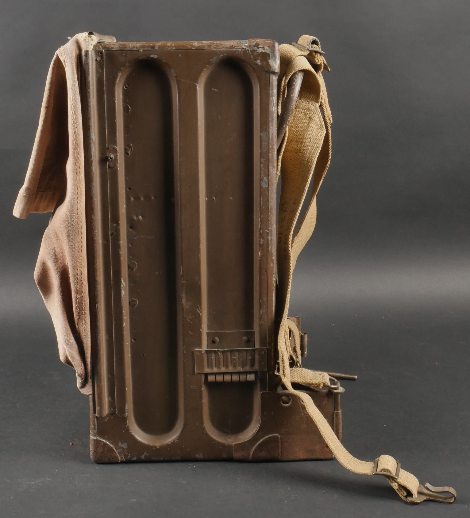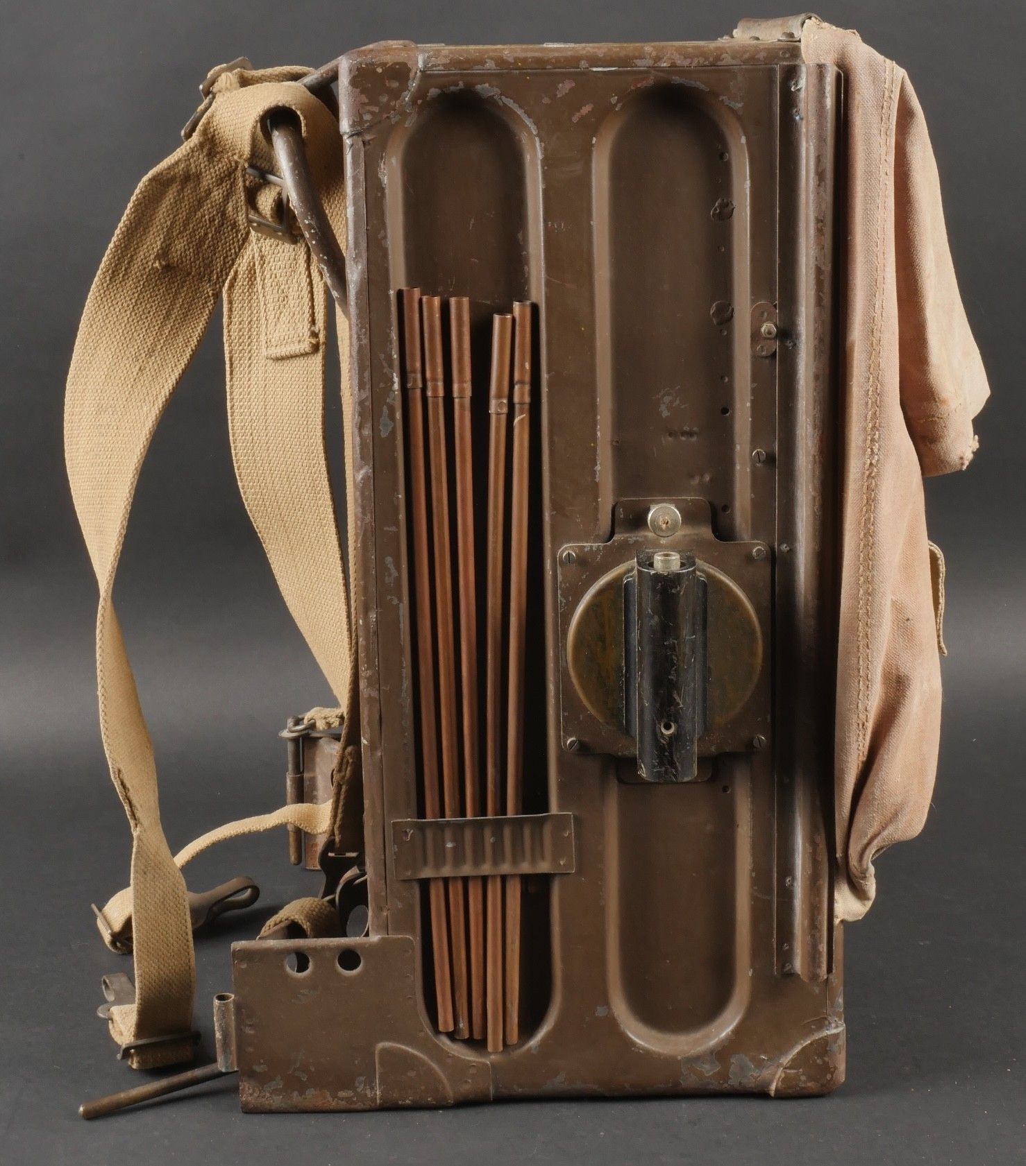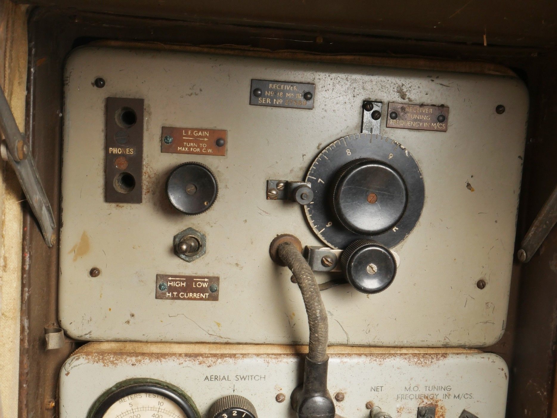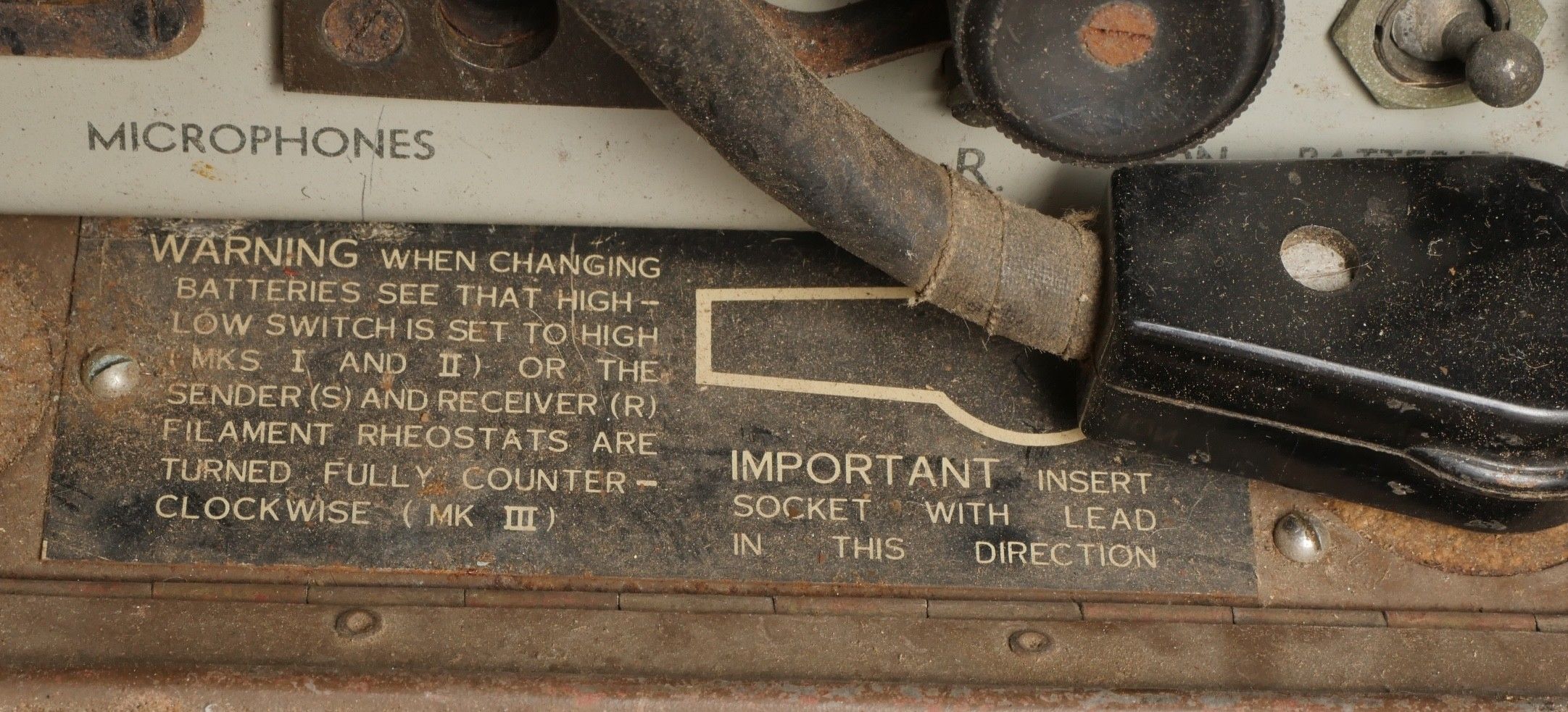 N18 MkIII transceiver. Portable wireless N18 MKIII commando transceiver, a complete set with the receiver set with all its buttons and plugs and the transmitter set with all its buttons, plugs and dial inside its metal case. The canvas cover protecting the two covers is marked MEC ZN 2192, with a functional web buckle. On the top of the case is a brass Wireless set N18 MKIII plate, serial number 39762. On the left-hand side is the antenna mounting system, consisting of five strands. Canvas carrying case, dated MEC 1943 and 1942 ZN 2170, with two original retaining pins. With its original bakelite microphone marked Microphone end N4 ZA5313, plug and cord present. DLR N5 headset, canvas part marked JFB. With battery in original box, strap damaged, box dated 21 February 1944. This item comes from Petite Raon in the Vosges where the Loyton operation was conducted by the 2nd SAS from mid-August to early October 1944 with the objective of opening the small passes ahead of the US Patton 3rd Army. 100 SAS, SOE and Jedburgh paratroopers, 6 jeeps, 1000 GMA maquisards and 1RCV took part. The seller's grandfather, an FFI Eaux et Forets then GMA Vosges, took part in this operation, which was the second largest SAS operation in occupied France, after SAMWEST in June 1944 in Brittany. He was captured by the Germans at the end of September and deported to Dachau, where he died in April 1945. When his grandmother died, the vendor recovered objects hidden or abandoned in the family farm and neighbouring houses, all linked to the maquis in the valley. It was only much later that he learned the details of Operation LOYTON. N18 MkIII transceiver. Portable wireless transceiver N18 MKIII known as commando complete set in its metal chest with the receiver inside with all knobs and plugs and the transmitter with all knobs plugs and dial. The canvas cover protecting both lids marked MEC ZN 2192 with working web buckle. On the top of the chest a brass plate Wireless set N18 MKIII serial 39762. On the left side the antenna fixing system present with five sections. Canvas carrying harness present dated MEC 1943 and 1942 ZN 2170. The two retaining pins are factory fitted. With original bakelite microphone marked Microphone end N4 ZA5313 with plug and cord. Headphones present DLR N5 with cloth parts marked JFB. With its battery in its original carton strap damaged carton dated 21 February 1944. This piece comes from Petite Raon in the Vosges where Operation Loyton by 2nd SAS took place from mid August to early October 1944 with the objective of opening small passes ahead of the US Third Army Patton. One hundred SAS SOE Jedburgh six jeeps one thousand GMA maquisards and 1 RCV took part. The seller's grandfather FFI Eaux et Forêts then GMA Vosges took part in this operation which was the second largest SAS operation in occupied France after SAMWEST in June 1944 in Brittany. He was captured by the Germans in late September and deported to Dachau where he died in April 1945. On his grandmother's death the seller recovered hidden or left items in the family farm and neighboring houses all linked to the valley Maquis and only later learned details of Operation Loyton.