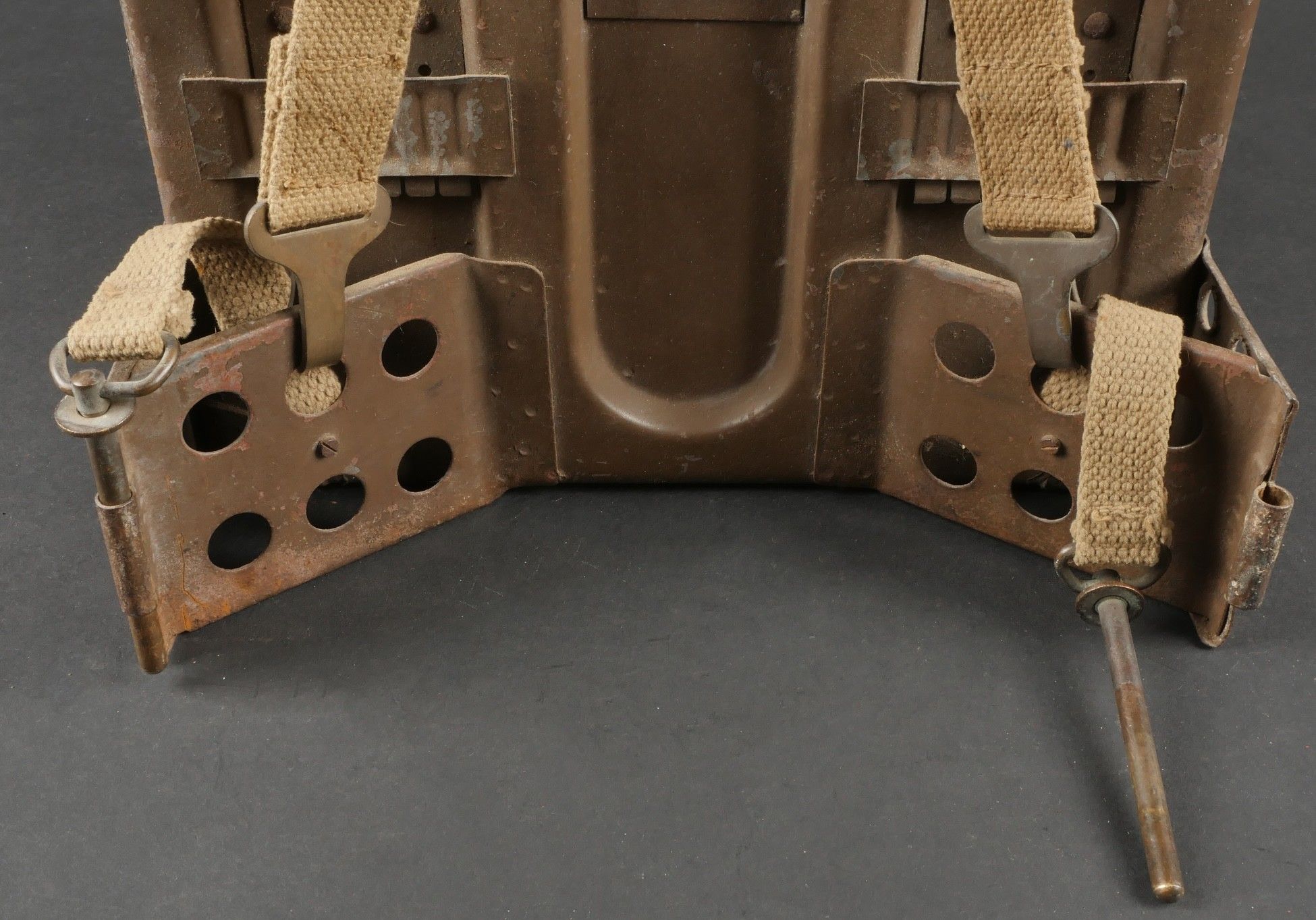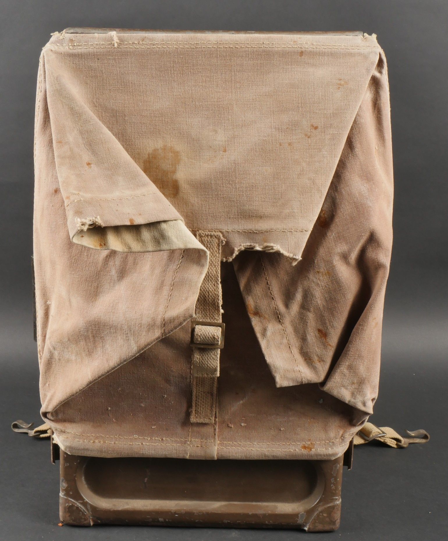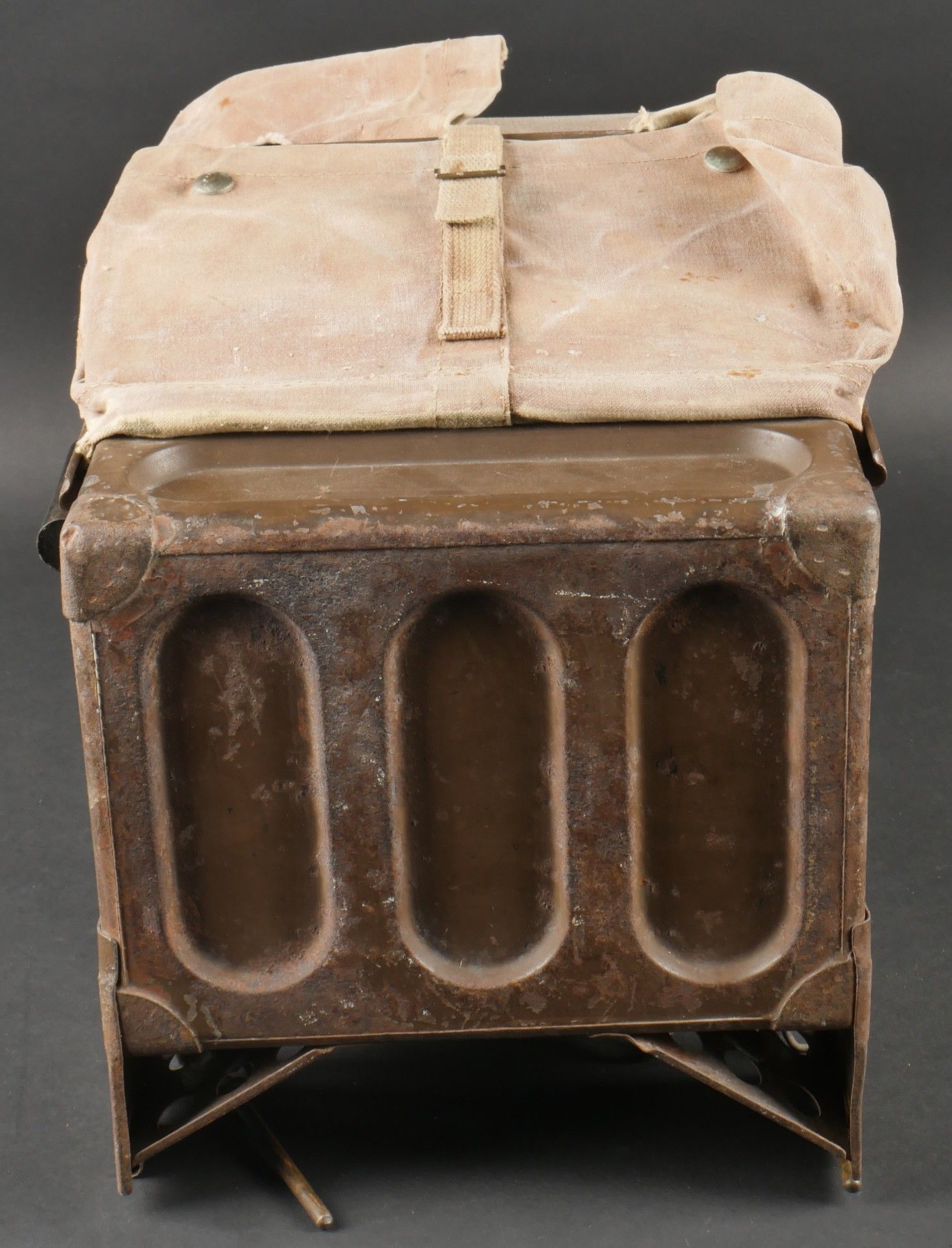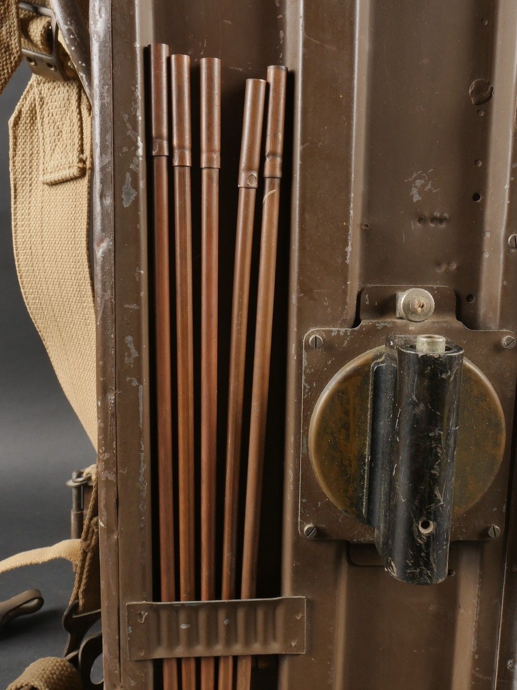 N18 MkIII transceiver. Portable wireless N18 MKIII commando transceiver, a complete set with the receiver set with all its buttons and plugs and the transmitter set with all its buttons, plugs and dial inside its metal case. The canvas cover protecting the two covers is marked MEC ZN 2192, with a functional web buckle. On the top of the case is a brass Wireless set N18 MKIII plate, serial number 39762. On the left-hand side is the antenna mounting system, consisting of five strands. Canvas carrying case, dated MEC 1943 and 1942 ZN 2170, with two original retaining pins. With its original bakelite microphone marked Microphone end N4 ZA5313, plug and cord present. DLR N5 headset, canvas part marked JFB. With battery in original box, strap damaged, box dated 21 February 1944. This item comes from Petite Raon in the Vosges where the Loyton operation was conducted by the 2nd SAS from mid-August to early October 1944 with the objective of opening the small passes ahead of the US Patton 3rd Army. 100 SAS, SOE and Jedburgh paratroopers, 6 jeeps, 1000 GMA maquisards and 1RCV took part. The seller's grandfather, an FFI Eaux et Forets then GMA Vosges, took part in this operation, which was the second largest SAS operation in occupied France, after SAMWEST in June 1944 in Brittany. He was captured by the Germans at the end of September and deported to Dachau, where he died in April 1945. When his grandmother died, the vendor recovered objects hidden or abandoned in the family farm and neighbouring houses, all linked to the maquis in the valley. It was only much later that he learned the details of Operation LOYTON. N18 MkIII transceiver. Portable wireless transceiver N18 MKIII known as commando complete set in its metal chest with the receiver inside with all knobs and plugs and the transmitter with all knobs plugs and dial. The canvas cover protecting both lids marked MEC ZN 2192 with working web buckle. On the top of the chest a brass plate Wireless set N18 MKIII serial 39762. On the left side the antenna fixing system present with five sections. Canvas carrying harness present dated MEC 1943 and 1942 ZN 2170. The two retaining pins are factory fitted. With original bakelite microphone marked Microphone end N4 ZA5313 with plug and cord. Headphones present DLR N5 with cloth parts marked JFB. With its battery in its original carton strap damaged carton dated 21 February 1944. This piece comes from Petite Raon in the Vosges where Operation Loyton by 2nd SAS took place from mid August to early October 1944 with the objective of opening small passes ahead of the US Third Army Patton. One hundred SAS SOE Jedburgh six jeeps one thousand GMA maquisards and 1 RCV took part. The seller's grandfather FFI Eaux et Forêts then GMA Vosges took part in this operation which was the second largest SAS operation in occupied France after SAMWEST in June 1944 in Brittany. He was captured by the Germans in late September and deported to Dachau where he died in April 1945. On his grandmother's death the seller recovered hidden or left items in the family farm and neighboring houses all linked to the valley Maquis and only later learned details of Operation Loyton.