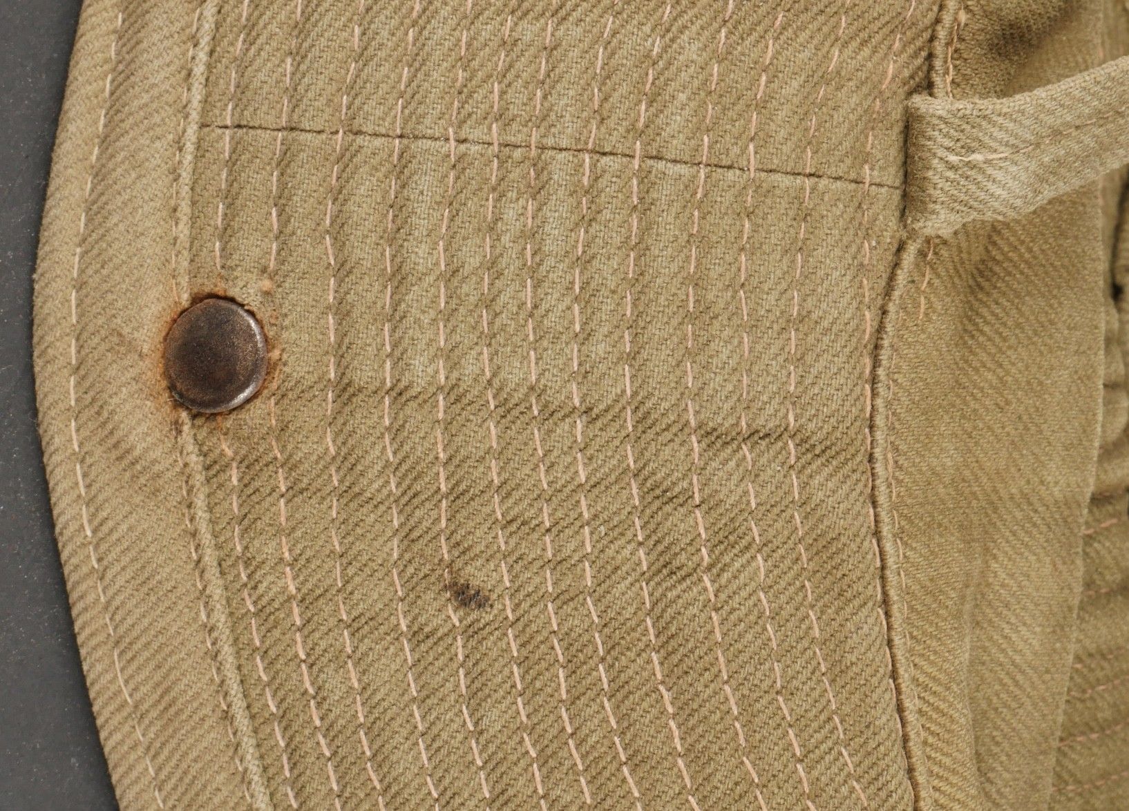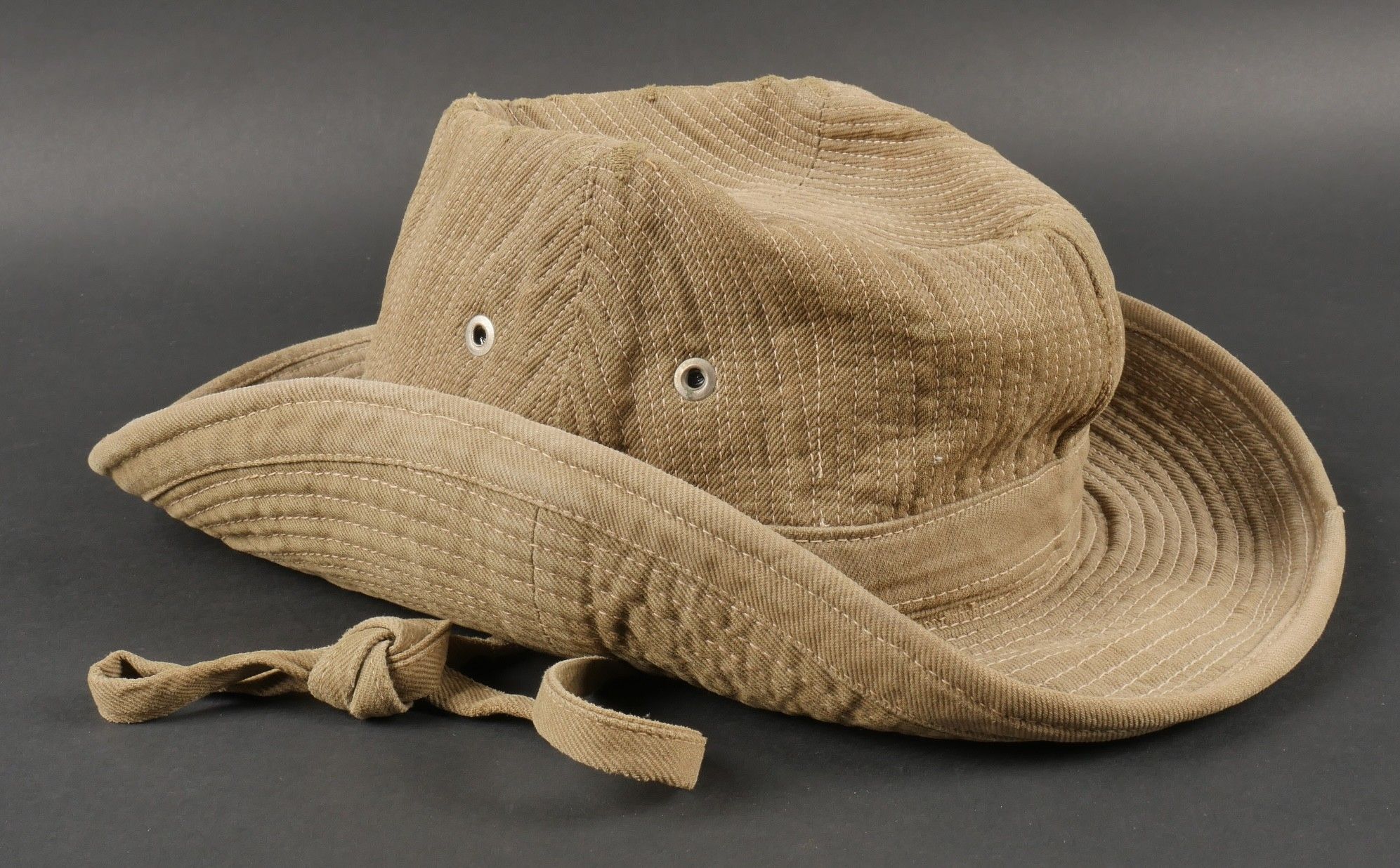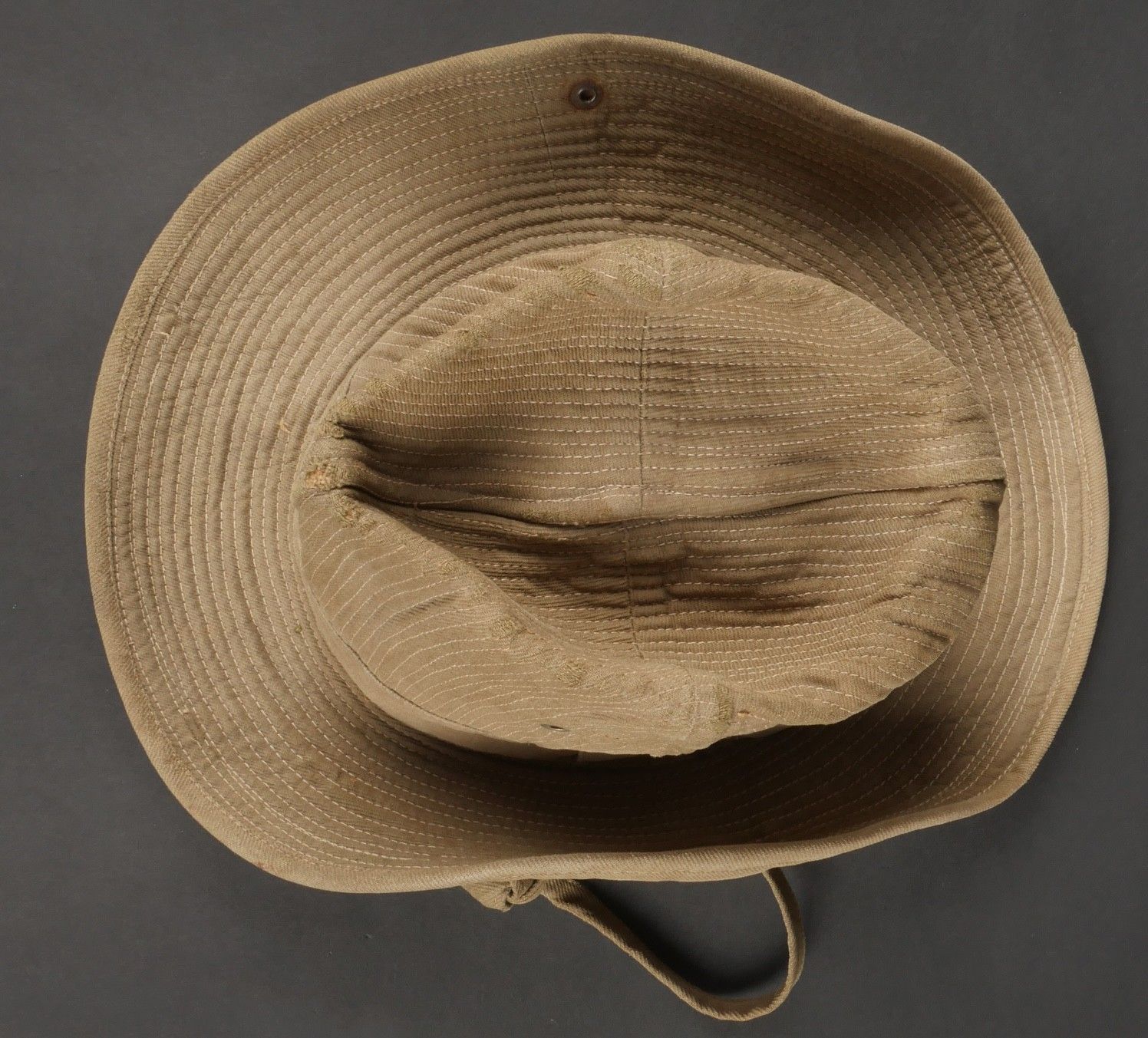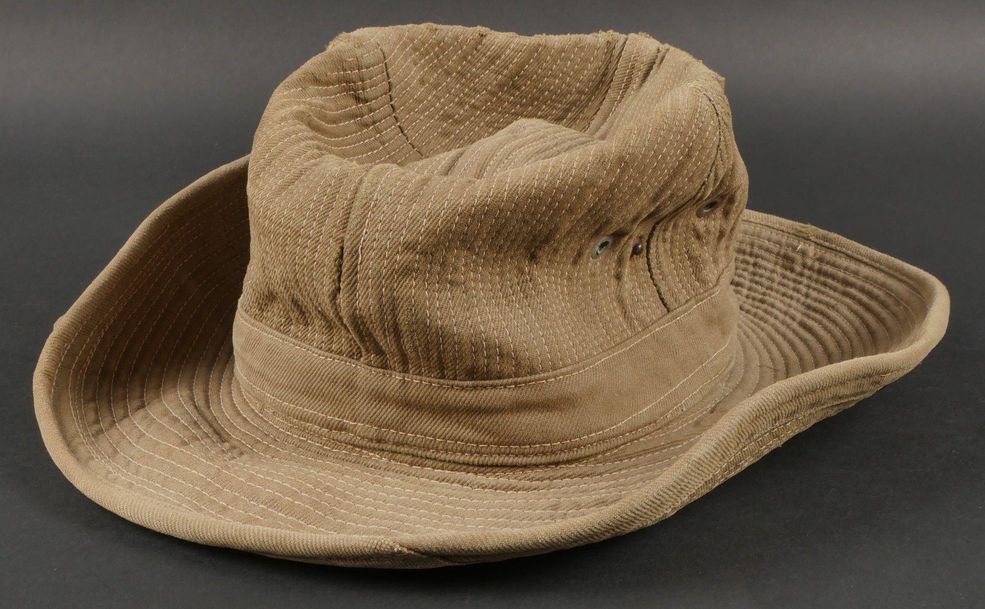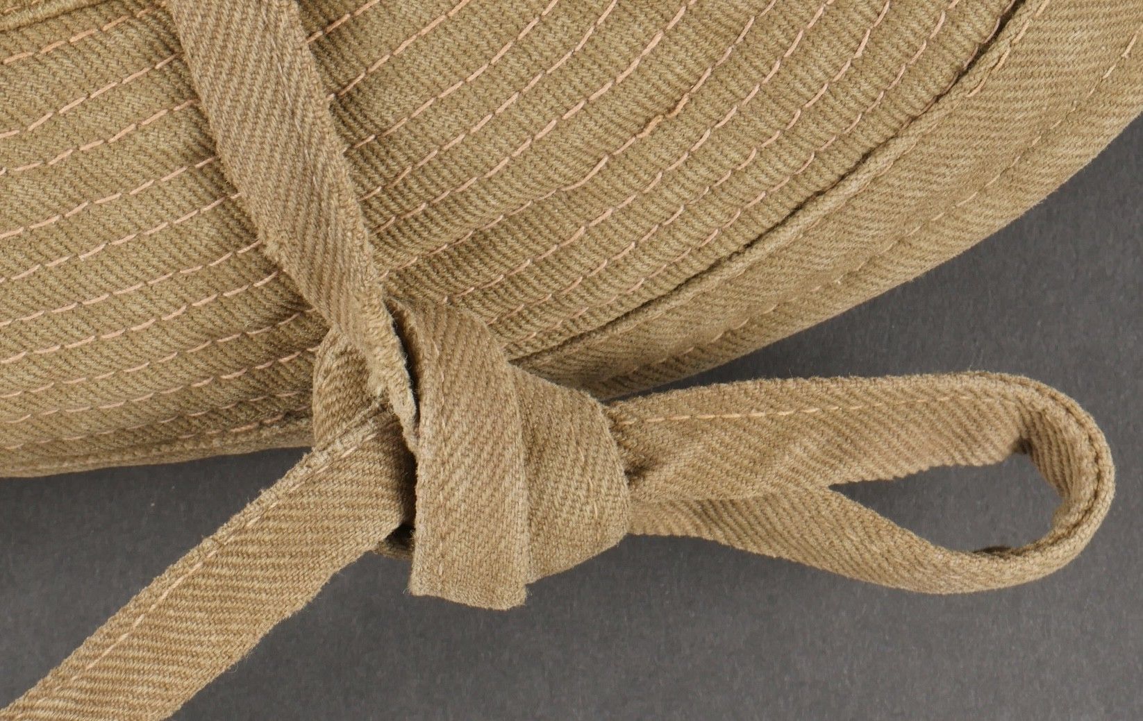 2nd Muong outfit. This set belonged to Chief Szymanski of the 2nd Muong Battalion and includes his locally made Far East bush hat, small snap model, made of strong khaki canvas, complete with chinstrap. Traditional Muong belt in its original length in green woollen cloth. 2nd Muong set. Set belonging to Chief Szymanski of the 2nd Muong Battalion including his locally made Far East bush hat small press stud type in strong khaki canvas complete with chinstrap and his traditional Muong belt of original length in green wool cloth.