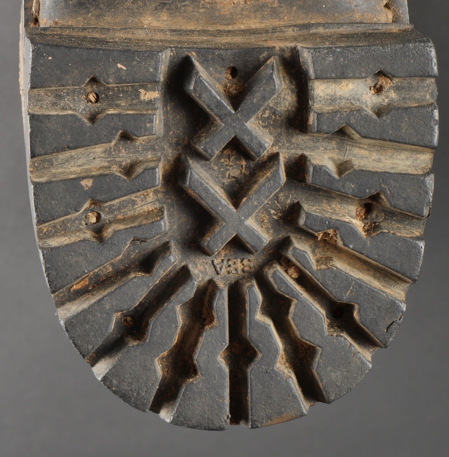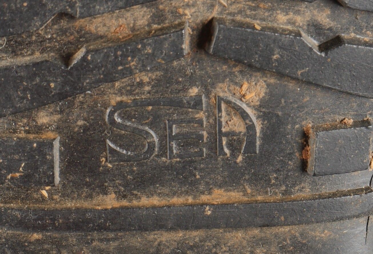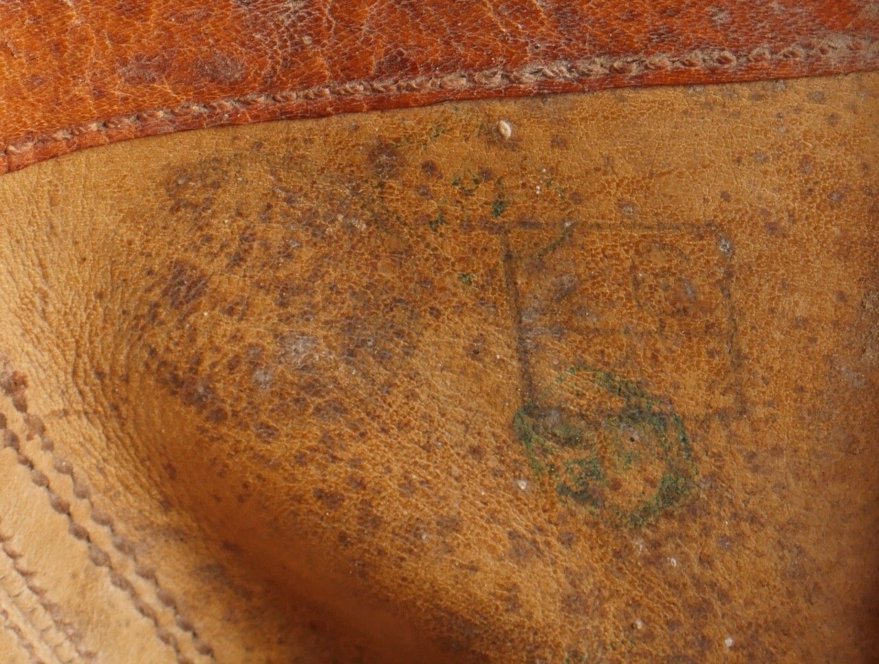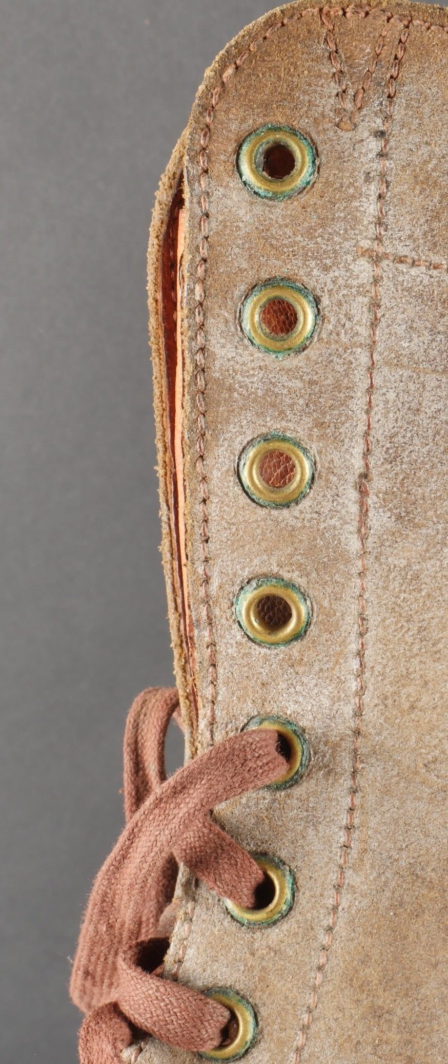 Pair of TAP 50 jump boots dated 1954. Belledonne SEA sewn rubber soles. Stamps on inner sole indicate size 264 and date 154. All eyelets are present. Pair never worn as new from stock. Pair of TAP 50 jump boots dated 1954. Rubber sole stitched marked Belledonne SEA. Insole stamps size 26 4 and date 1 54. Numerous inspection stamps inside both boots. All eyelets present. Unworn mint stock pair.