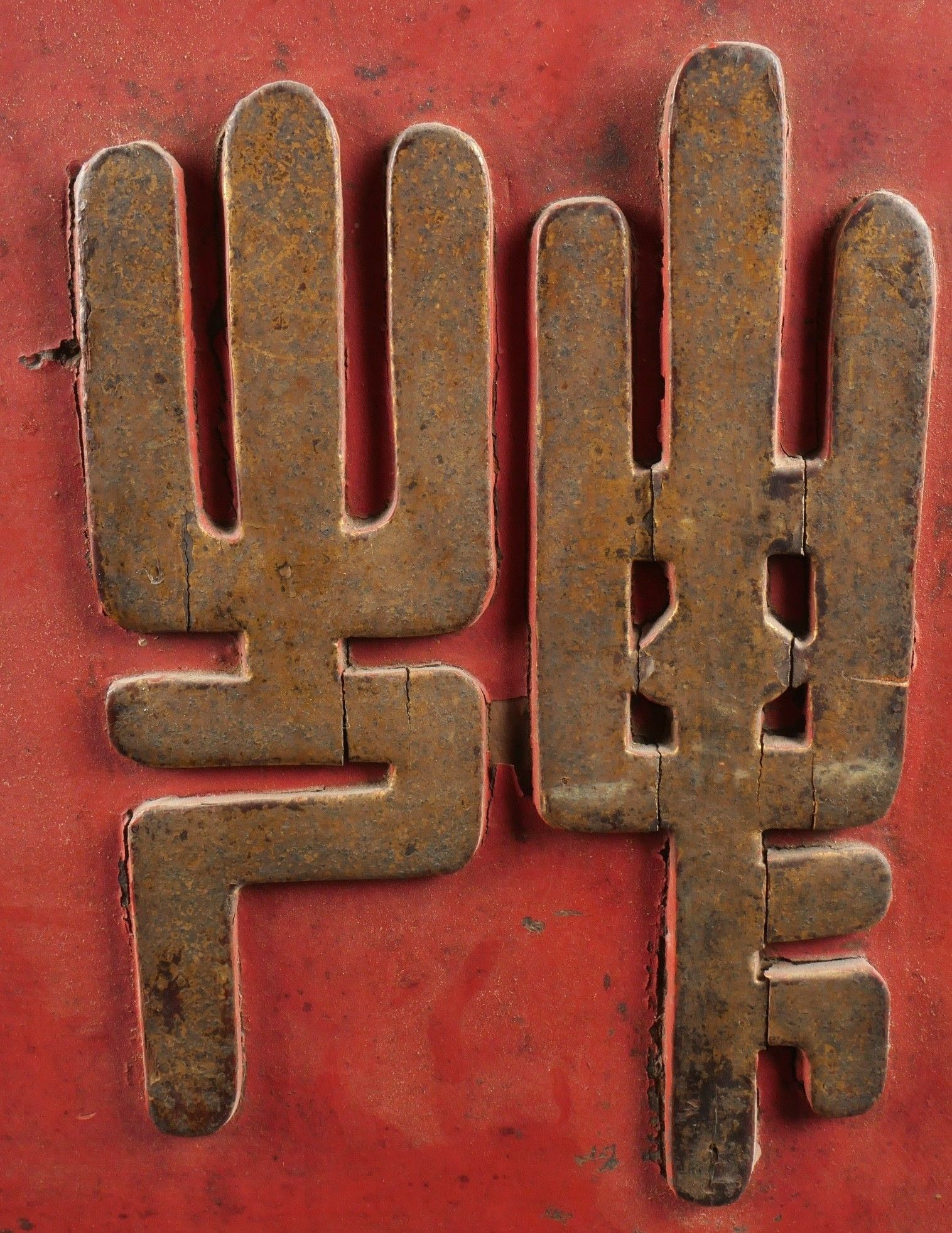 Indochinese shop sign. Made of exotic wood, painted red, let…