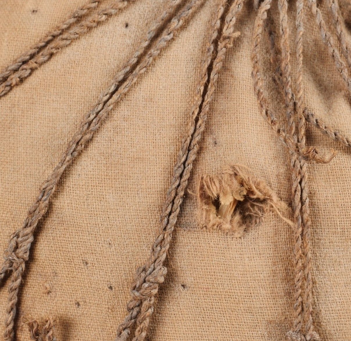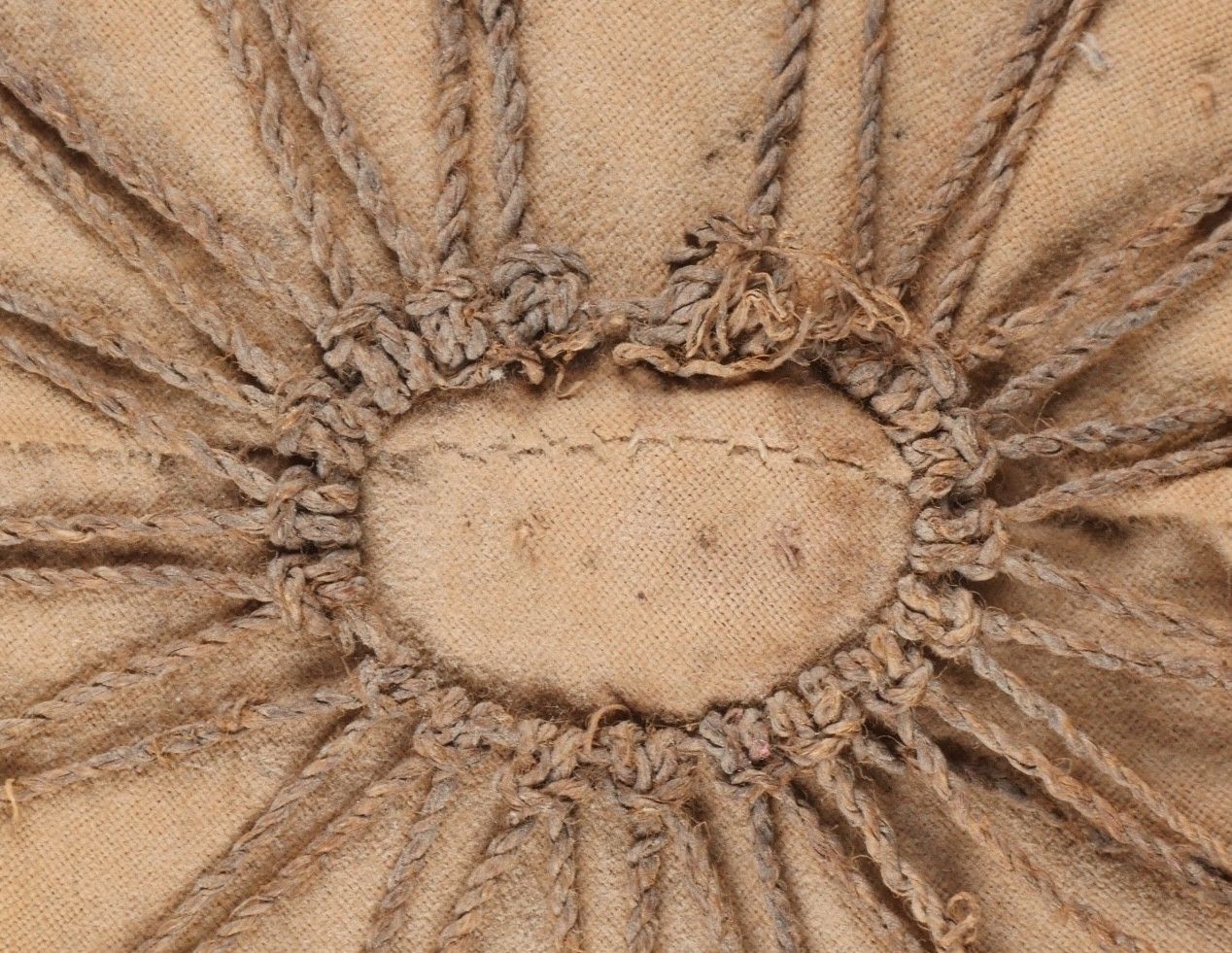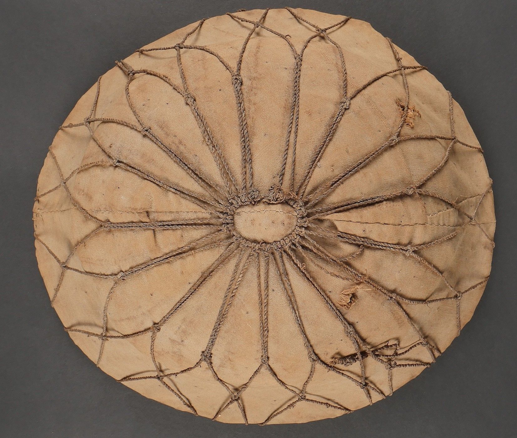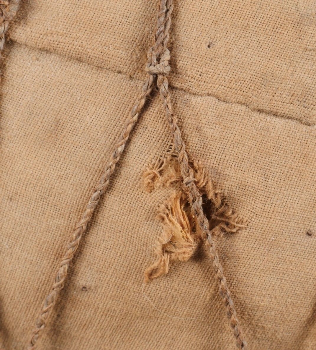 Vietminh impact helmet. Helmet made of woven rice straw covered with khaki canvas and Japanese netting. Small leather chinstrap, the whole has been pierced by a bullet and still has traces of blood inside. It bears the inscription Côloâ 2 1953. This helmet was brought back by nurse Denise Chanut, who served in Indochina. Viet Minh helmet with impact. Helmet made of woven rice straw covered with khaki cloth and Japanese netting. Small leather chinstrap. Pierced by a projectile with blood traces inside. Inscription reads Côloâ 2 1953. Brought back by nurse Denise Chanut who served in Indochina.