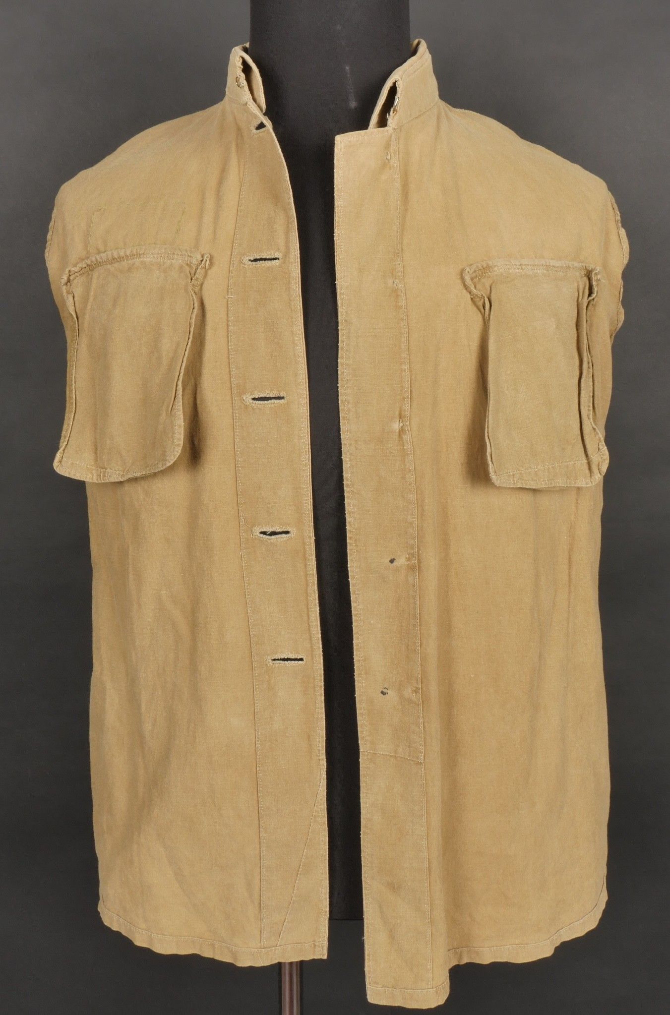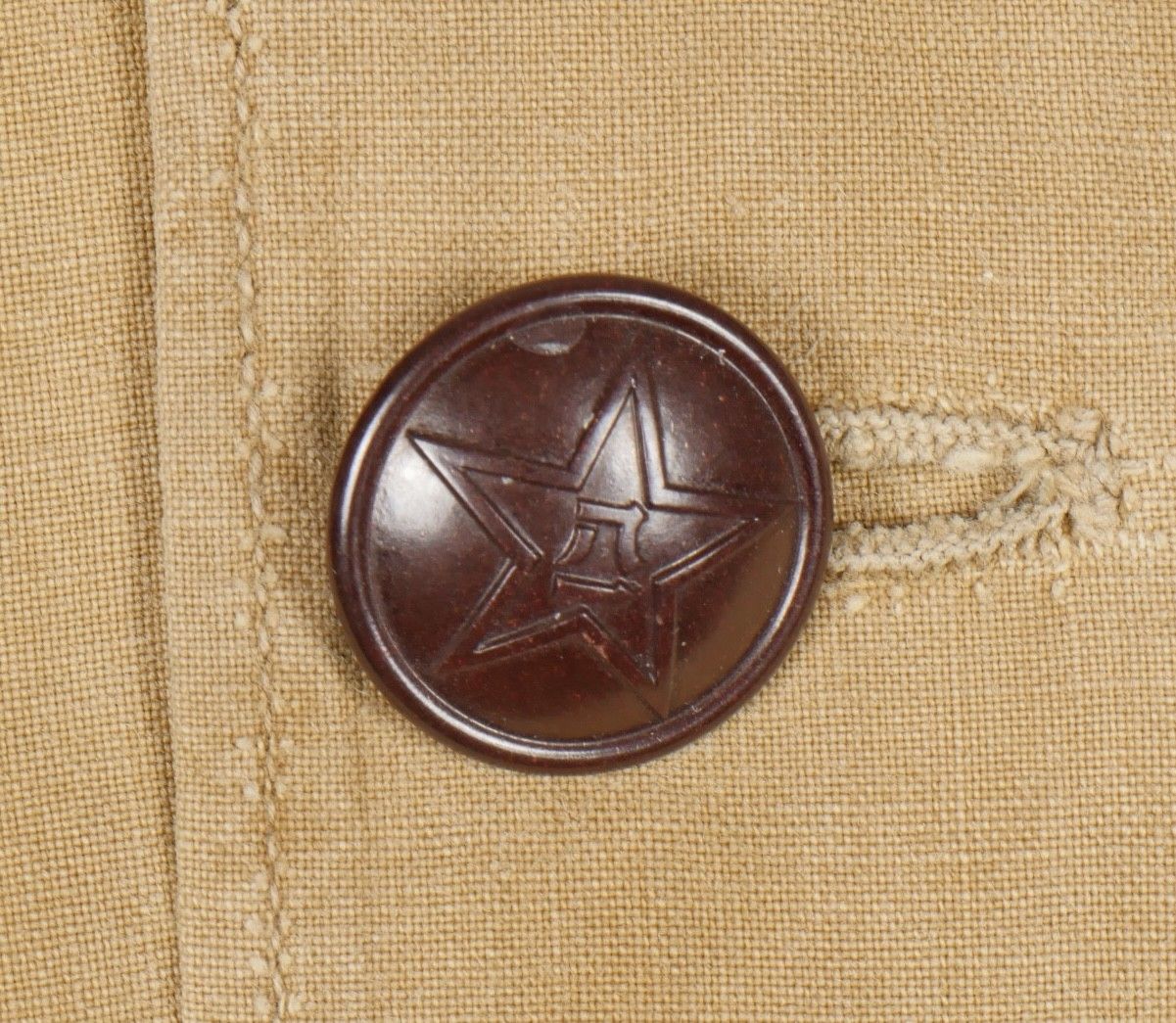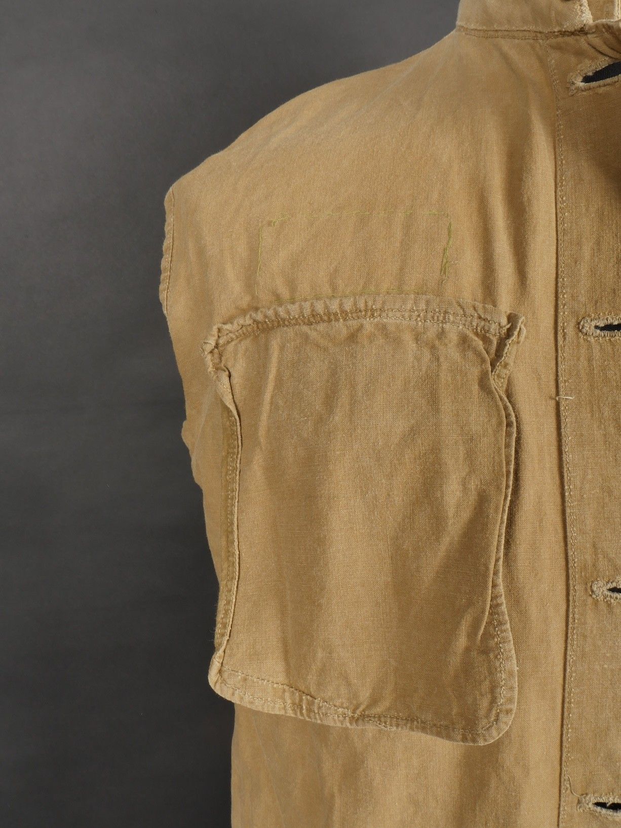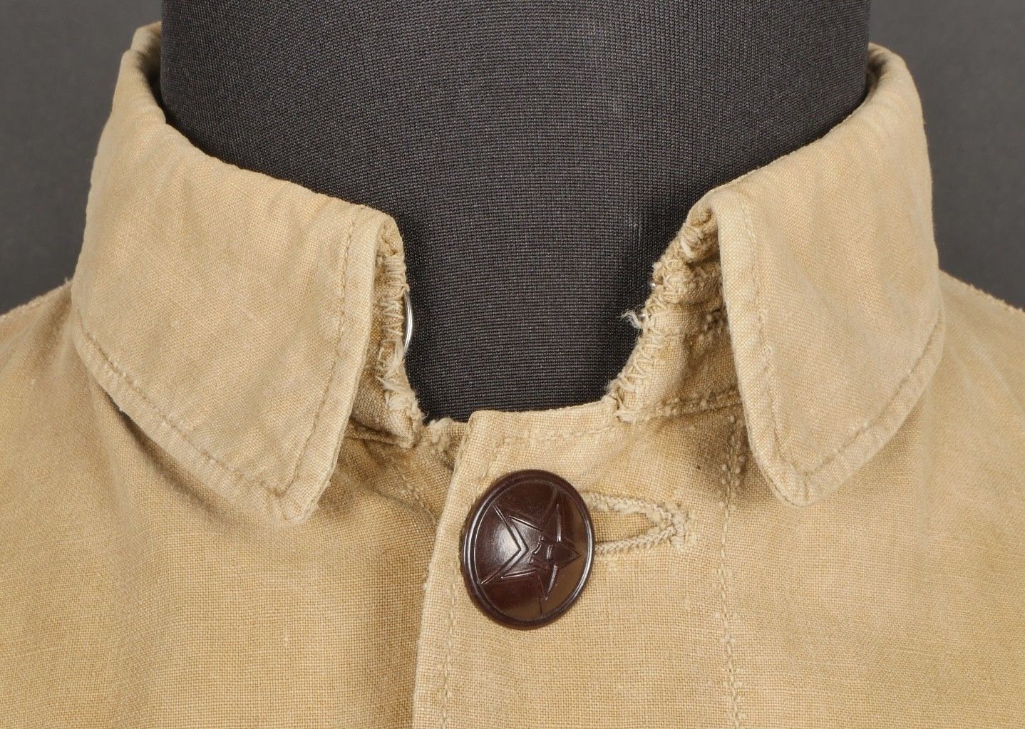 Chinese people's volunteer shirt. Troop shirt with two pockets and five Chinese army buttons. Original sewn-on canvas patch above left breast pocket. Chinese People's Volunteer shirt. Soldier's shirt with two pockets closing with five Chinese Army buttons. Original cloth insignia sewn above the left breast pocket.