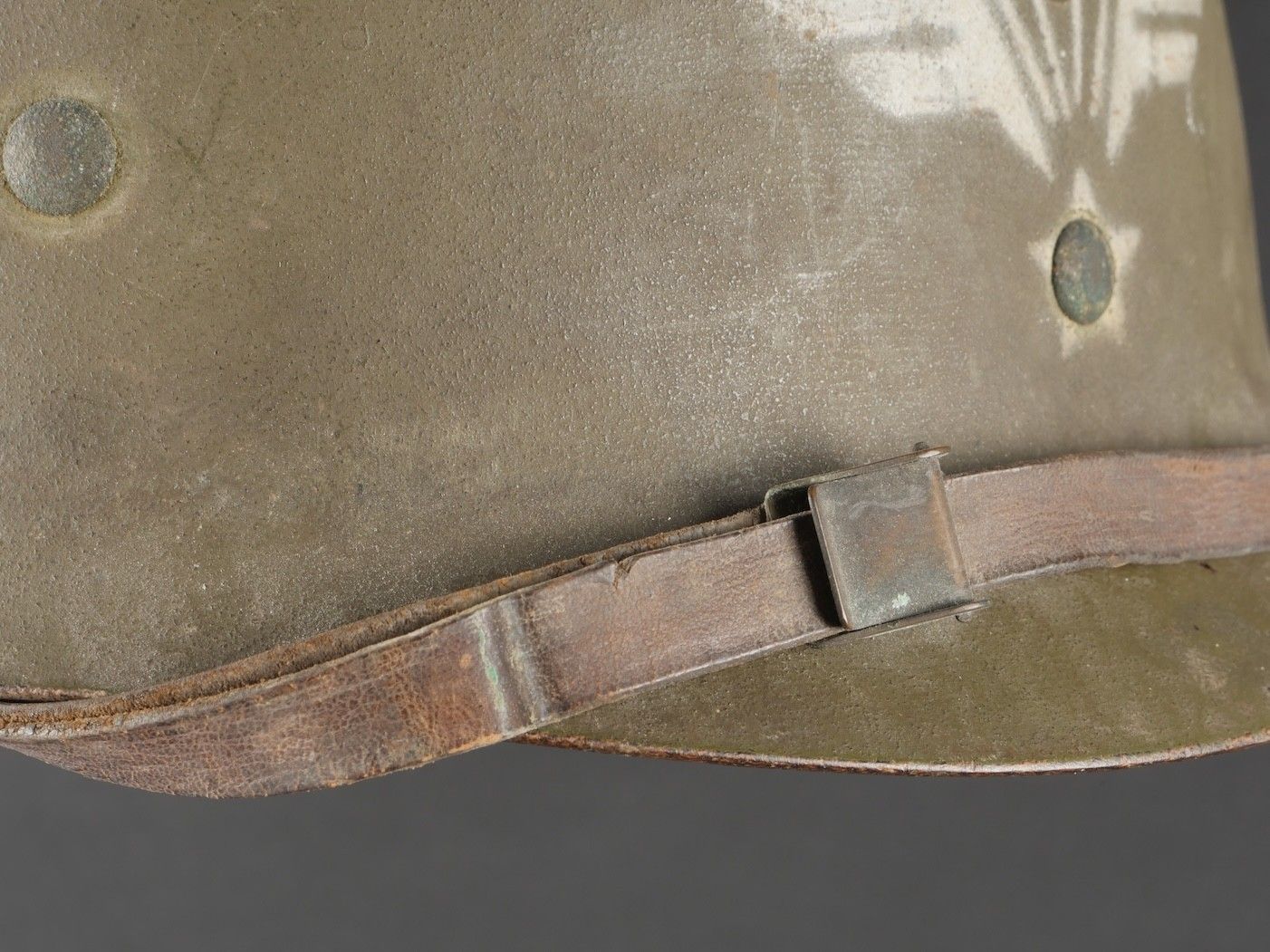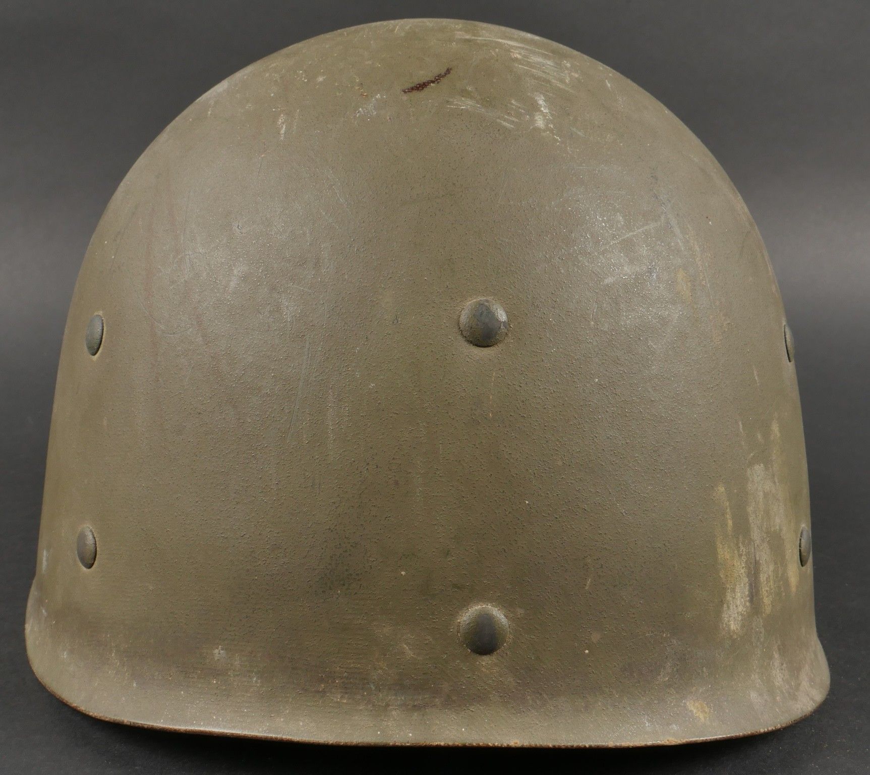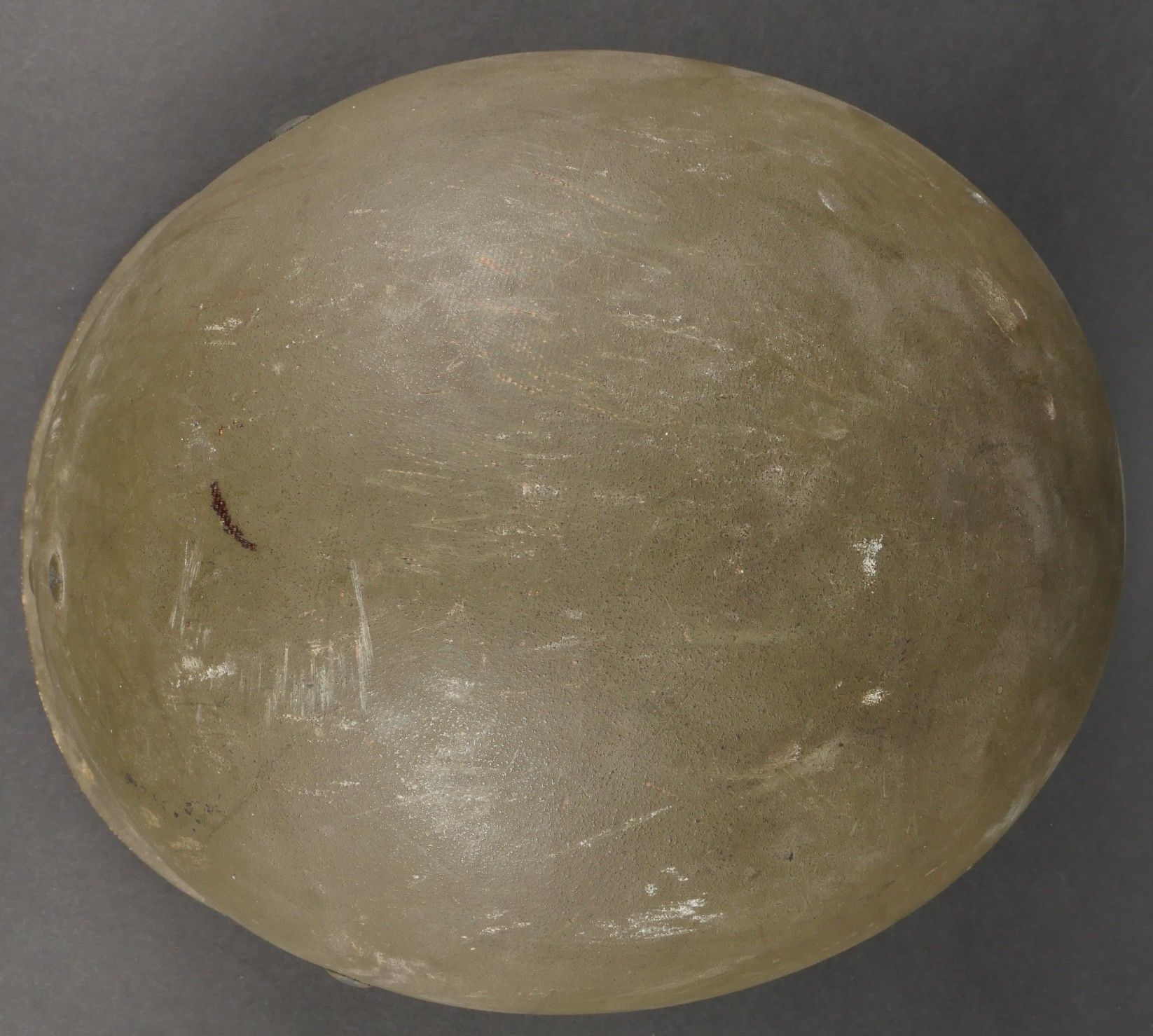 American M1 under-helmet, manufactured by Firestone, with the general insignia of the Parachute Units stenciled in white paint on the front. The under-helmet still has its factory paintwork. Leather headband present with a missing clip, small chinstrap present, neck band missing, period headband tightening lace replaced. This helmet belonged to Captain Constantini, a former French commando who served with the 2nd Shock Battalion and then the 5 REI. US M1 liner by Firestone bearing at front the general airborne insignia stencil in white paint retaining original factory finish. Leather band present with one missing clip small chinstrap intact neckband missing drawcord replaced period correct. Belonged to Captain Constantini former Commando de France later 2nd Shock Battalion and 5th REI.