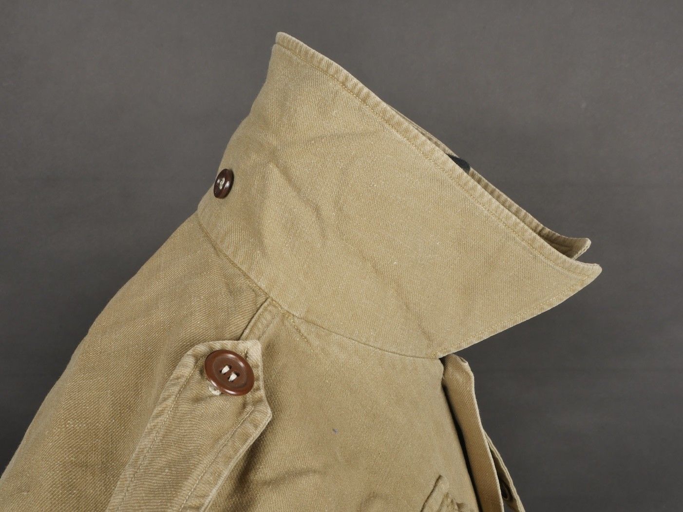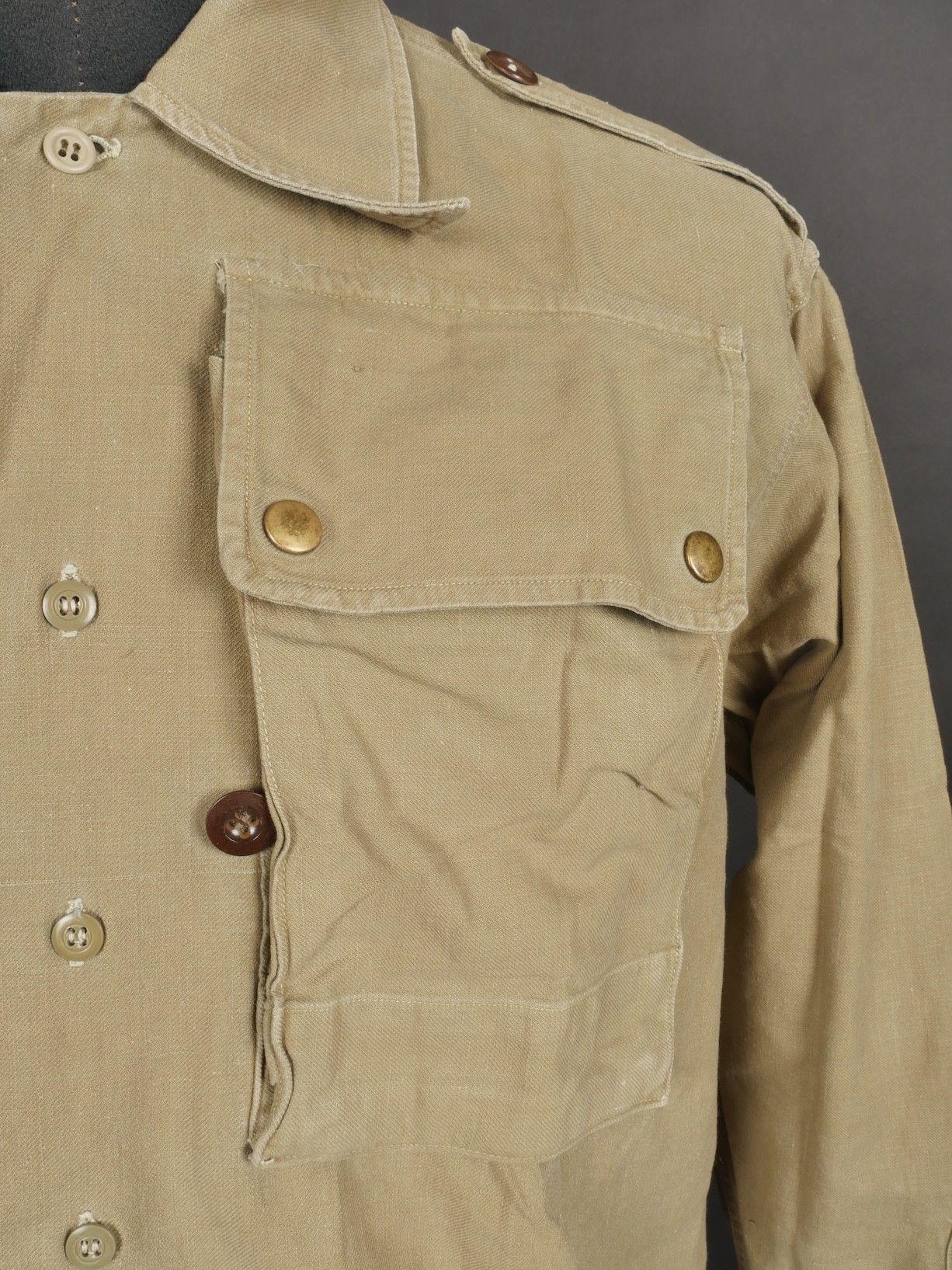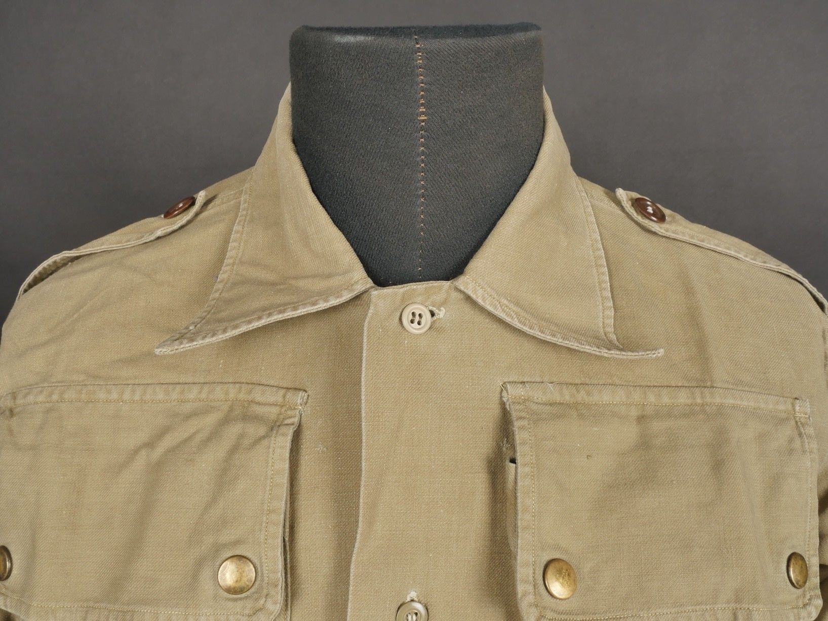 Jump shirt. Made of khaki canvas, with two breast pockets th…