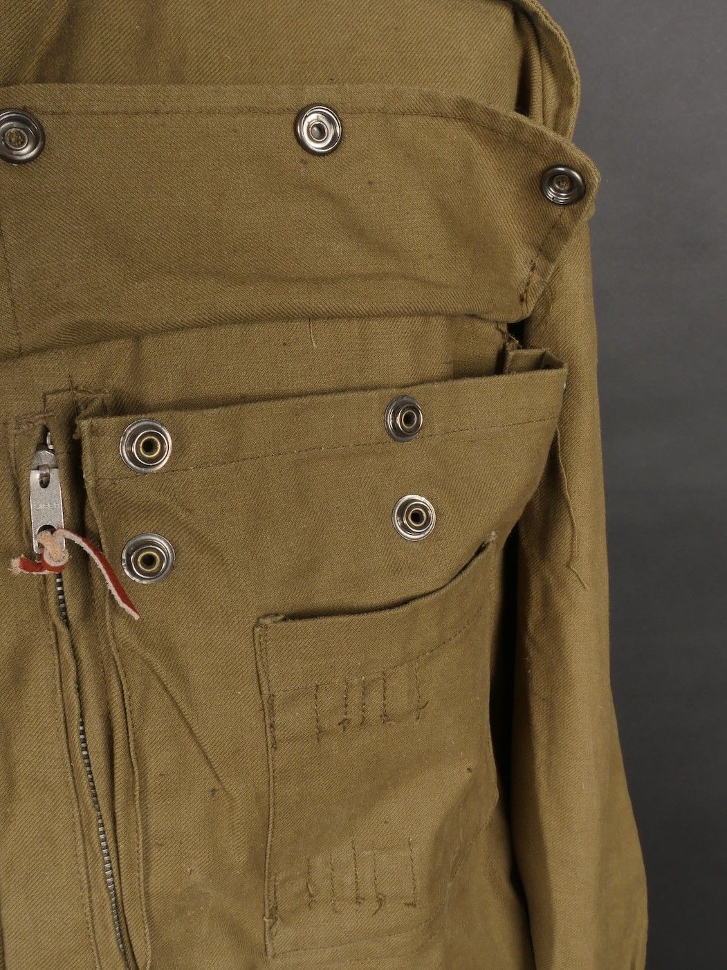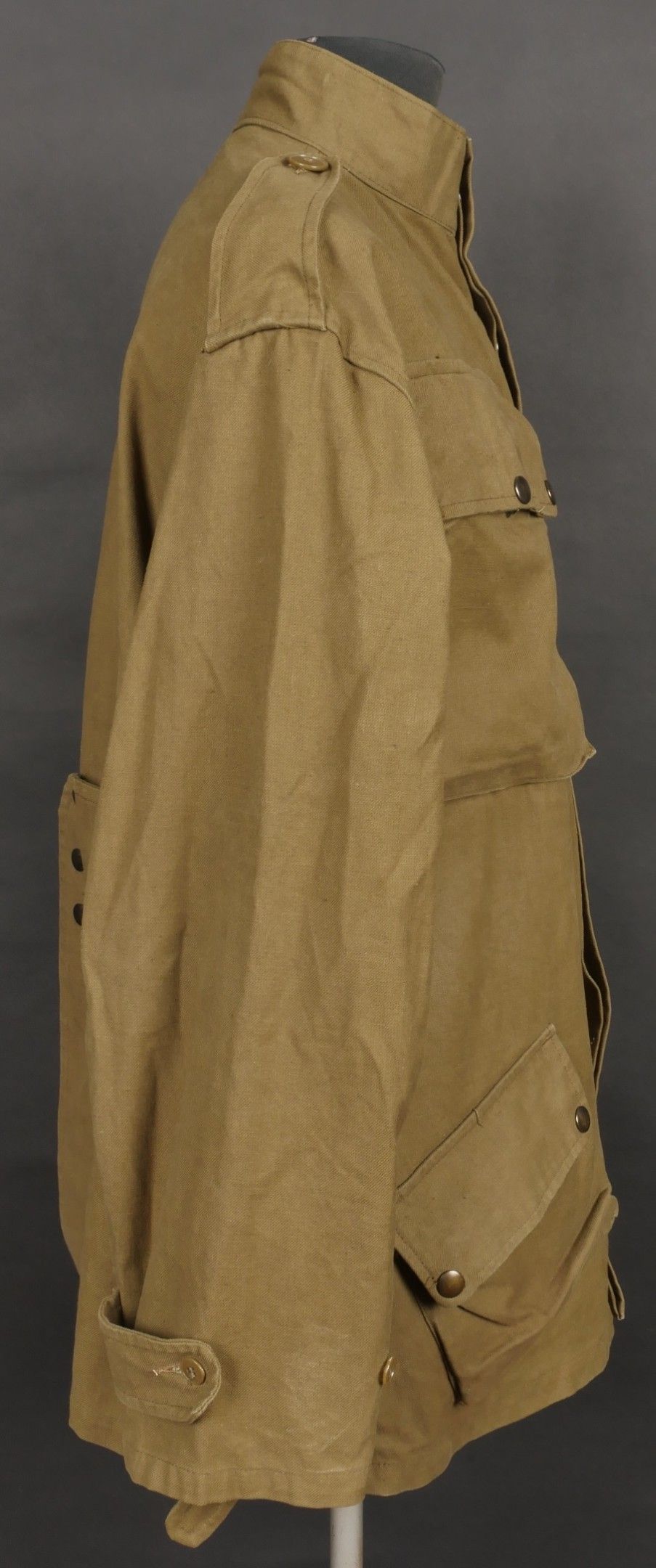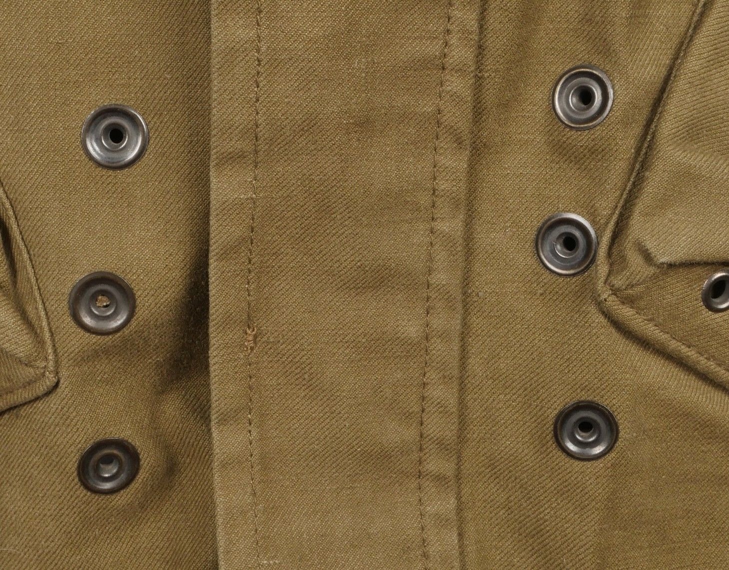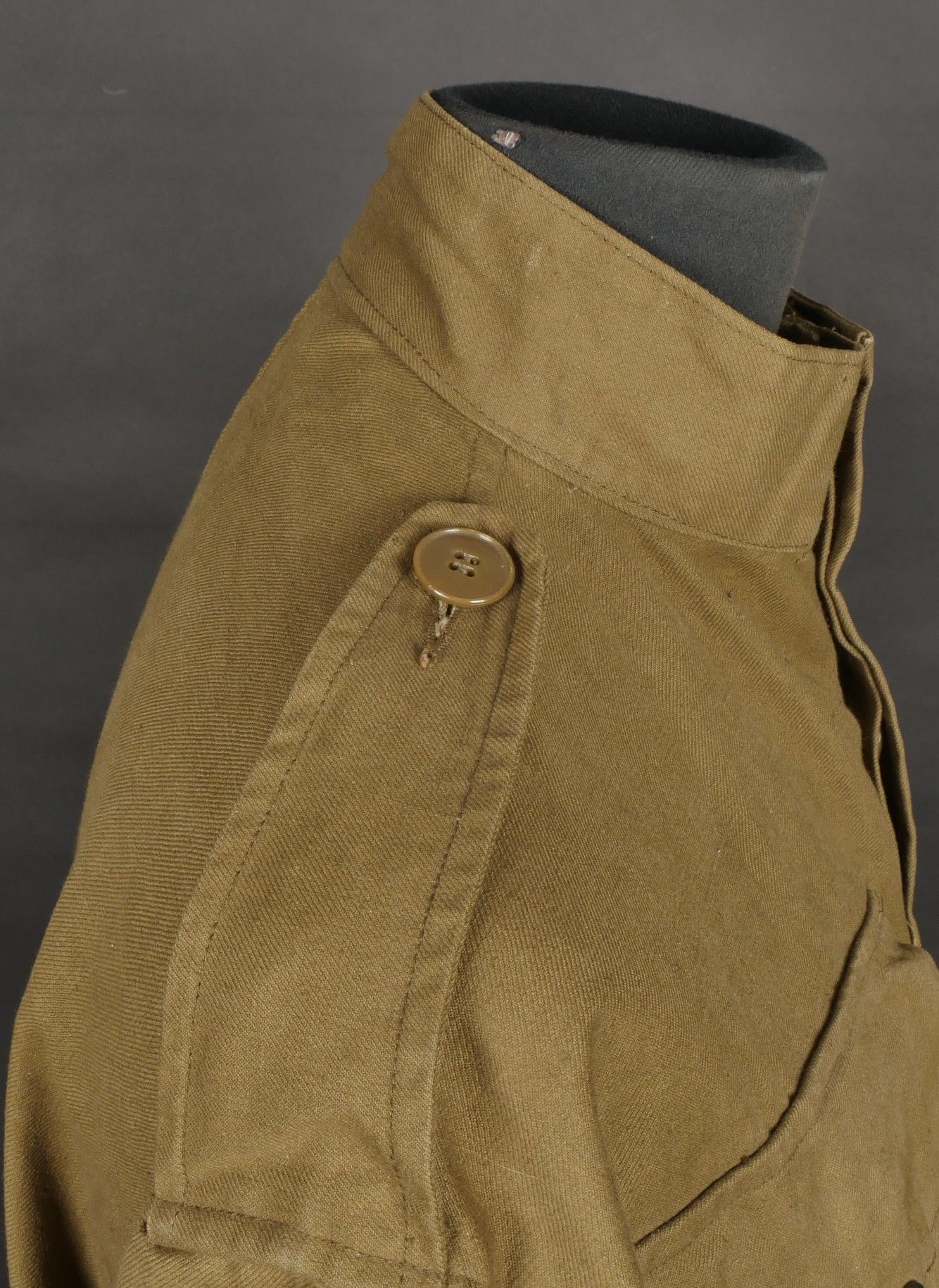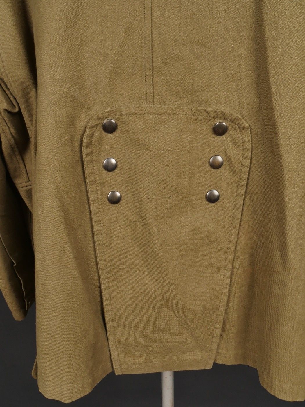 TAP 4753 jacket. Jacket in mint condition, made of khaki cotton and fastened with eight buttons and a functional Sifer zip. Manufacturer's markings on collar, size 32, receipt stamp present but not very legible. Original stitched beavertail. TAP 4753 jacket mint cotton khaki closing with eight buttons and functional Sifer zipper maker mark at collar partly illegible size 32 acceptance stamp faint beavertail sewn original.