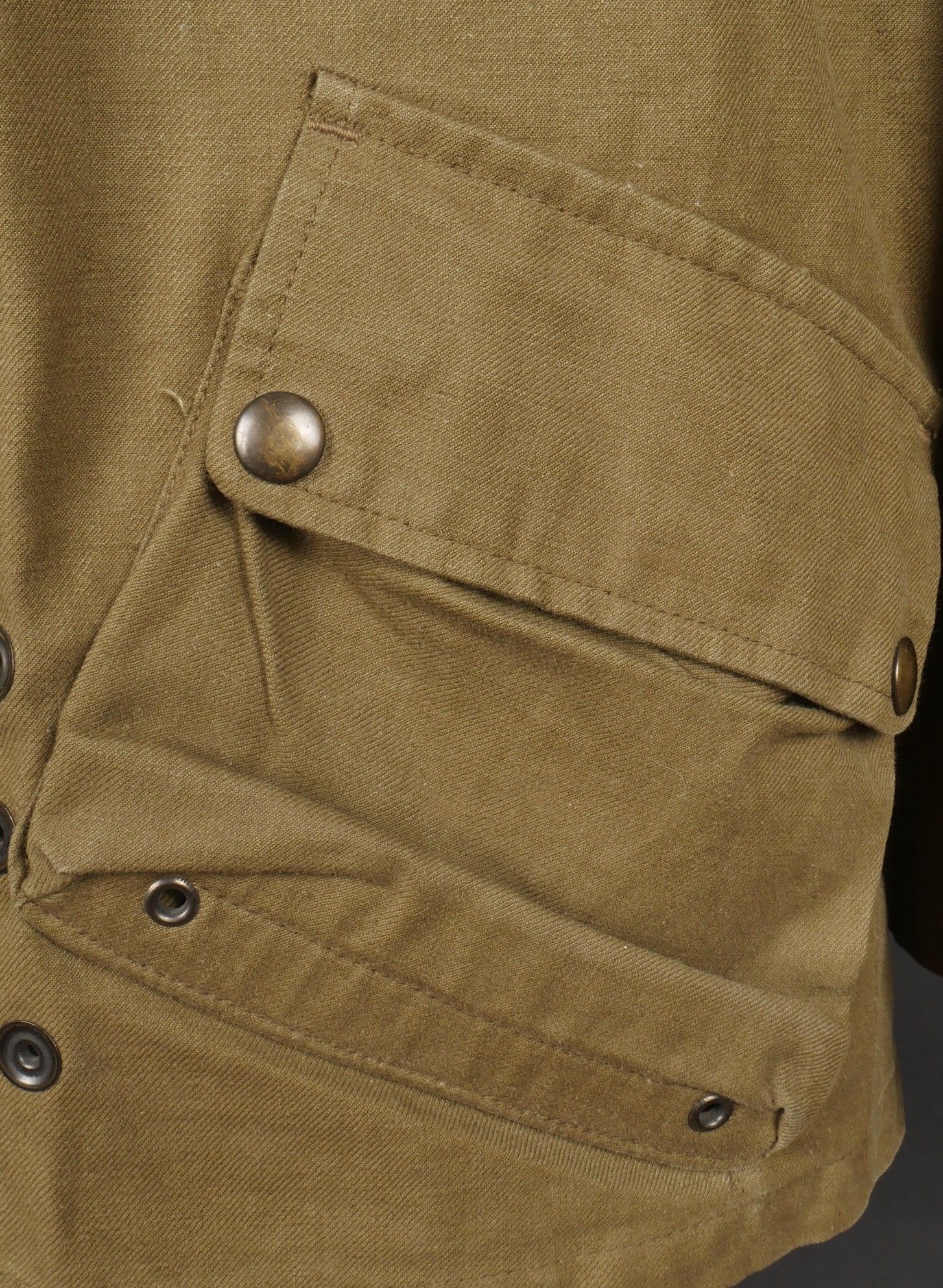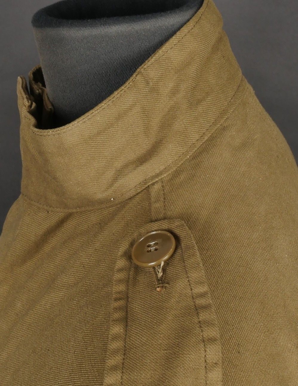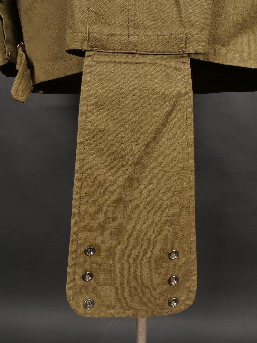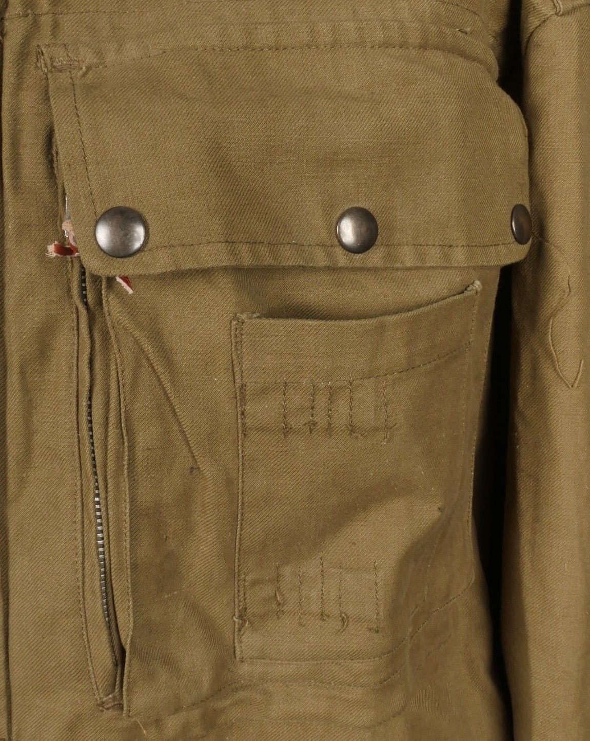 TAP 4753 jacket. Jacket in mint condition, made of khaki cotton and fastened with eight buttons and a functional Sifer zip. Manufacturer's markings on collar, size 32, receipt stamp present but not very legible. Original stitched beavertail. TAP 4753 jacket mint cotton khaki closing with eight buttons and functional Sifer zipper maker mark at collar partly illegible size 32 acceptance stamp faint beavertail sewn original.