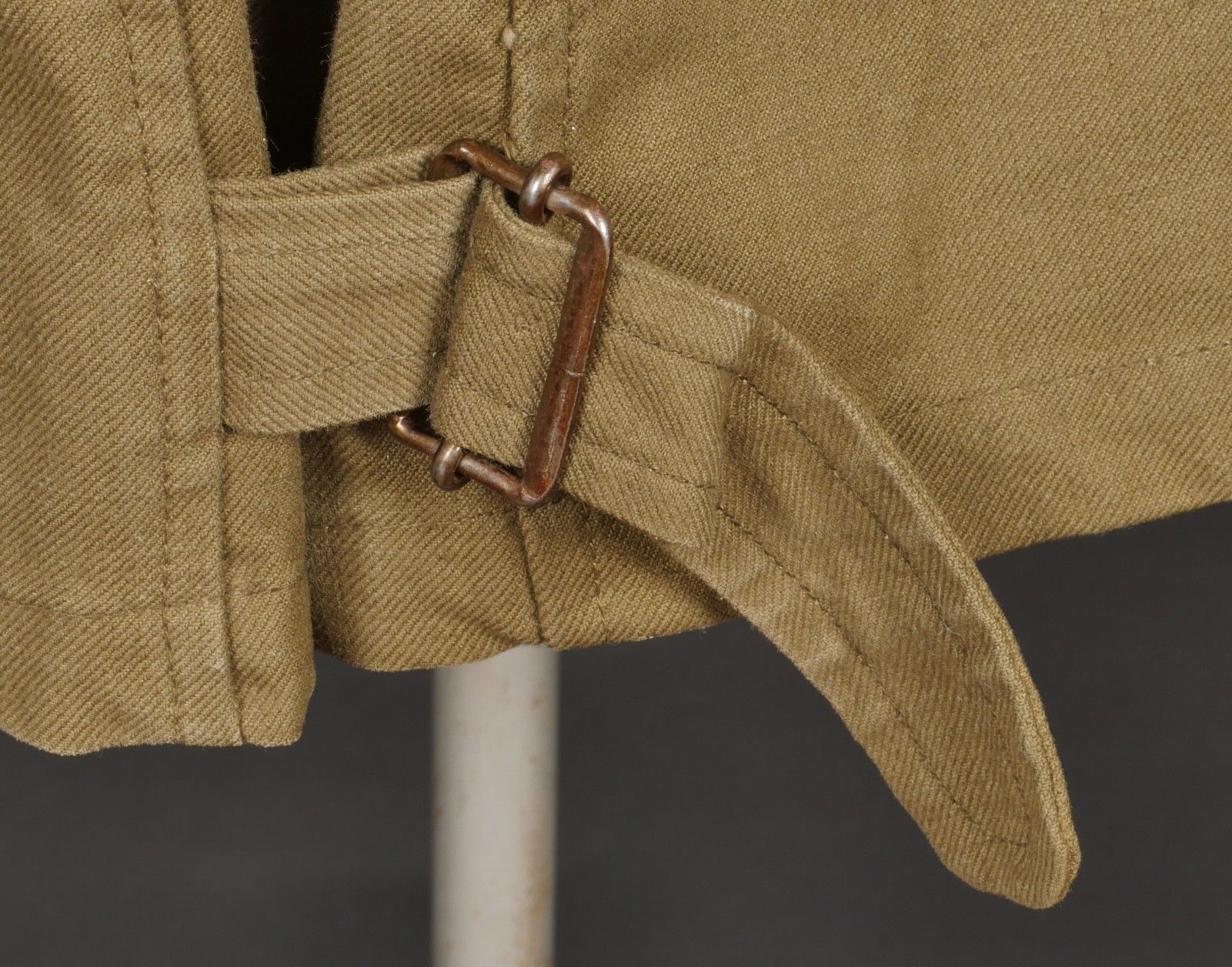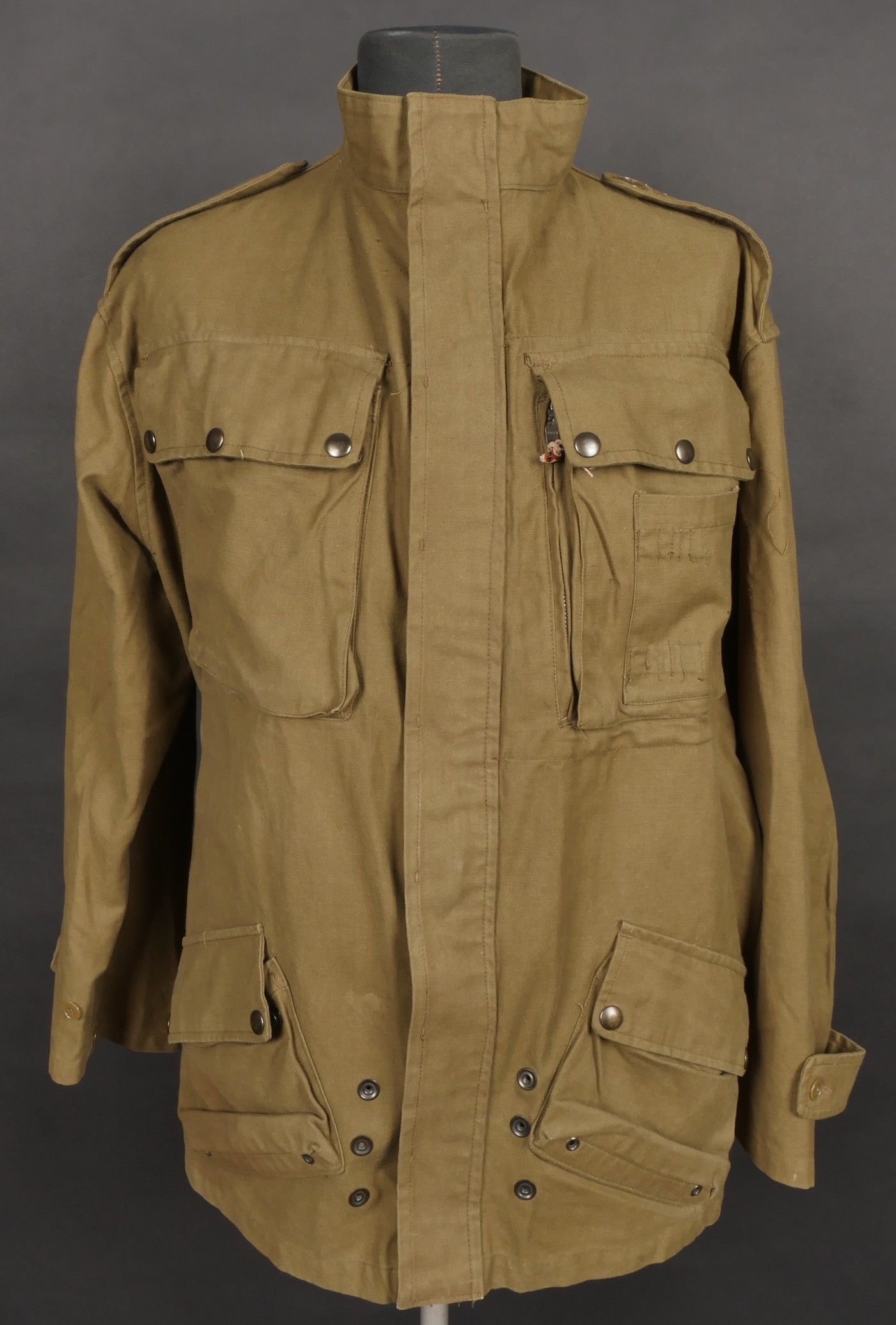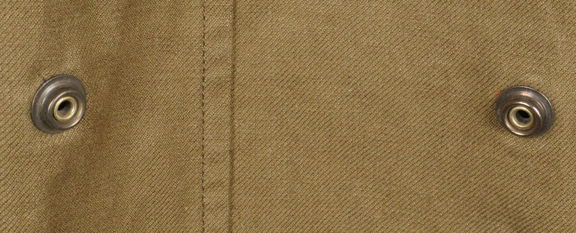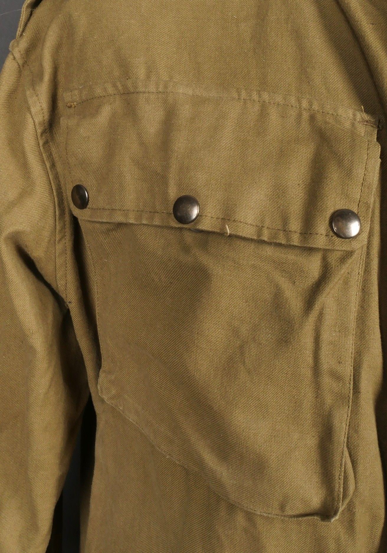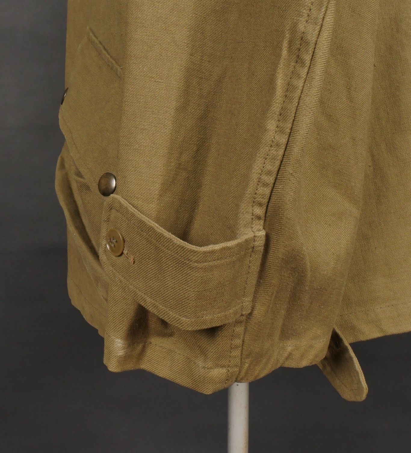TAP 4753 jacket. Jacket in mint condition, made of khaki cotton and fastened with eight buttons and a functional Sifer zip. Manufacturer's markings on collar, size 32, receipt stamp present but not very legible. Original stitched beavertail. TAP 4753 jacket mint cotton khaki closing with eight buttons and functional Sifer zipper maker mark at collar partly illegible size 32 acceptance stamp faint beavertail sewn original.