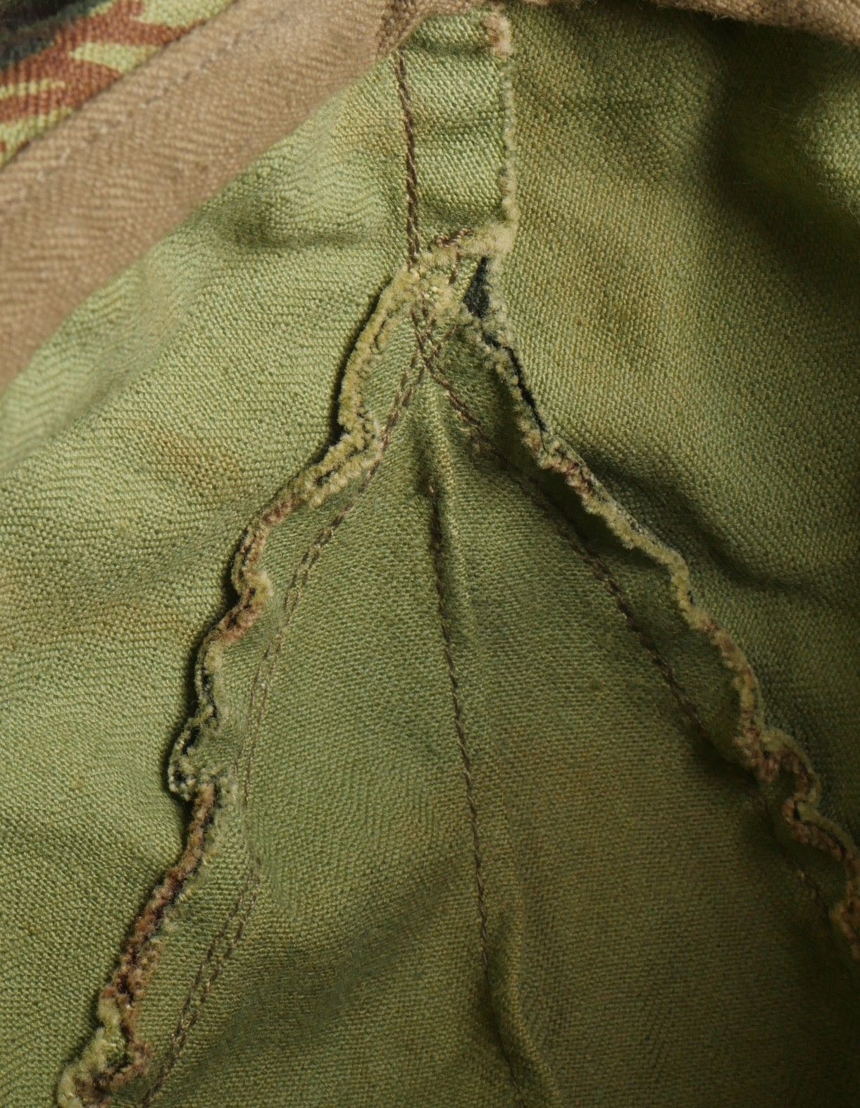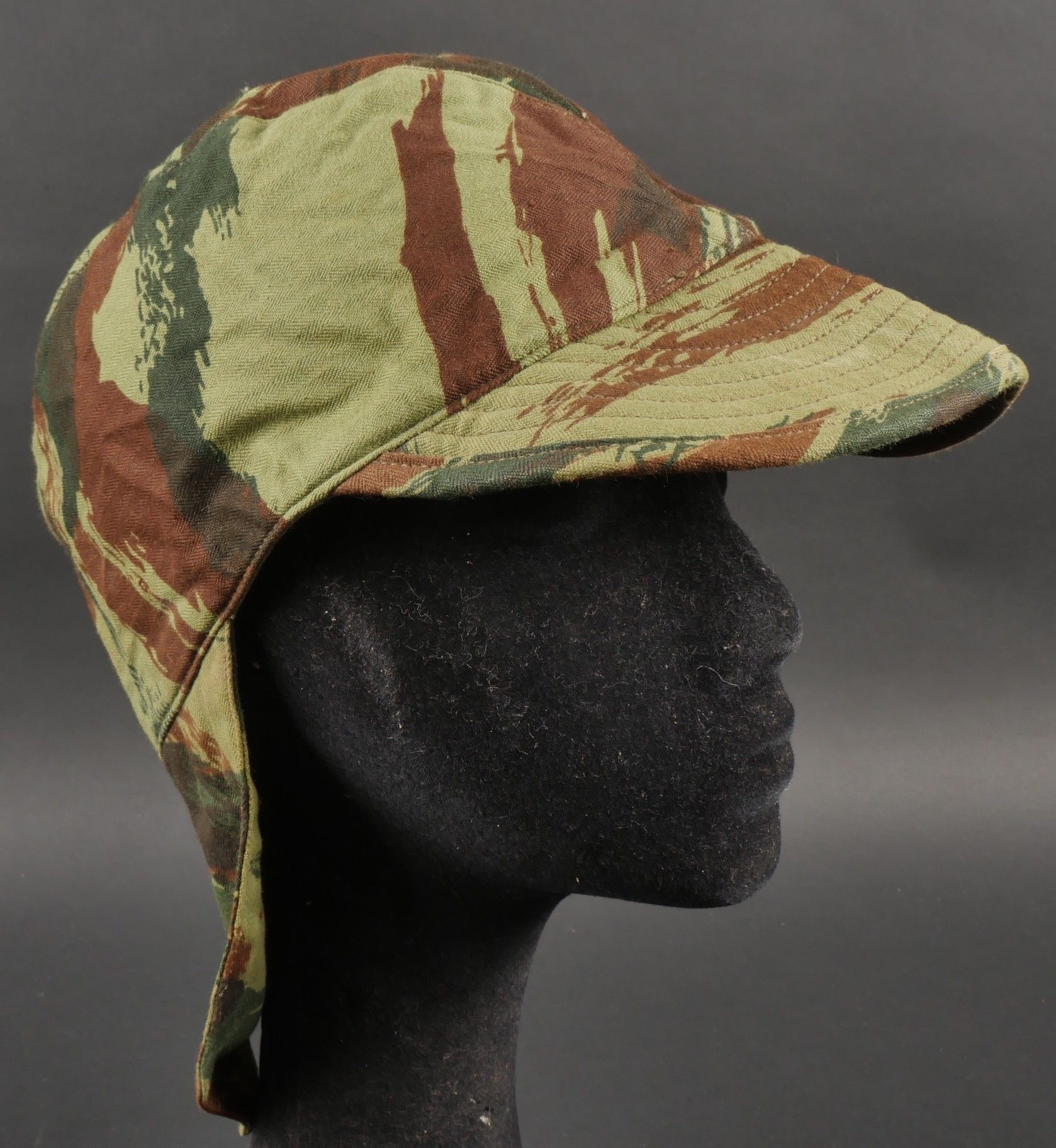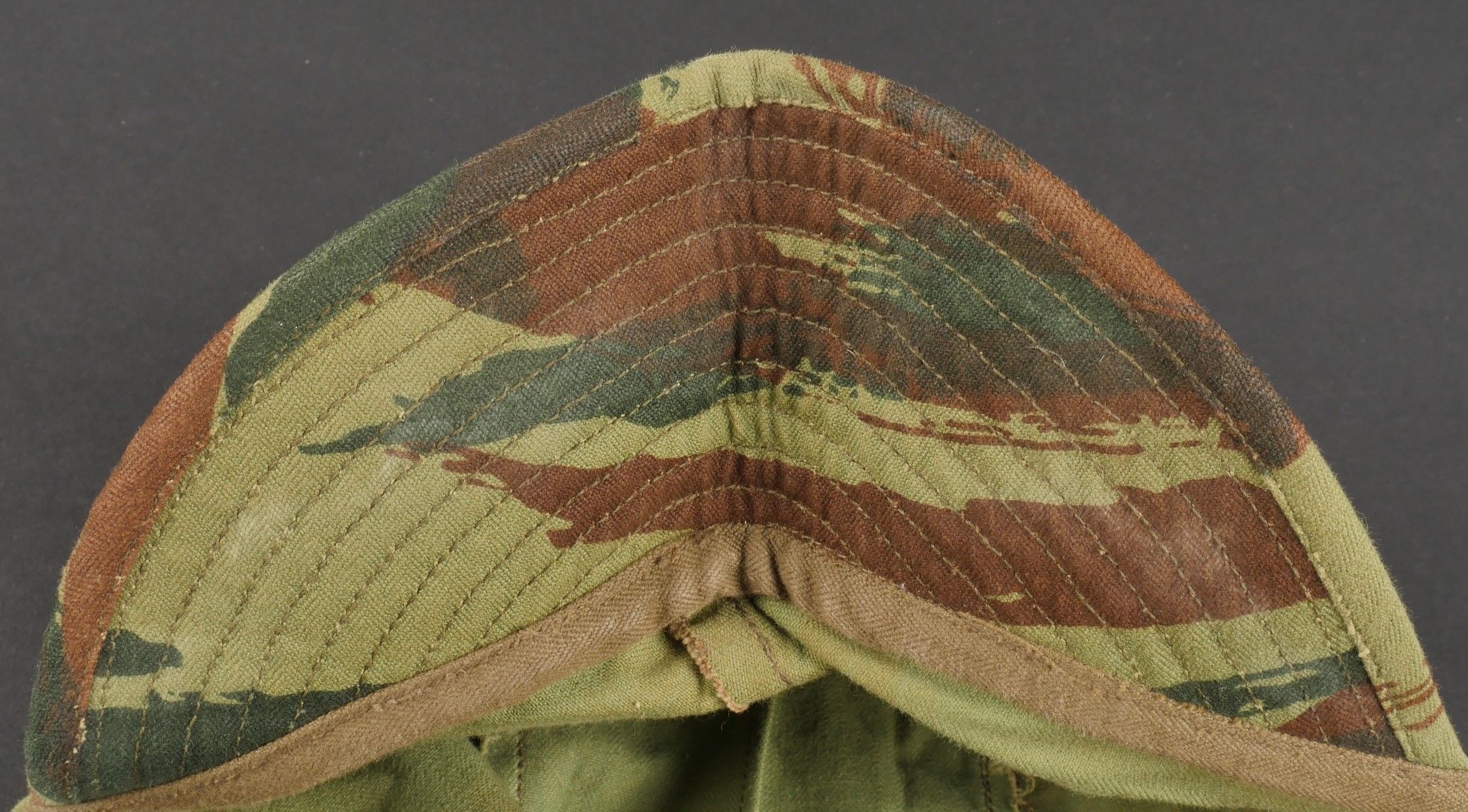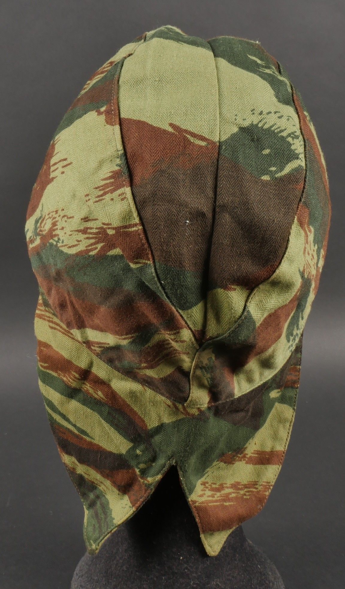 Bigeard cap for airborne troops during the Algerian war, made from camouflage fabric 4756, stamped by a manufacturer in Béthune and size 57. Very good condition, lightly worn. Bigeard cap for airborne troops during Algerian War made of 4756 camouflage cloth maker Béthune size 57 very good lightly worn.