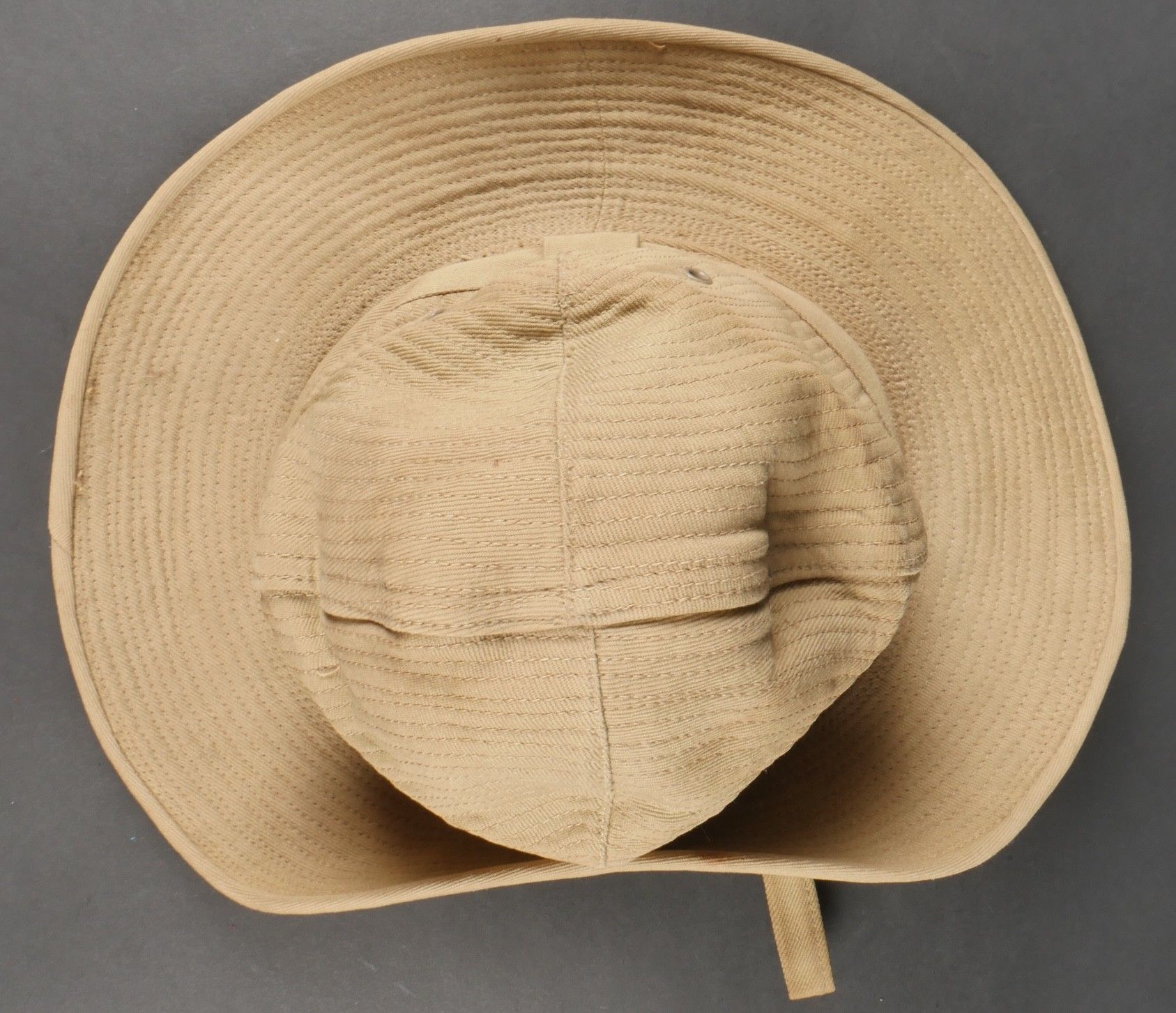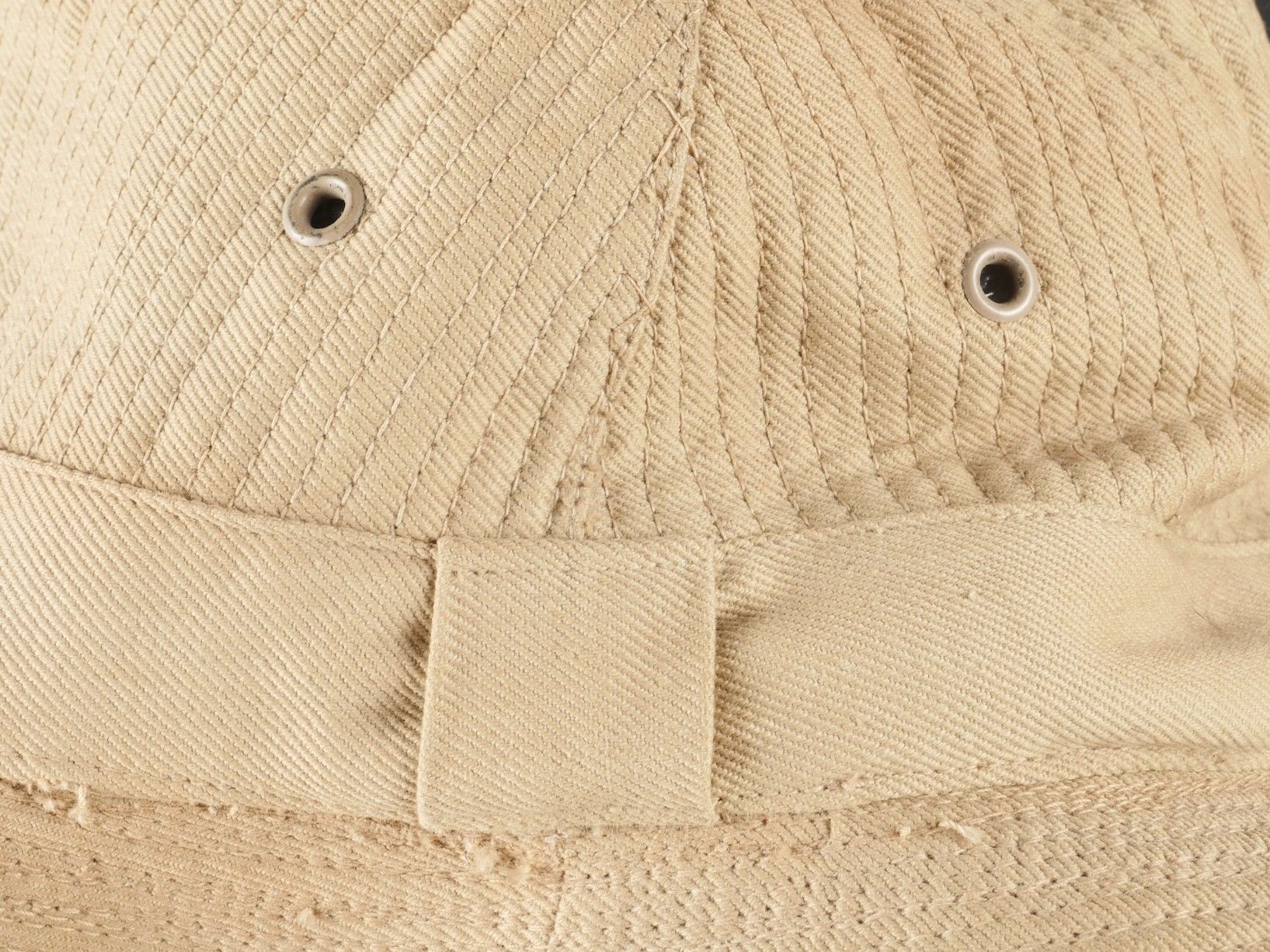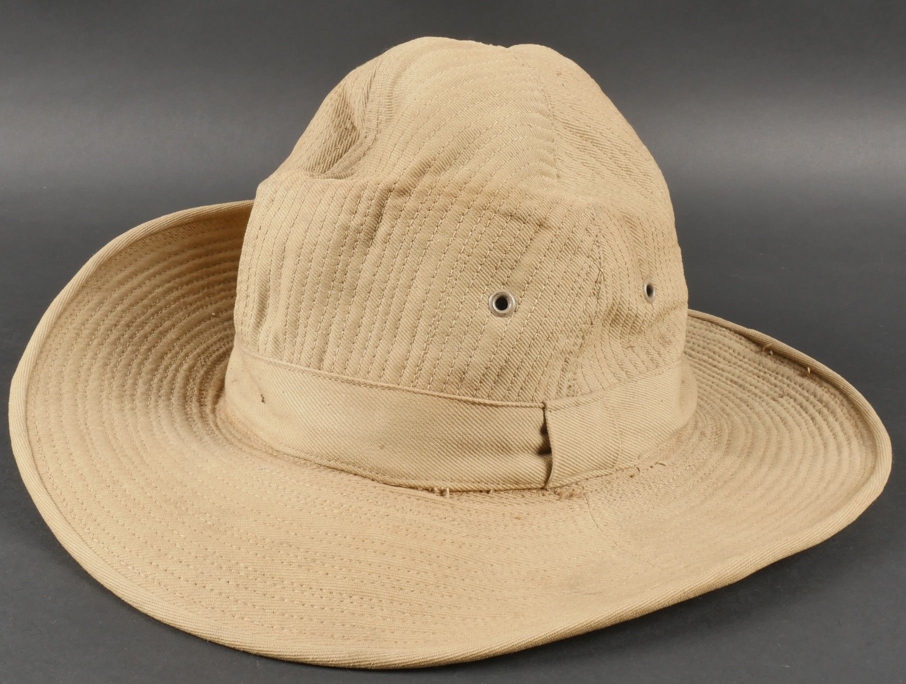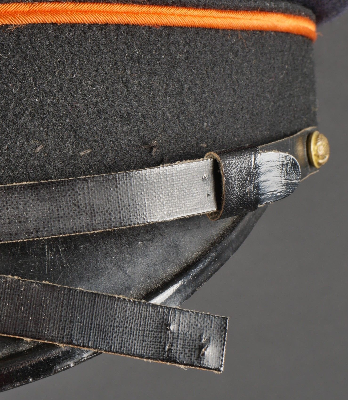 Set comprising an Armée de l'Air model 35 cap. Made of blue woollen cloth, orange piping, small buttons decorated with the insignia of the Armée de l'Air holding a false chinstrap. Fabric front insignia, with Troop-type wings. Composite visor, black leather headband, label on the back of the cap from a tailor in Albi. Also included is a regulation Métropole bush hat, beige canvas, paint pressure, SEMA manufacturer's stamp and size 56. Set including Air Force cap model 35 blue wool with orange piping small buttons bearing Air Force insignia holding false chinstrap cloth badge with wings troop type composite visor black leather sweatband label from tailor in Albi. With it a regulation metropolitan bush hat beige canvas painted snap SEMA maker size 56.
