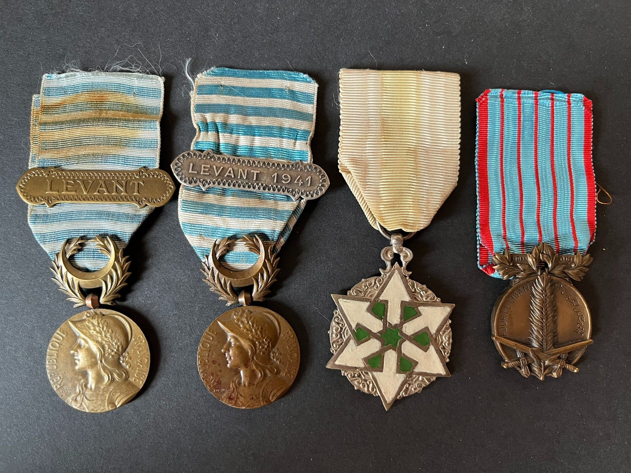 FRANCE Levant , 4 pieces, Syrian Merit Medal silver class locally made in the Levant, Syria Cilicia Medal with Levant clasp, Syria Cilicia Medal with Levant 1941 clasp, Lebanon Operations Medal 1926. FRANCE Levant, 4 pieces, Syrian Merit Medal silver class locally made in the Levant, Syria Cilicia Medal with Levant clasp, Syria Cilicia Medal with Levant 1941 clasp, Lebanon Operations Medal 1926