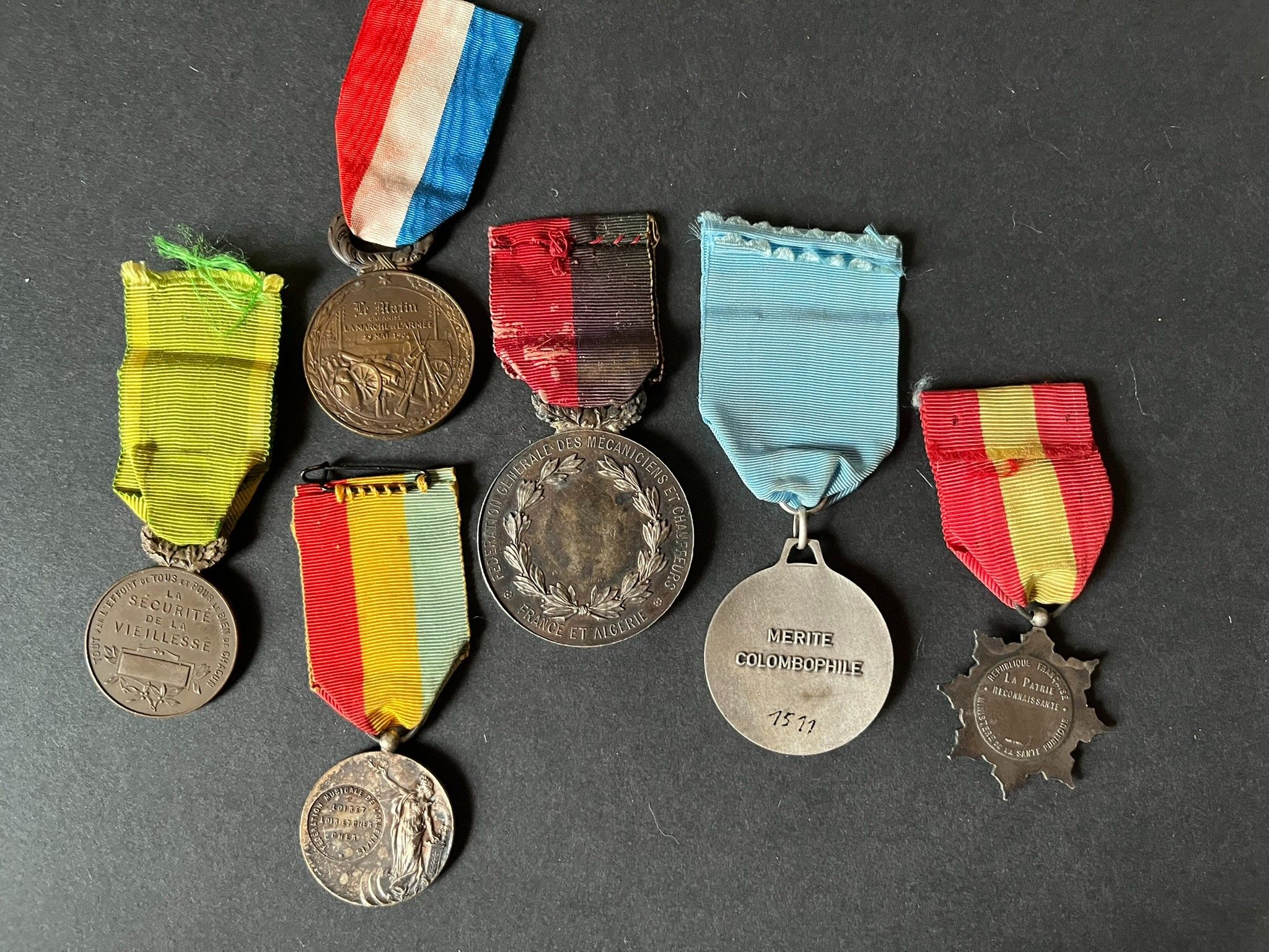 FRANCE , 6 pieces, set of civil medals including numbered Columbophile Merit Medal, large silver medal of mechanics and drivers of France and Algeria, and 4 others. FRANCE, 6 pieces, set of civil medals including numbered Columbophile Merit Medal, large silver medal of mechanics and drivers of France and Algeria, and 4 others