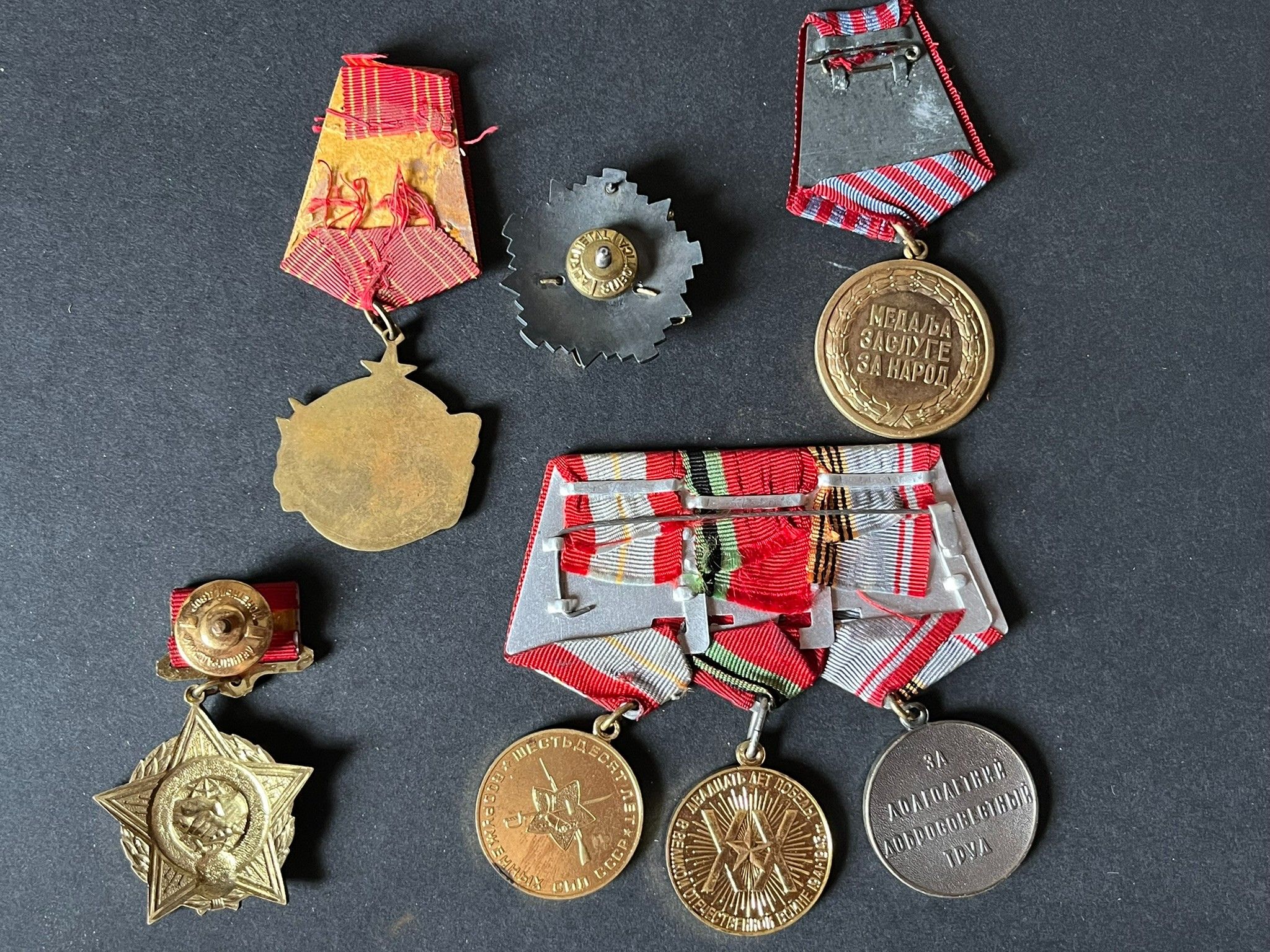USSR YUGOSLAVIA, 6 pieces, Yugoslav Bravery Medal with star emblem, Yugoslav National Merit Medal, Soviet International Combatant in Afghanistan Medal, Soviet bar with Veteran of Labor Medal, 20th Anniversary of Victory Medal and 60th Anniversary of the Red Army Medal. USSR YUGOSLAVIA, 6 pieces, Yugoslav Bravery Medal with star emblem, Yugoslav National Merit Medal, Soviet International Combatant in Afghanistan Medal, Soviet bar with Veteran of Labor Medal, 20th Anniversary of Victory Medal and 60th Anniversary of the Red Army Medal