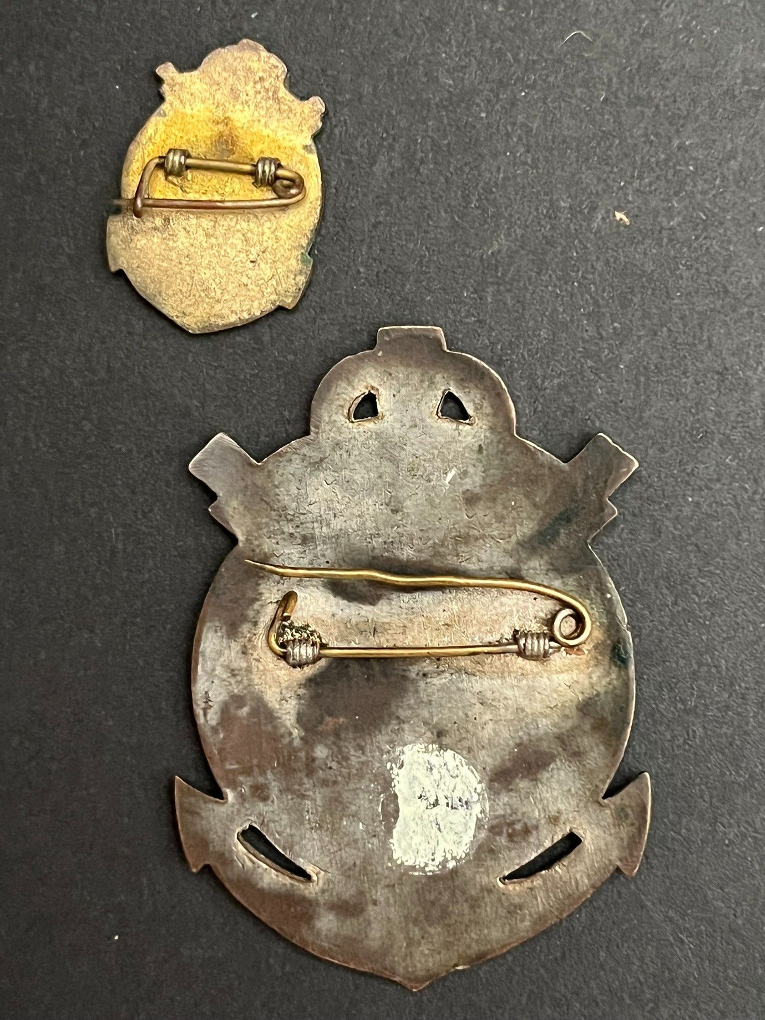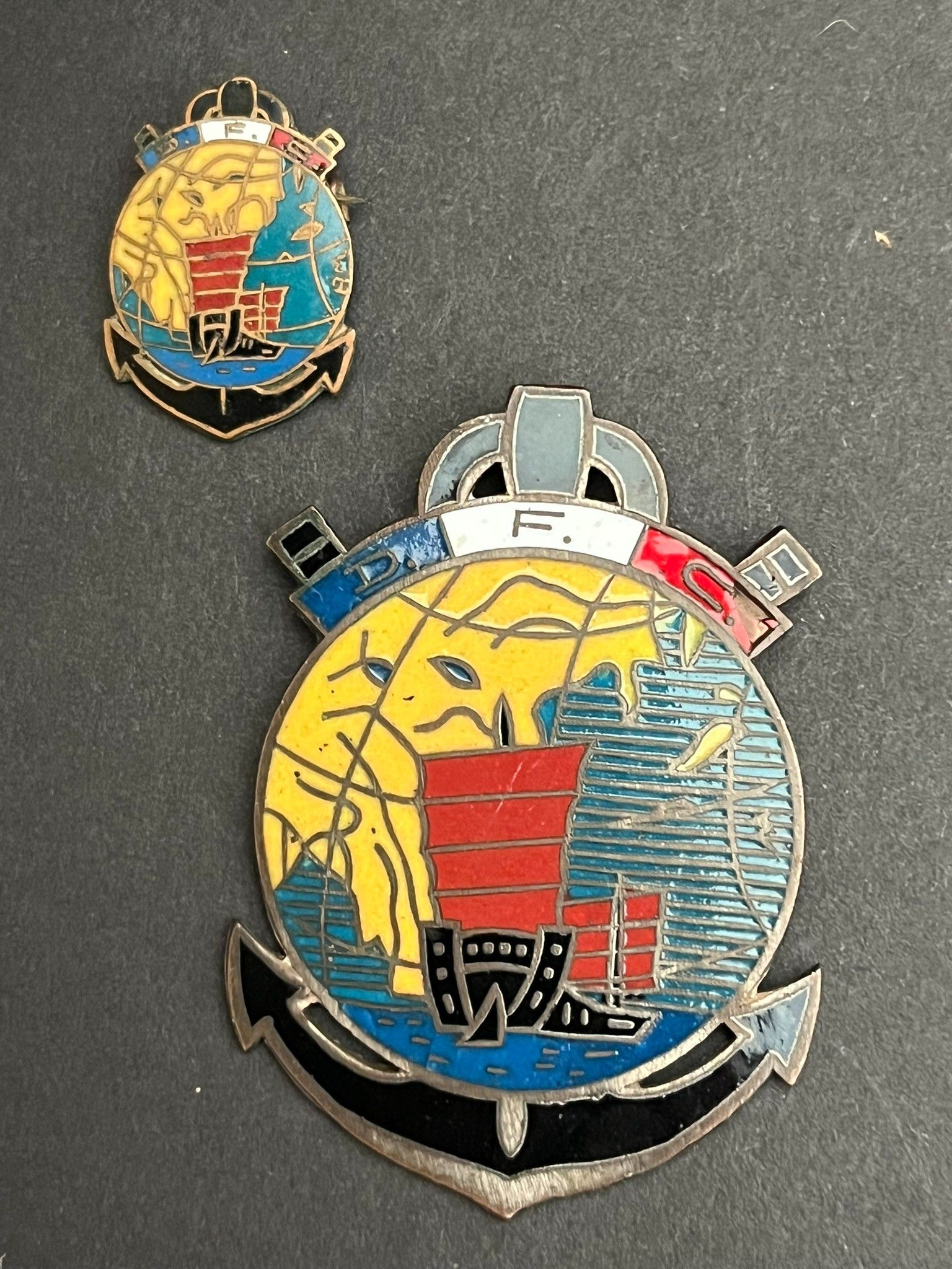 Badge of the French Detachment of Shanghai DFC Chinese manufacture 52 x 36mm with enameled miniature 23 x 17mm Chinese manufacture. Badge of the French Detachment of Shanghai DFC Chinese manufacture 52 x 36mm with enameled miniature 23 x 17mm Chinese manufacture