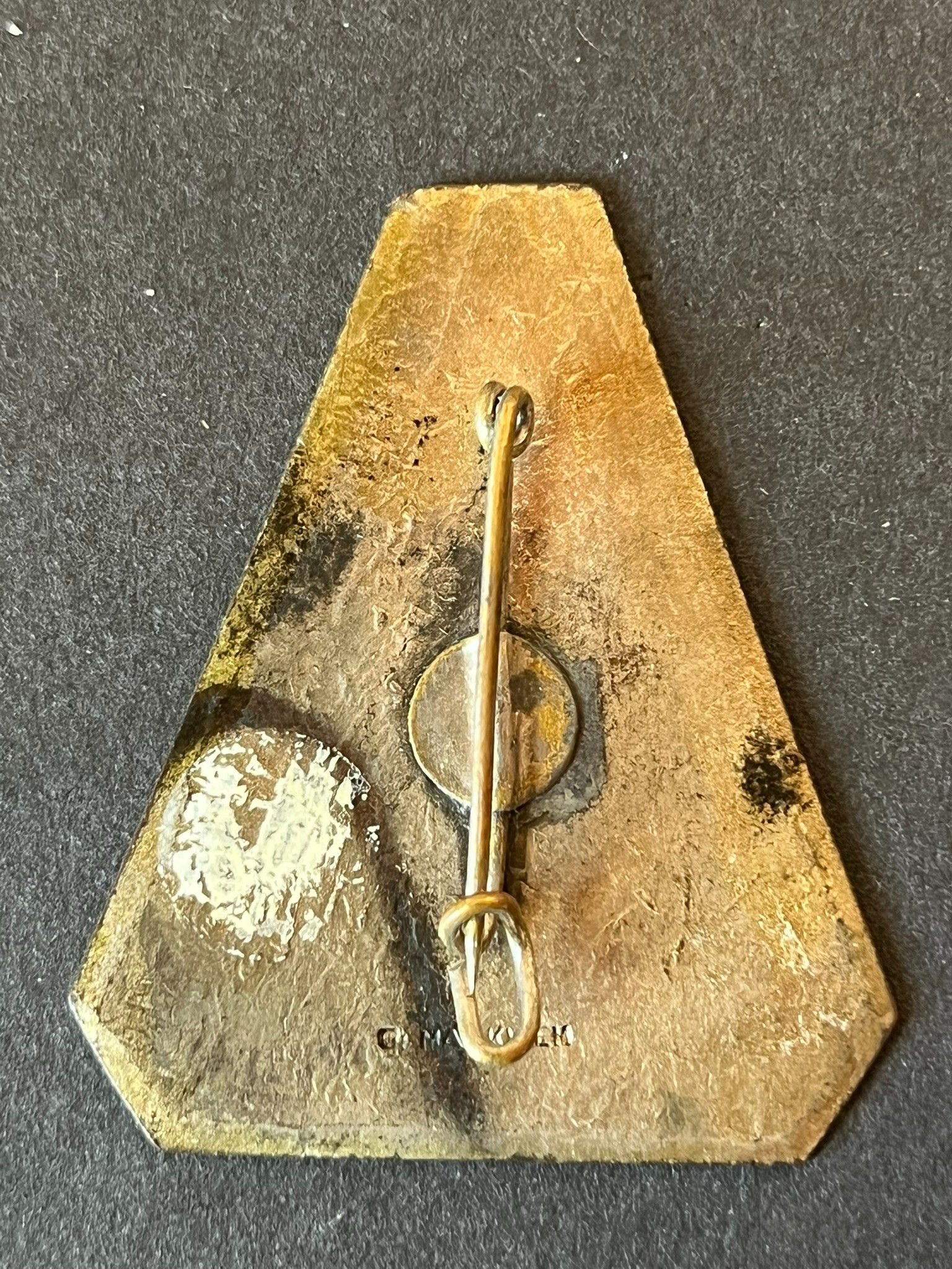 Badge of the 9th Colonial Infantry Regiment locally painted marked under the pin with punch MAU KHIEM 44 x 36mm. Badge of the 9th Colonial Infantry Regiment locally painted marked under the pin with punch MAU KHIEM 44 x 36mm
