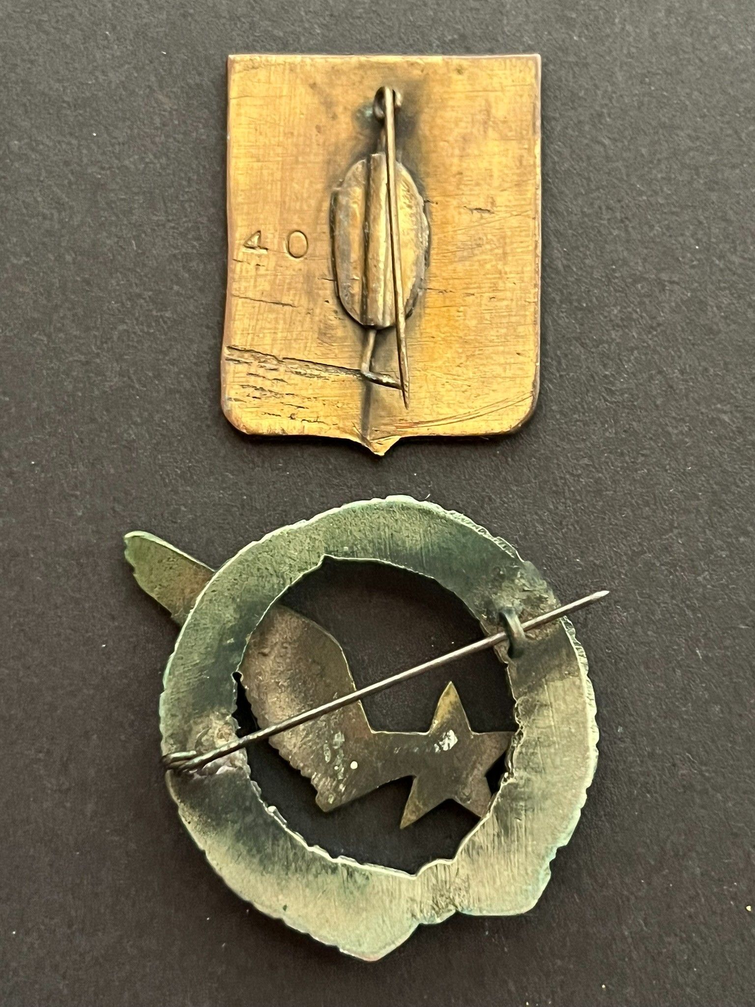 Lot of 2 pieces, Badge GT II/15 painted copper numbered 40 local manufacture probably North Africa, observer brevet local manufacture. Lot of 2 pieces, Badge GT II/15 painted copper numbered 40 local manufacture probably North Africa, observer brevet local manufacture