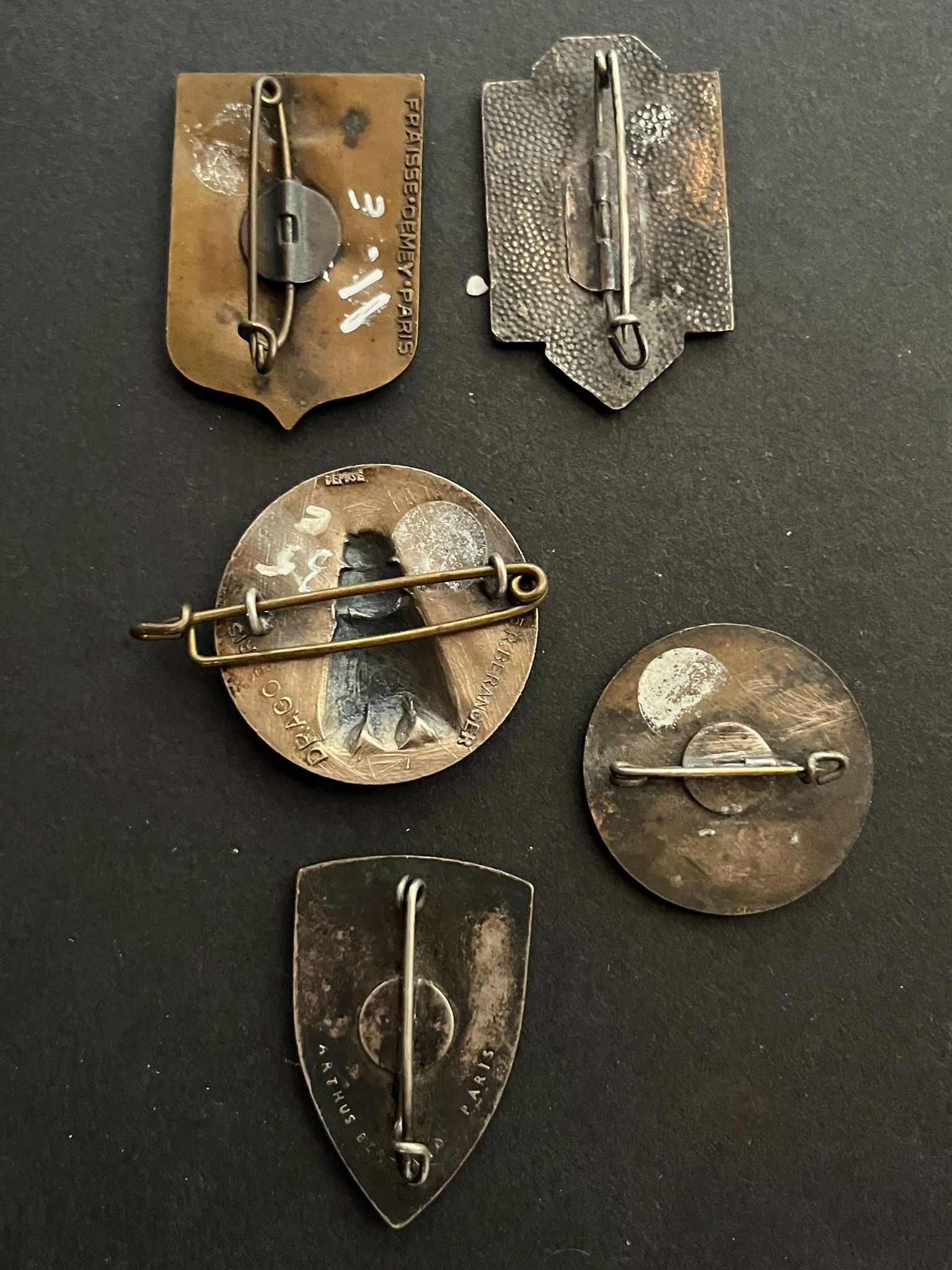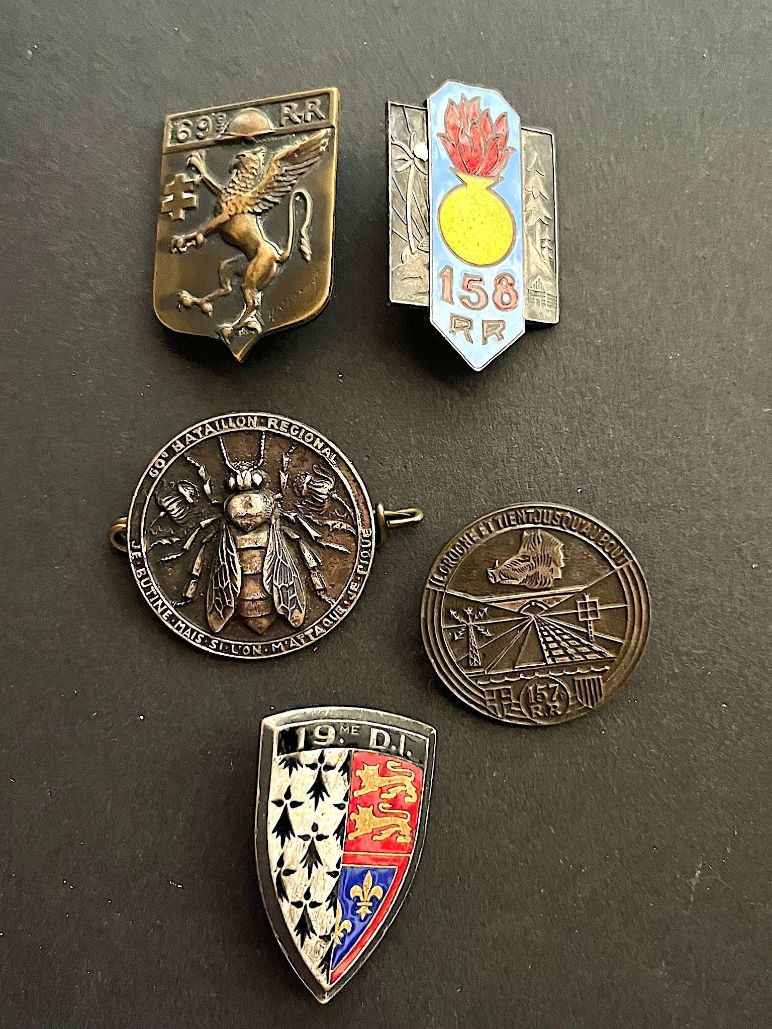 Lot of 6 pieces, 60 BR Drago Ber, 69 RR Fraisse Demey, 157 RR sans, 158 RR sans, 19 DI AB. Lot of 6 pieces, 60th Armored Battalion Drago Béranger, 69th Reconnaissance Regiment Fraisse Demey, 157th Reconnaissance Regiment without mark, 158th Reconnaissance Regiment without mark, 19th Infantry Division AB marked