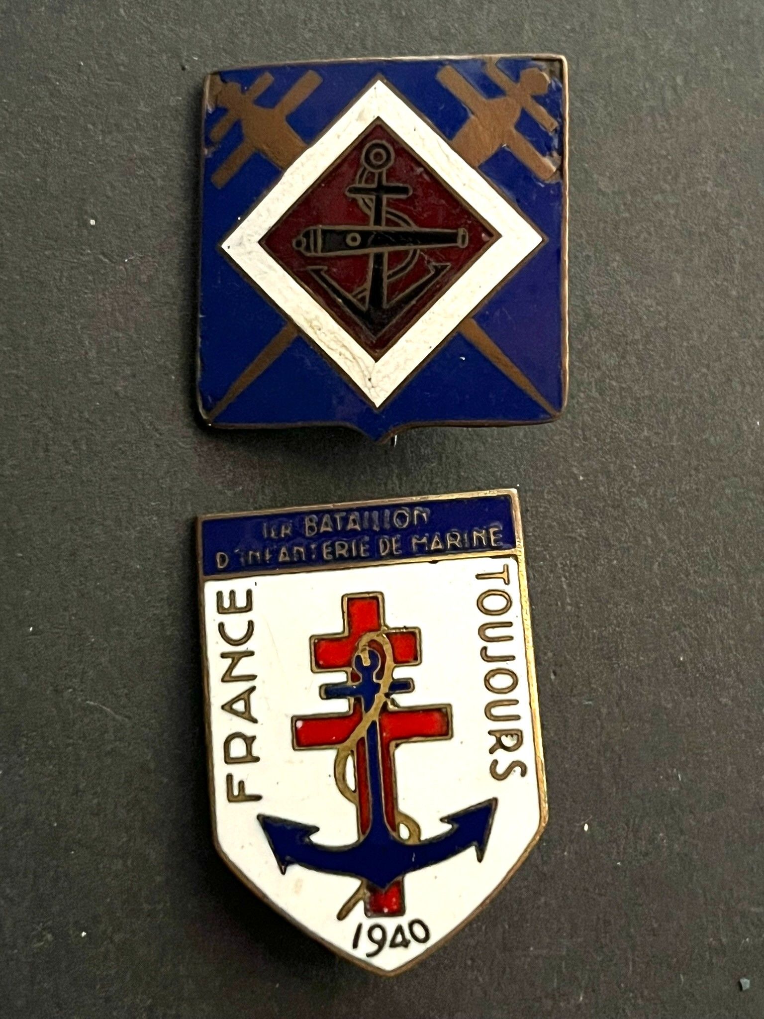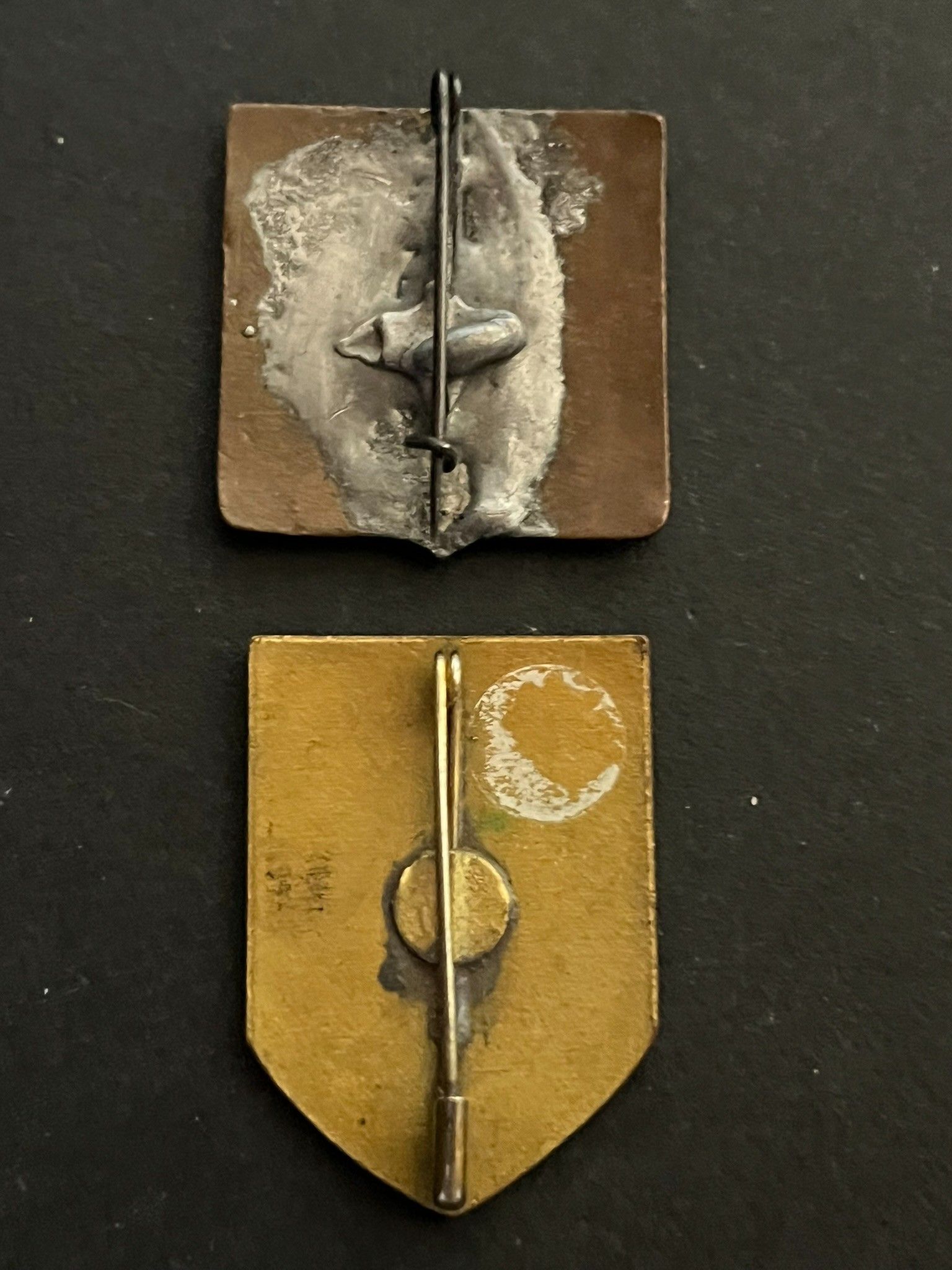 Batch of 2 pieces, Badge of the 1 RAC enamelled manufacture of Cairo, pin resoldered, badge of the 1 BIM enamelled manufacture T. Bichay du Caire. Lot of 2 pieces, badge of the 1st RAC enameled Cairo manufacture repaired pin, badge of the 1st BIM enameled T. Bichay Cairo manufacture